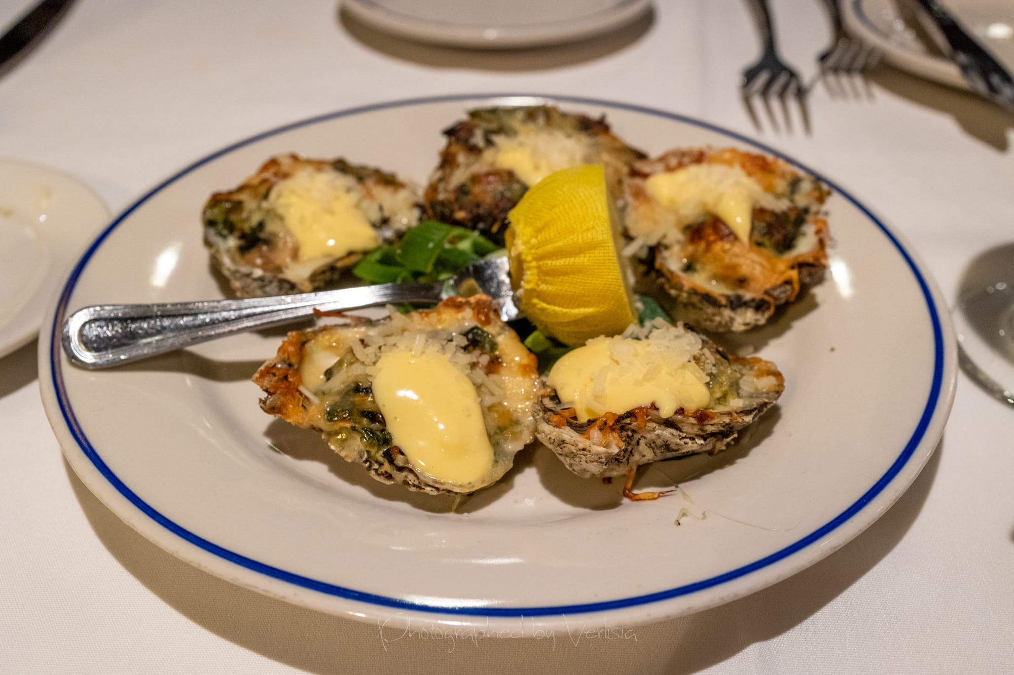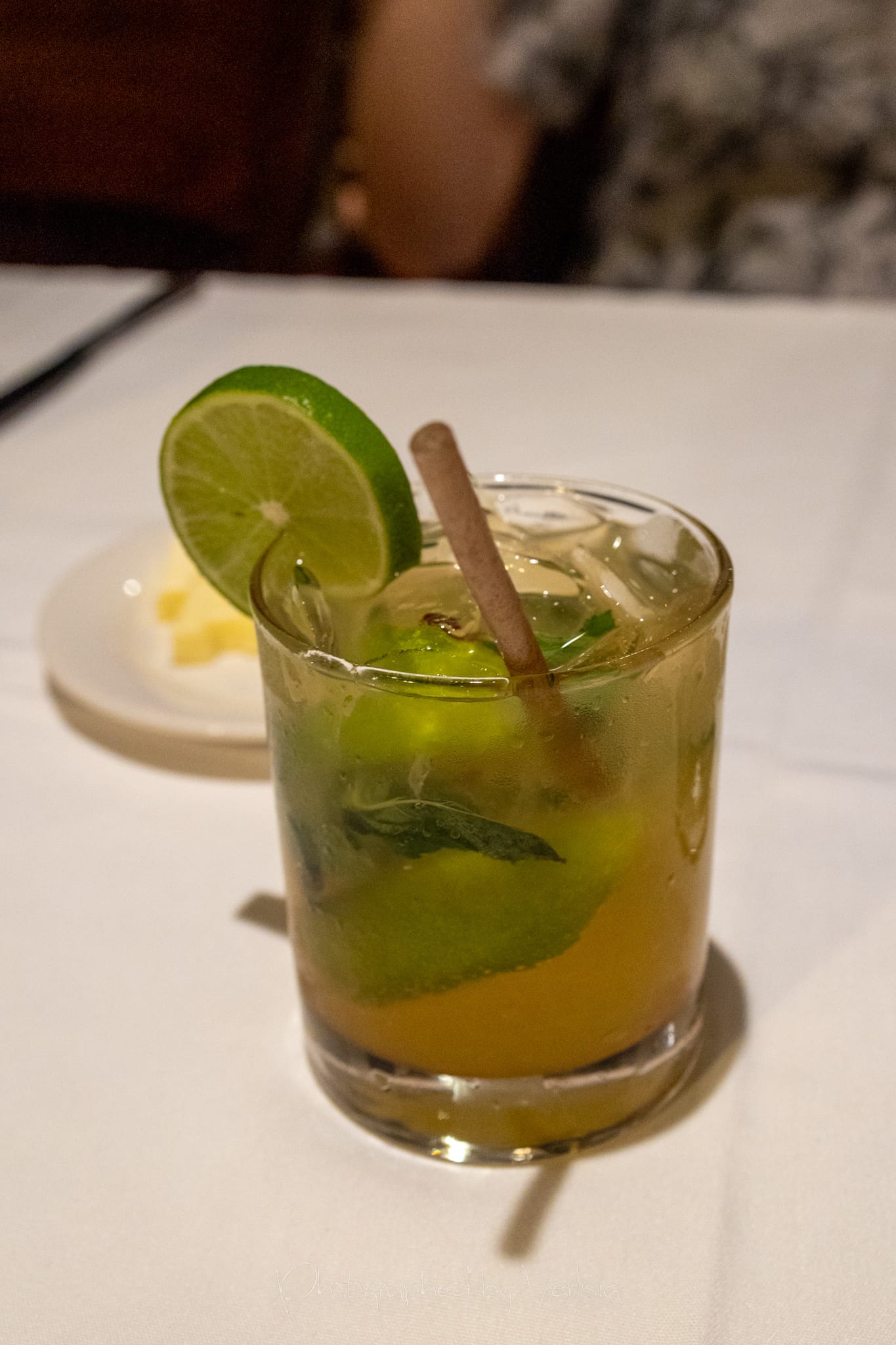Mango Mojito (Cruzan Mango Rum, mint leaves, fresh lime and Key West mango, topped with club soda), Butter, Oysters Rockefeller (Grana Padano, Pernod, Spinach, Applewood)