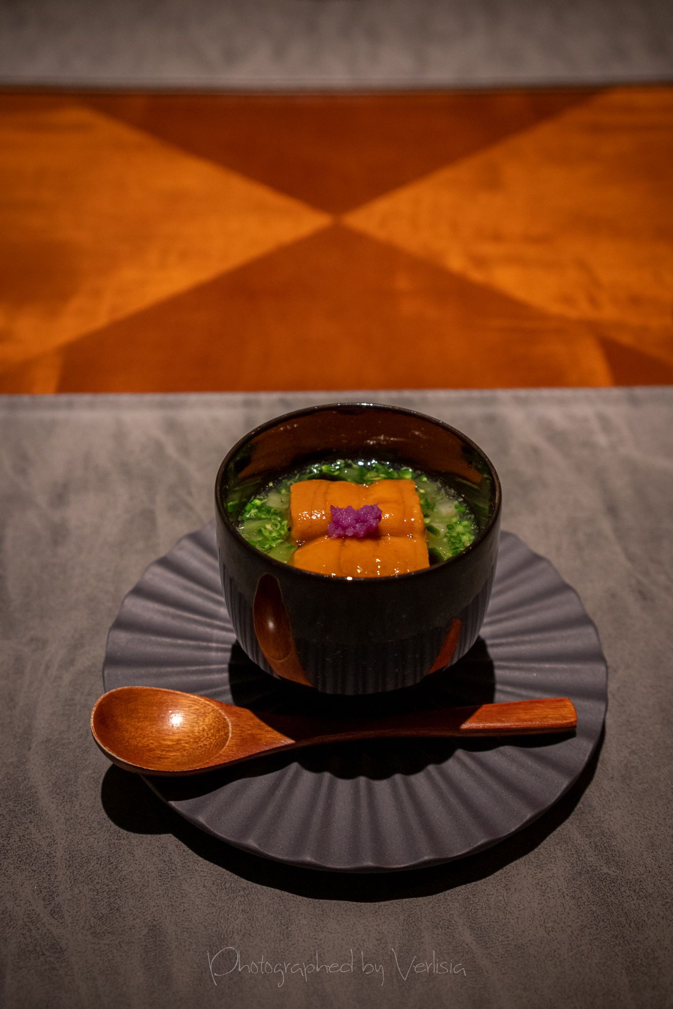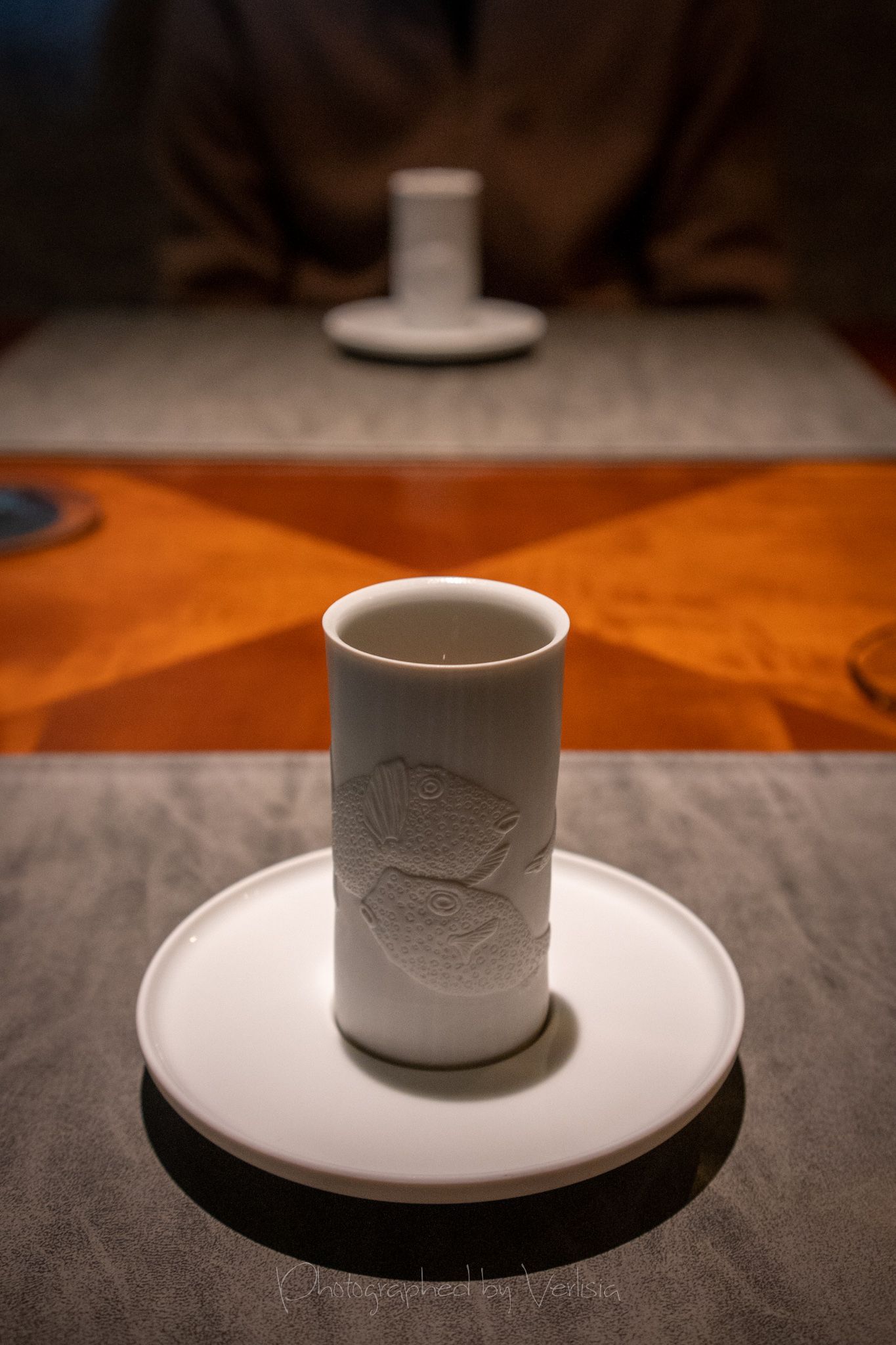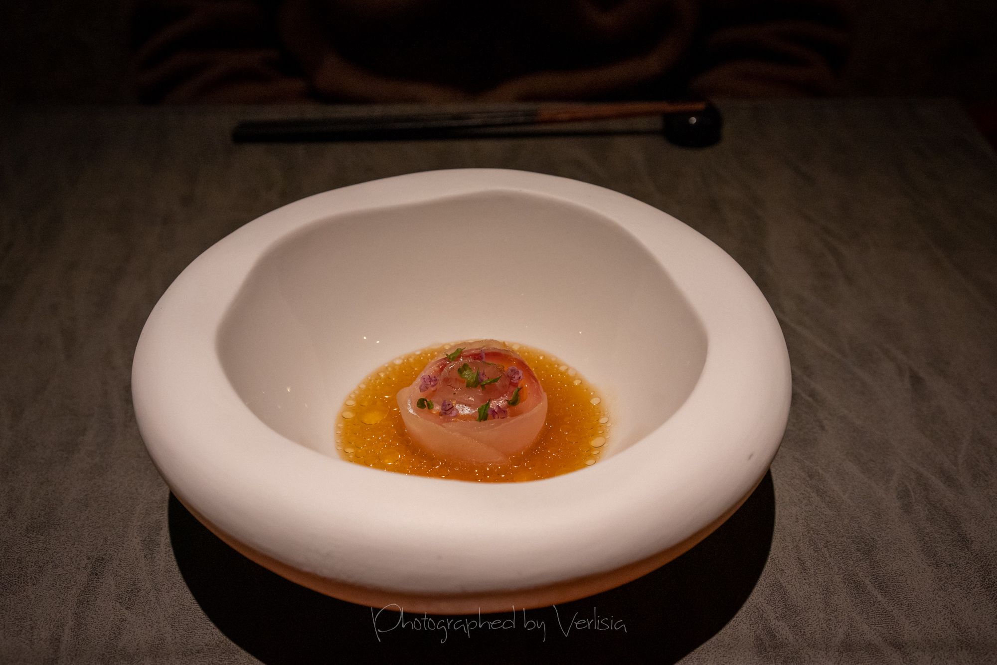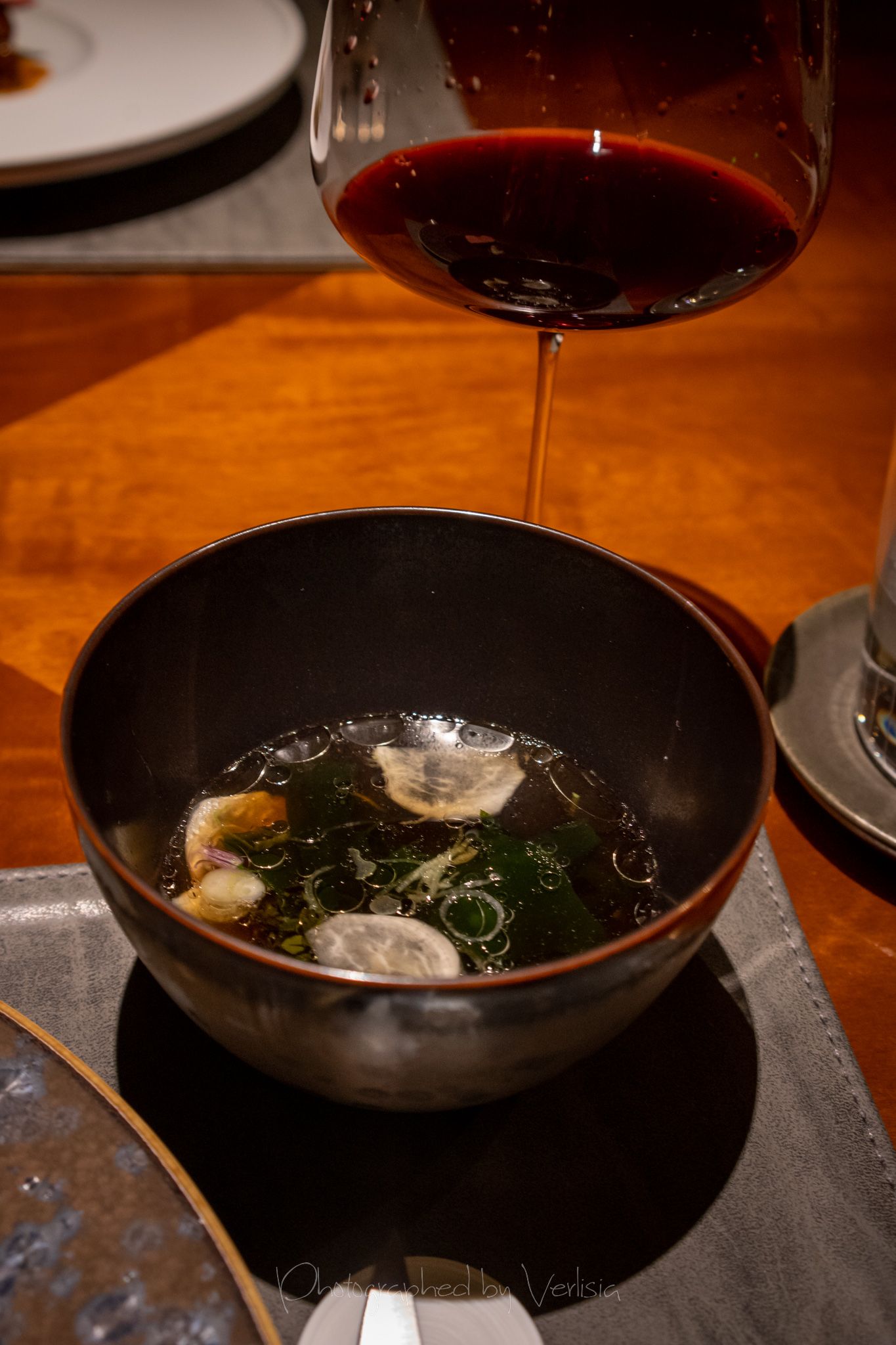 3rd Course - Shellfish Chawanmushi (broccoli, bok choy, purple diakon), Wine Pairing - M. Chapoutier - "Chante-Alouette", Hermitage, France 2018