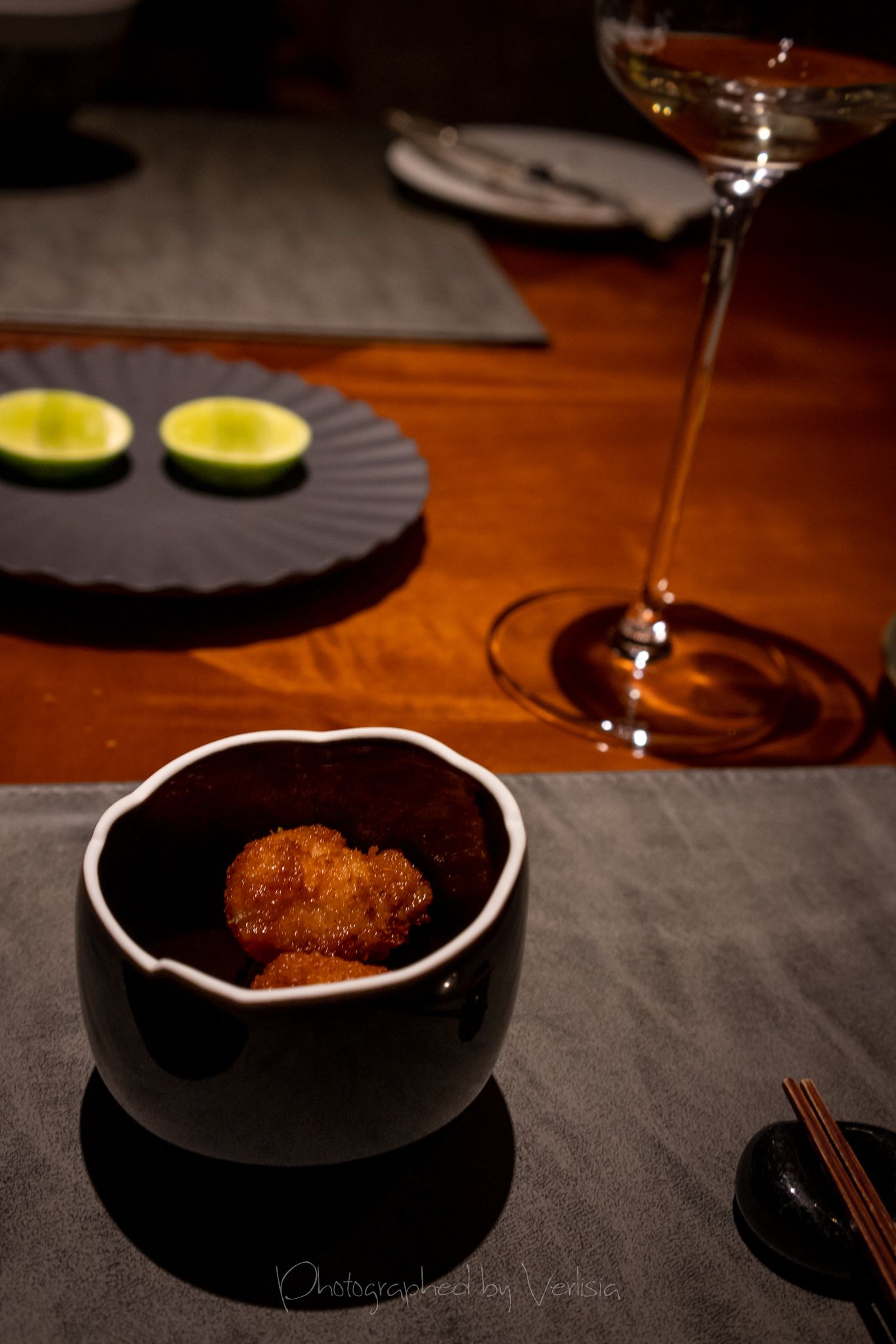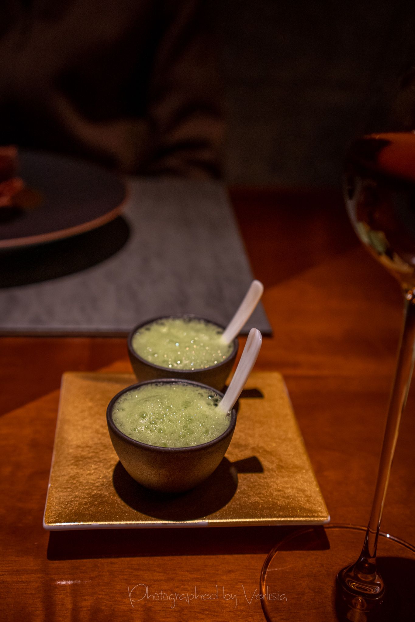 4th Course - Regiis Ova Reserve Caviar (koshihikari Rice, smoked Sabayon, sesame), Wine Pairing - Robert Chevillon - Vieilles Vignes, Nuits-Saint-Georges, Burgundy, France 2019Non Alcoholic Shiso Mojito
