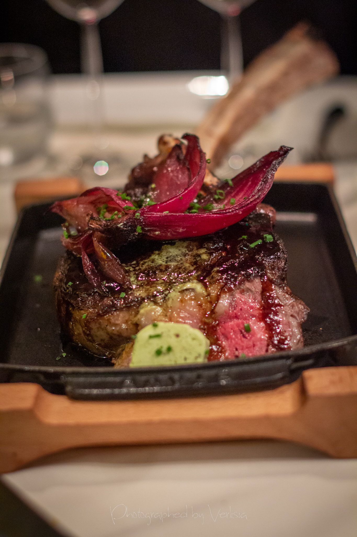 Truffle Mac ‘n Cheese, Tomahawk Chop (the king of steaks / giant ribeye / ten inch bone / smoked onion butter), 6oz Wagyu from Japan Saga prefecture Ribeye cut