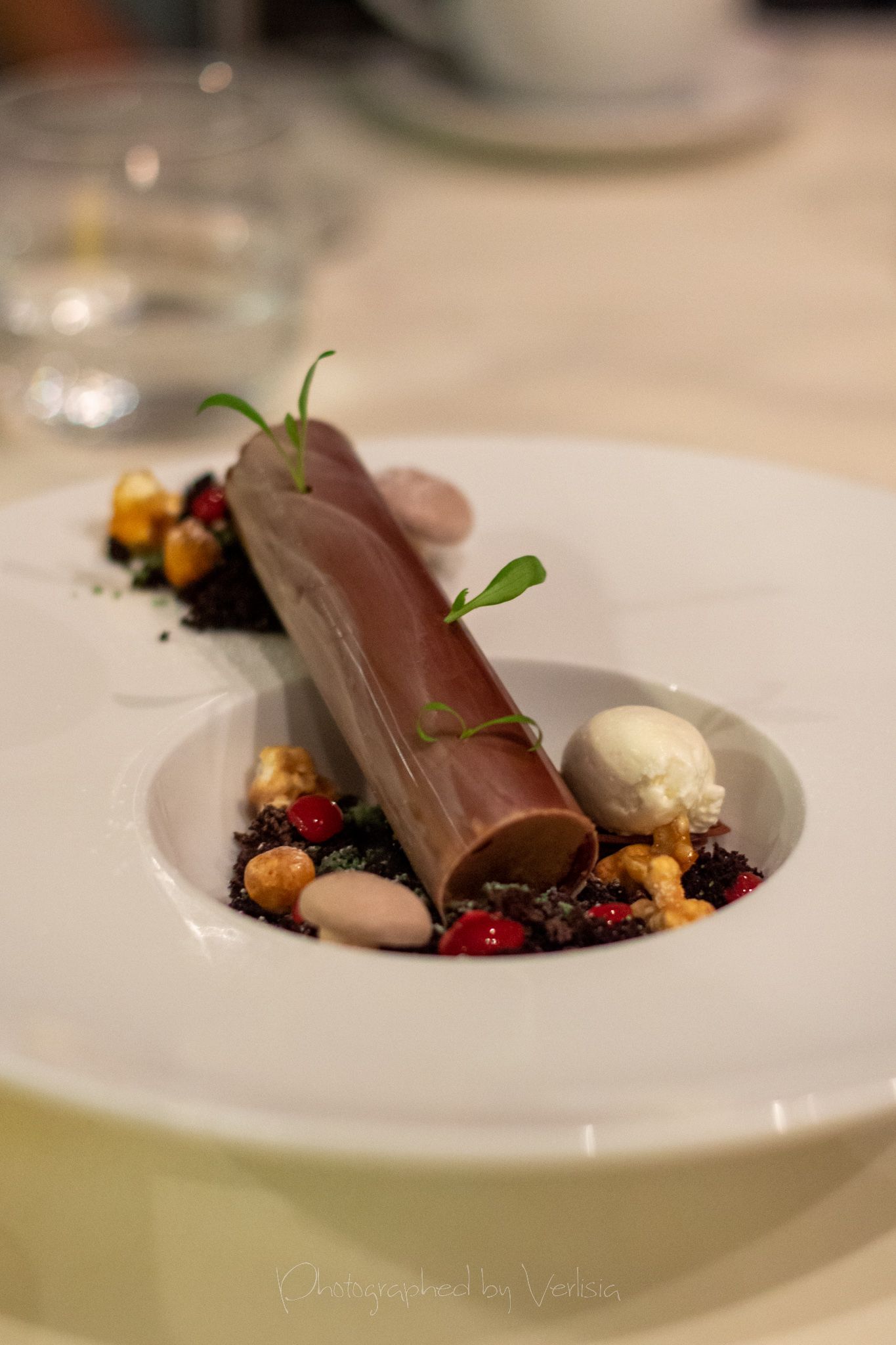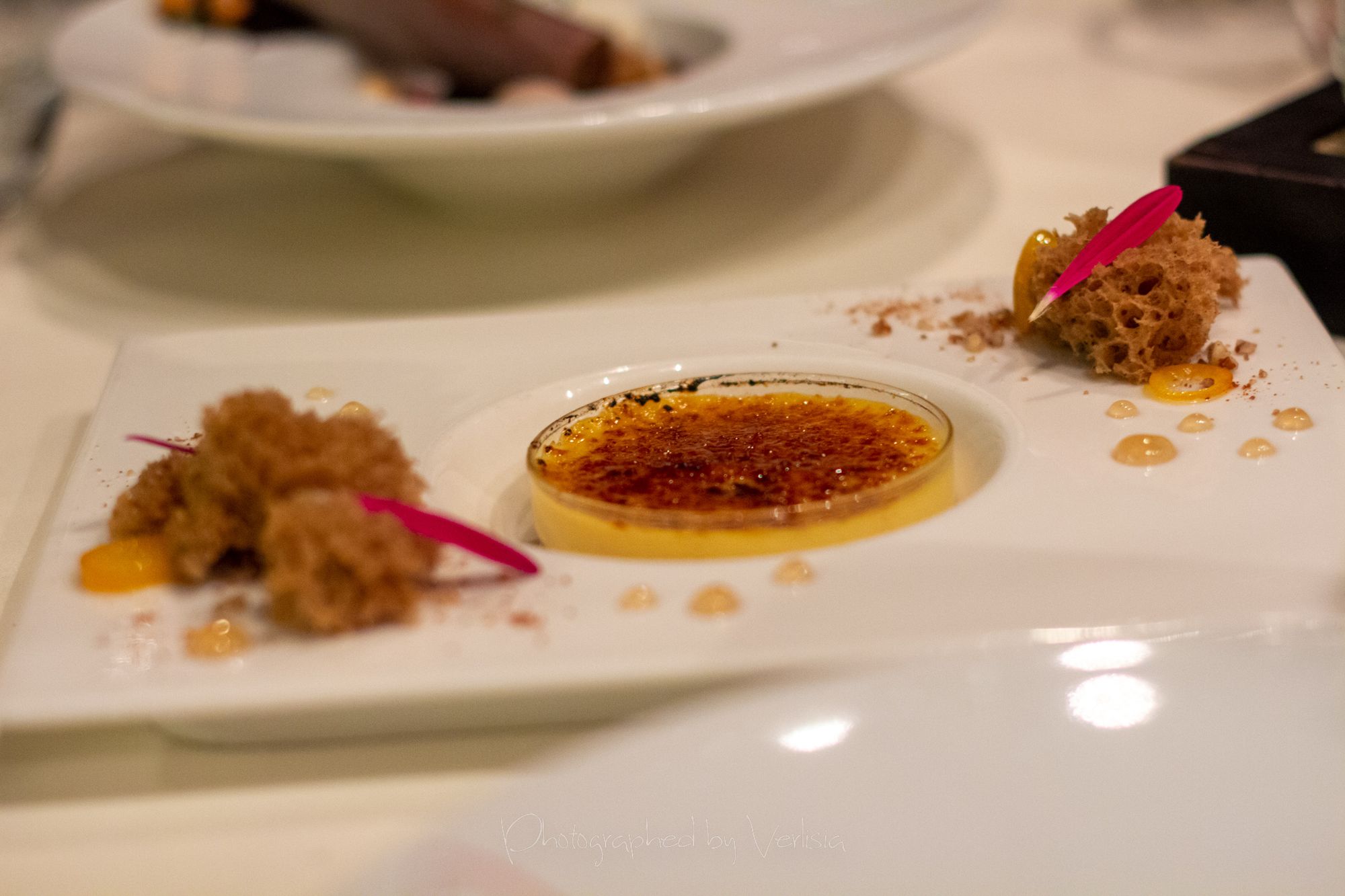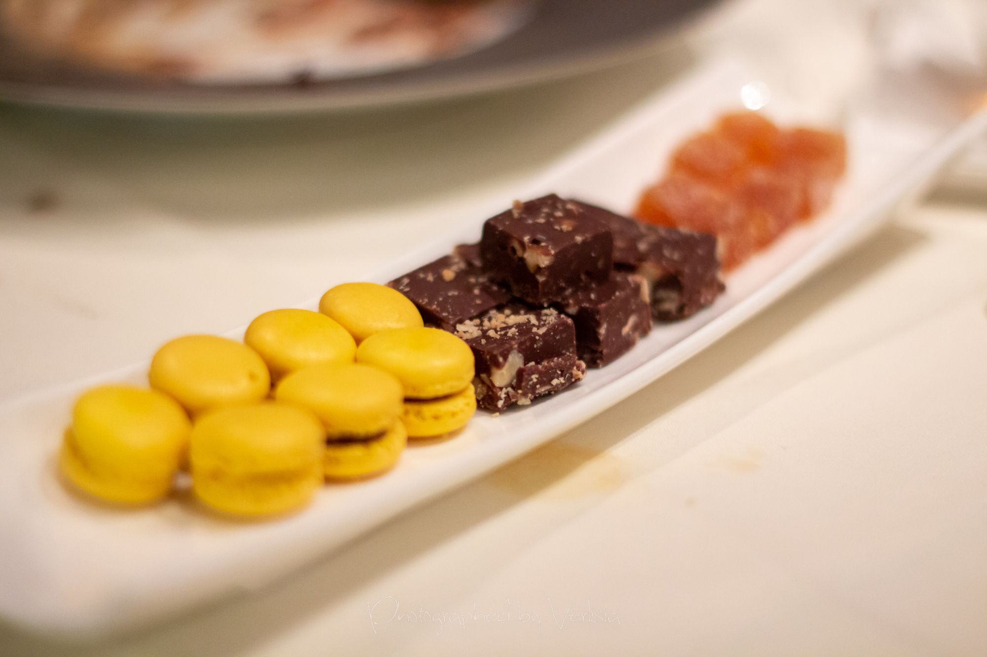 Rise and Shine (raspberry-chocolate soufflé / creme anglaise / mini raspberry french macarons), Red Velvet, macarons