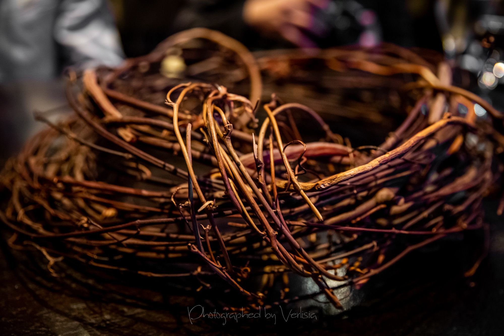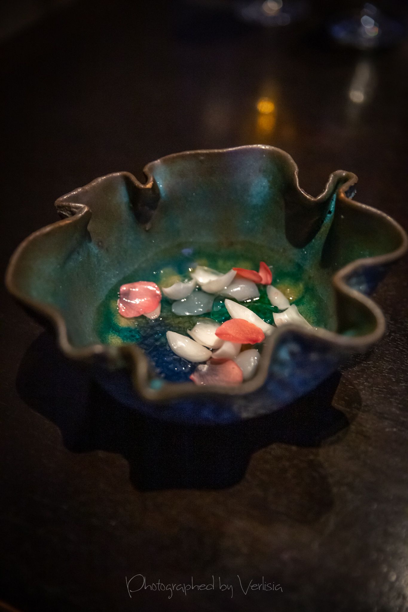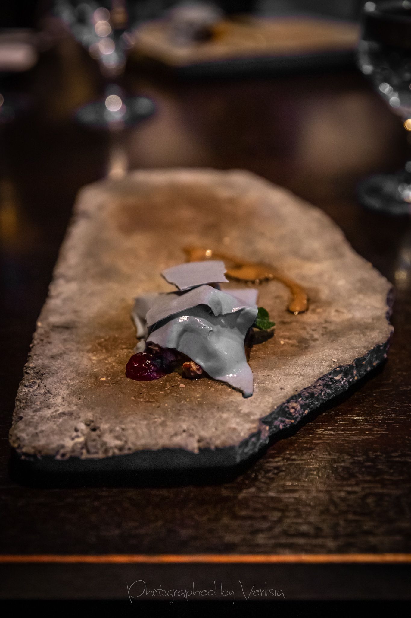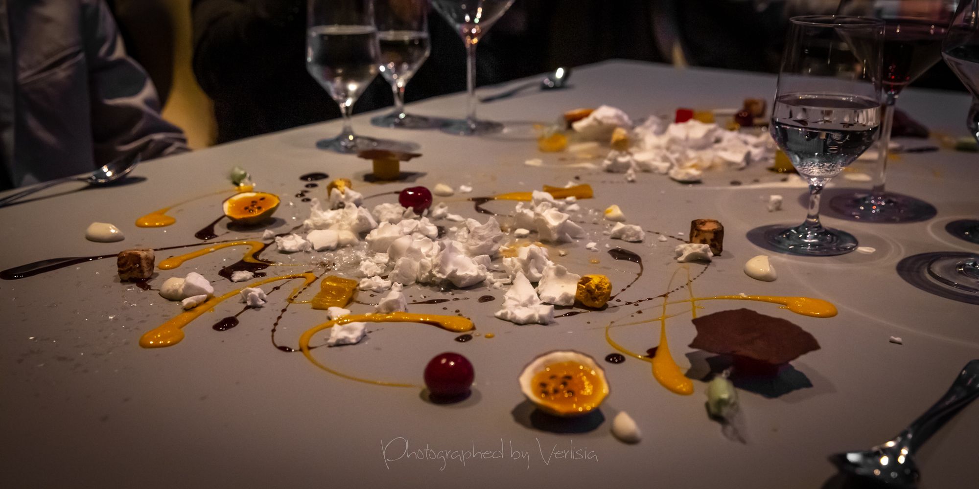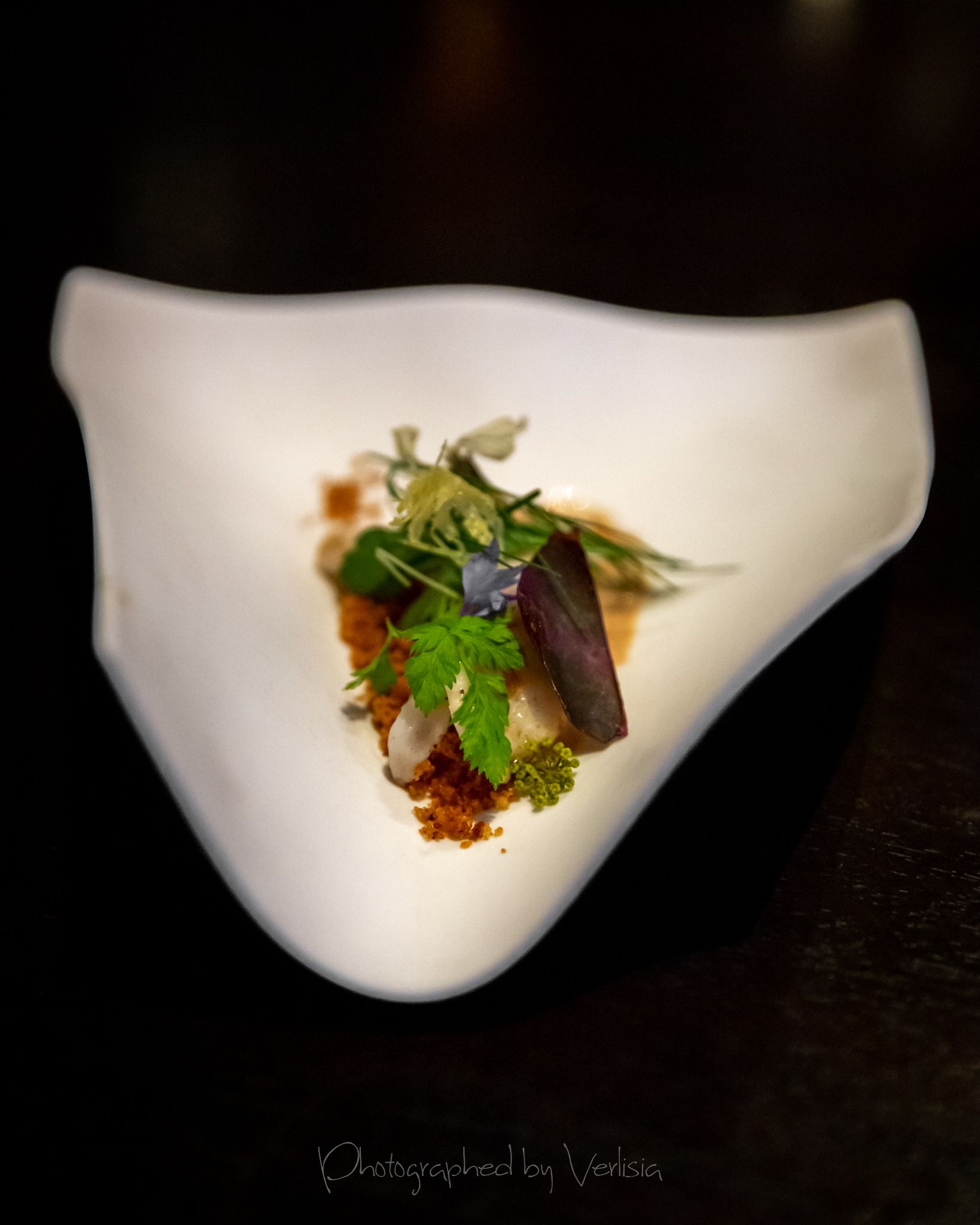 Course #1: Ostera (traditional)Chef's Challenge for us - Can you find your food?, Course #2: Salsify (branch camouflage)Course #3: Skate (brown butter, lemon, herbs), Course #4: Pebble (ebi, ogo, clam shells)Course #5: Corn (truffle, manchego, sherry)Course #6: Trout (white pepper, vietnamese coriander, broccoli)Course #7: Lily Bulb (rambutan, distillation of caviar lim), Course #8: Matsutake (pine, huckletberry, tapioca)Mysterious charcoal. 'pay no attention to it', they said, Course #9: Pork Belly (parsnip, black trumpet, kombu)Course #10: Hot Potato (cold potato, black truffle, butter), Course #11: Squab (beet, orange, dark flavors)Course #12: Squash (ashed goat cheese, cranberry, licorice graffiti), Course #13: Blueberry (bubblegum, lilac, sorrel)Course #14: Balloon (helium, green apple), Course #15: Tropical Fruit (rum, vanilla, kaffir lime), French Pressed Coffee