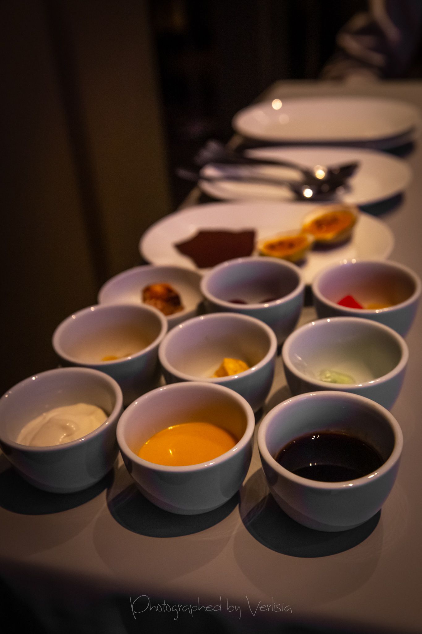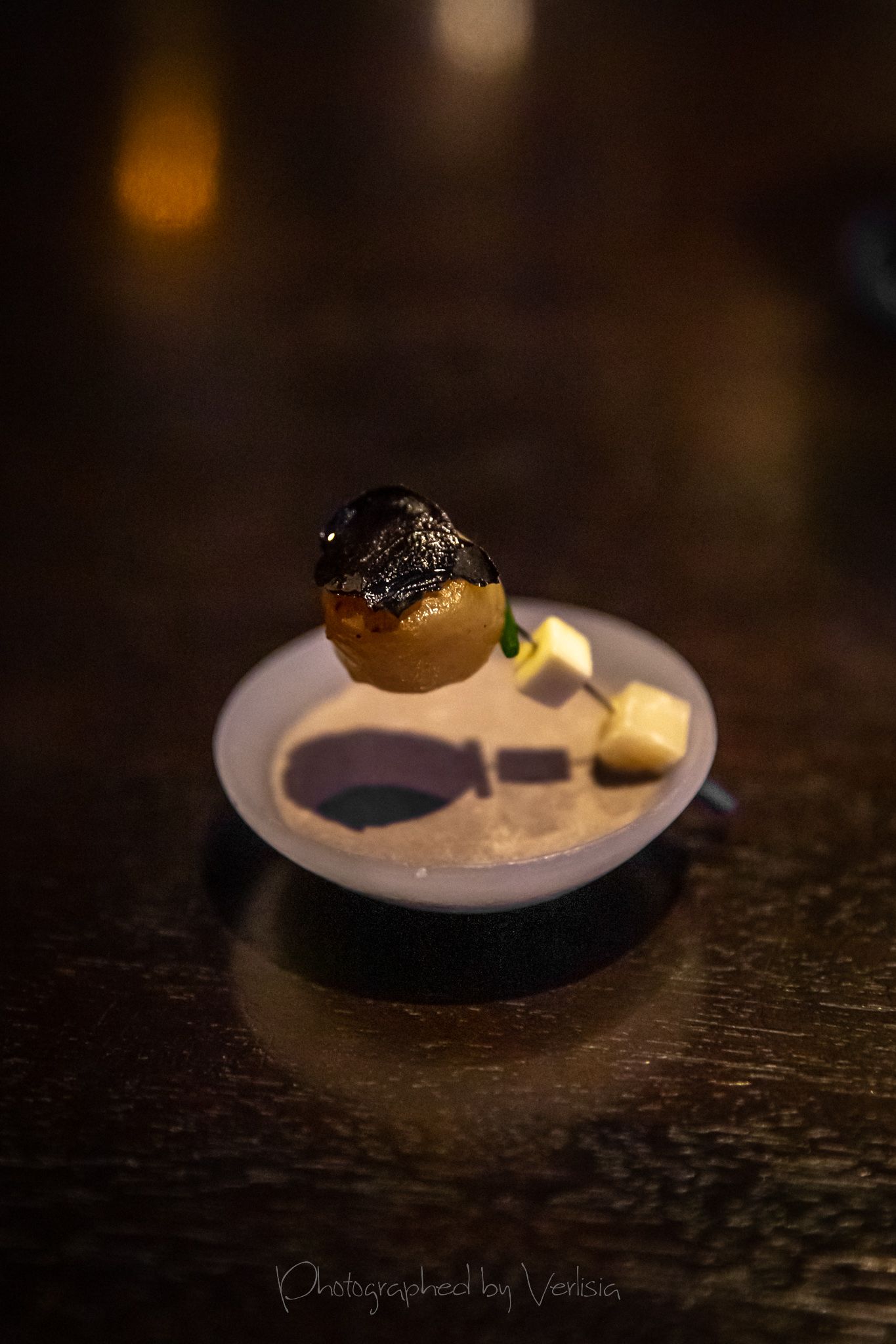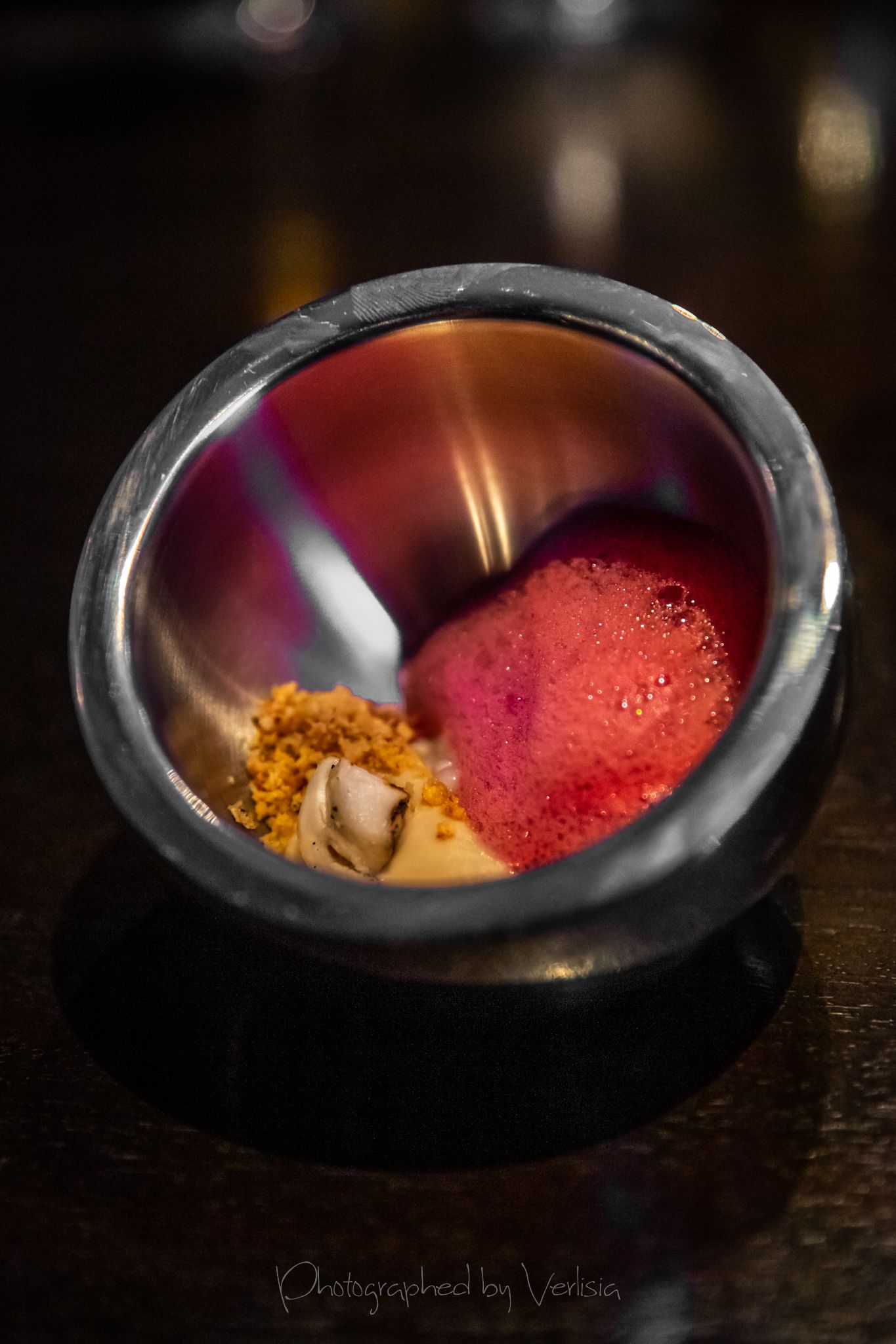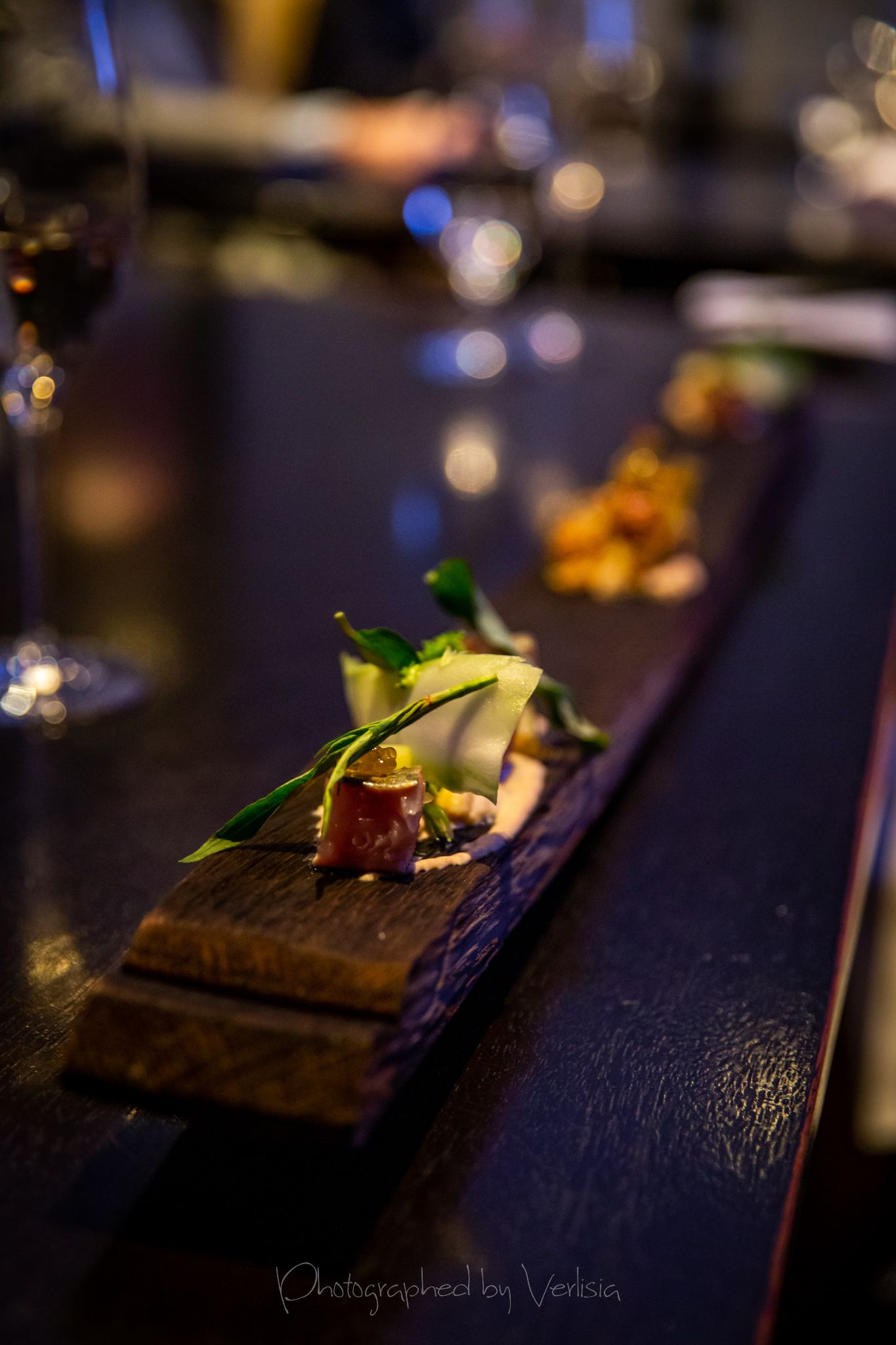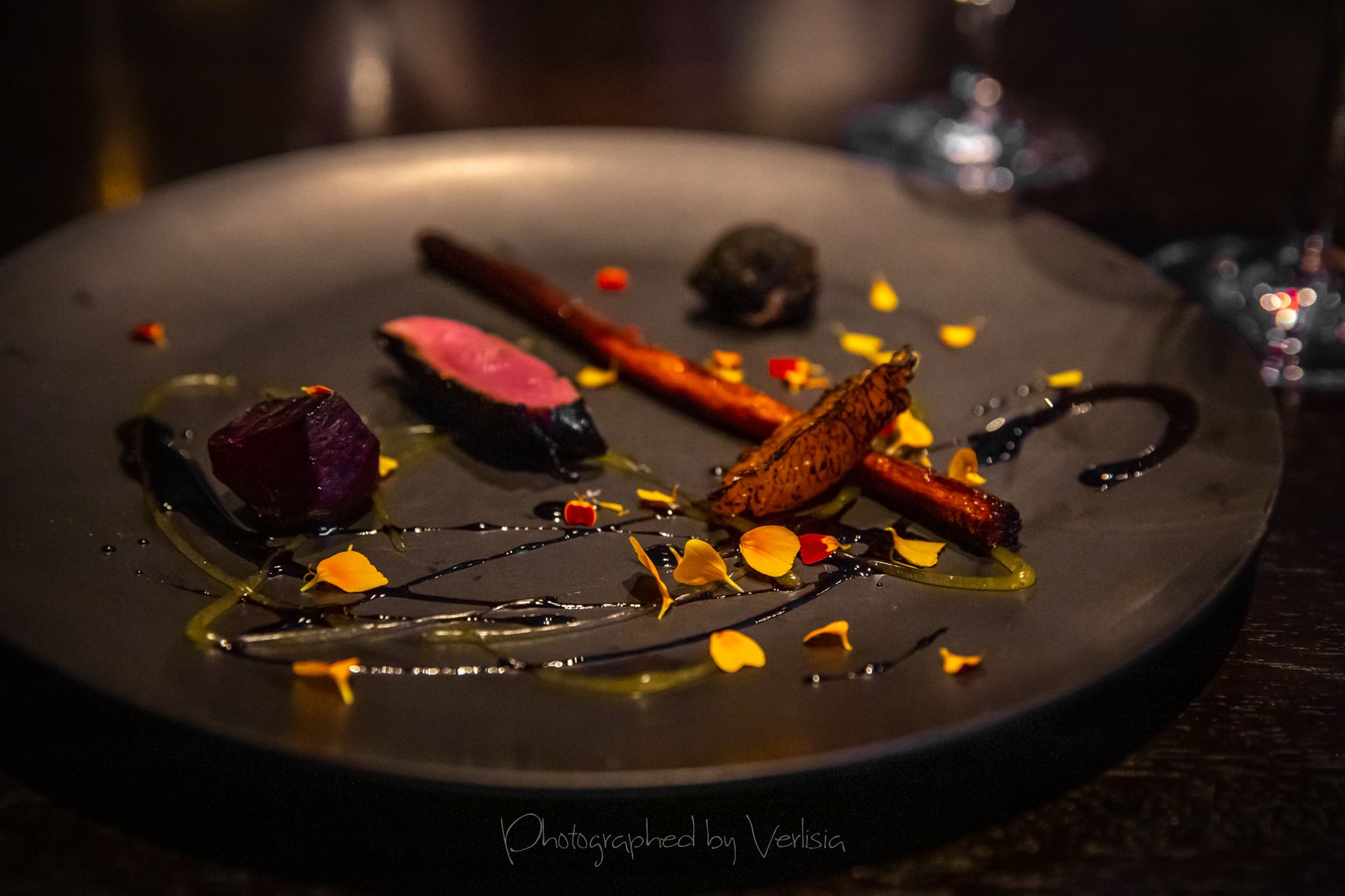 Course #1: Ostera (traditional)Chef's Challenge for us - Can you find your food?, Course #2: Salsify (branch camouflage)Course #3: Skate (brown butter, lemon, herbs), Course #4: Pebble (ebi, ogo, clam shells)Course #5: Corn (truffle, manchego, sherry)Course #6: Trout (white pepper, vietnamese coriander, broccoli)Course #7: Lily Bulb (rambutan, distillation of caviar lim), Course #8: Matsutake (pine, huckletberry, tapioca)Mysterious charcoal. 'pay no attention to it', they said, Course #9: Pork Belly (parsnip, black trumpet, kombu)Course #10: Hot Potato (cold potato, black truffle, butter), Course #11: Squab (beet, orange, dark flavors)Course #12: Squash (ashed goat cheese, cranberry, licorice graffiti), Course #13: Blueberry (bubblegum, lilac, sorrel)Course #14: Balloon (helium, green apple), Course #15: Tropical Fruit (rum, vanilla, kaffir lime), French Pressed Coffee