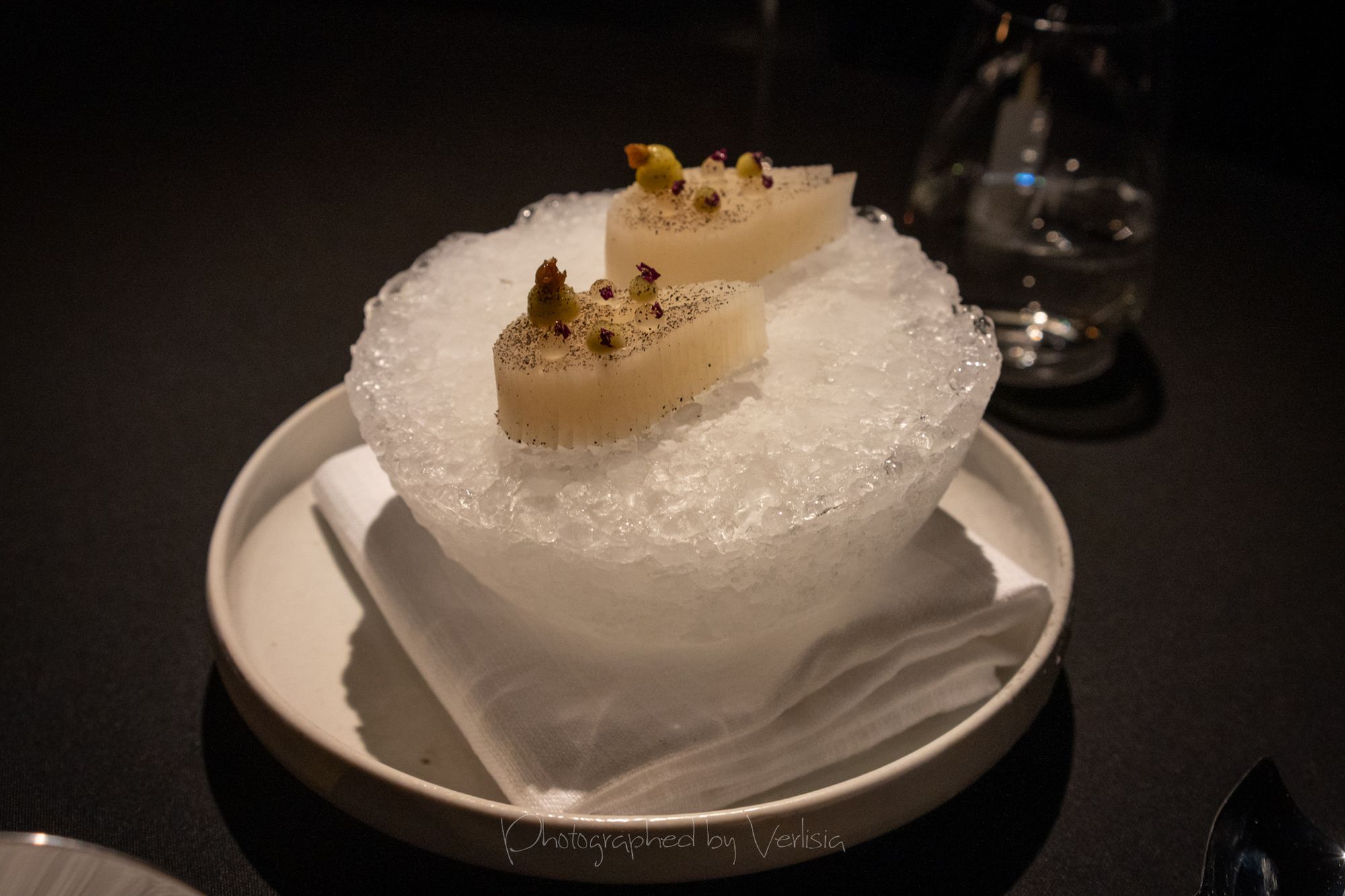 Bladderwrack (Blue mussel emulsion), Kohlrabi (Kohlrabi compressed with linden leaf oil and linden flower vinegar)