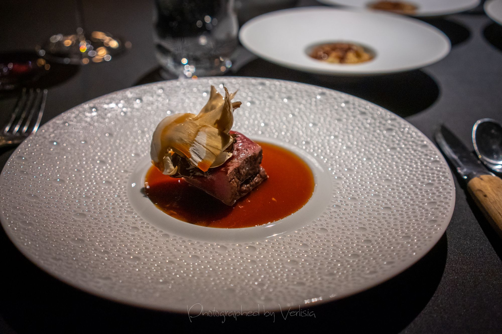 Venison (Venison from Millbrook, New York with black sunchoke, pine mushroom, hen of the woods and a sweet bun)
