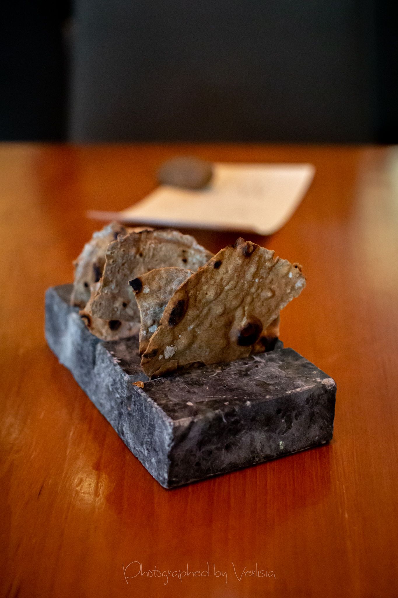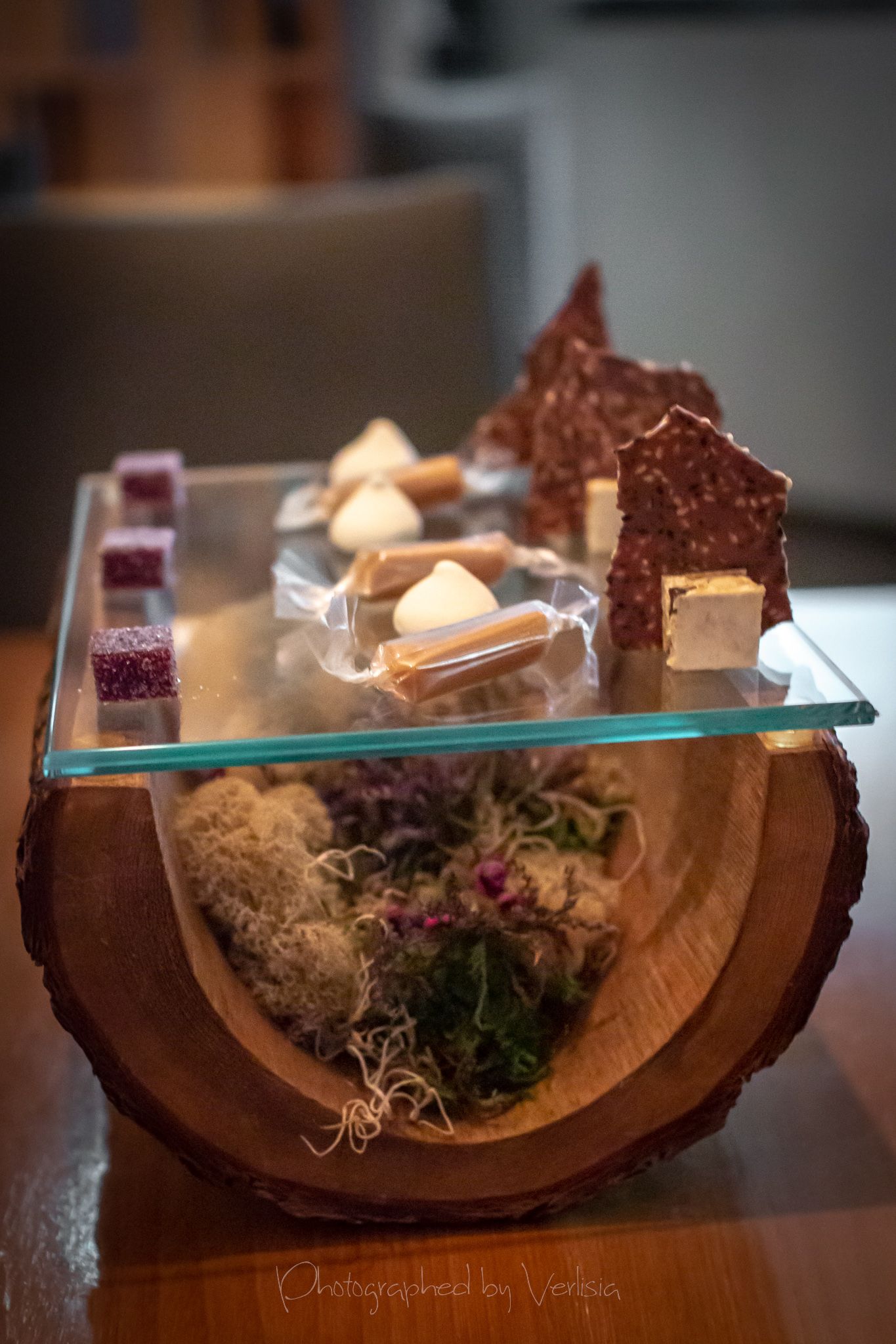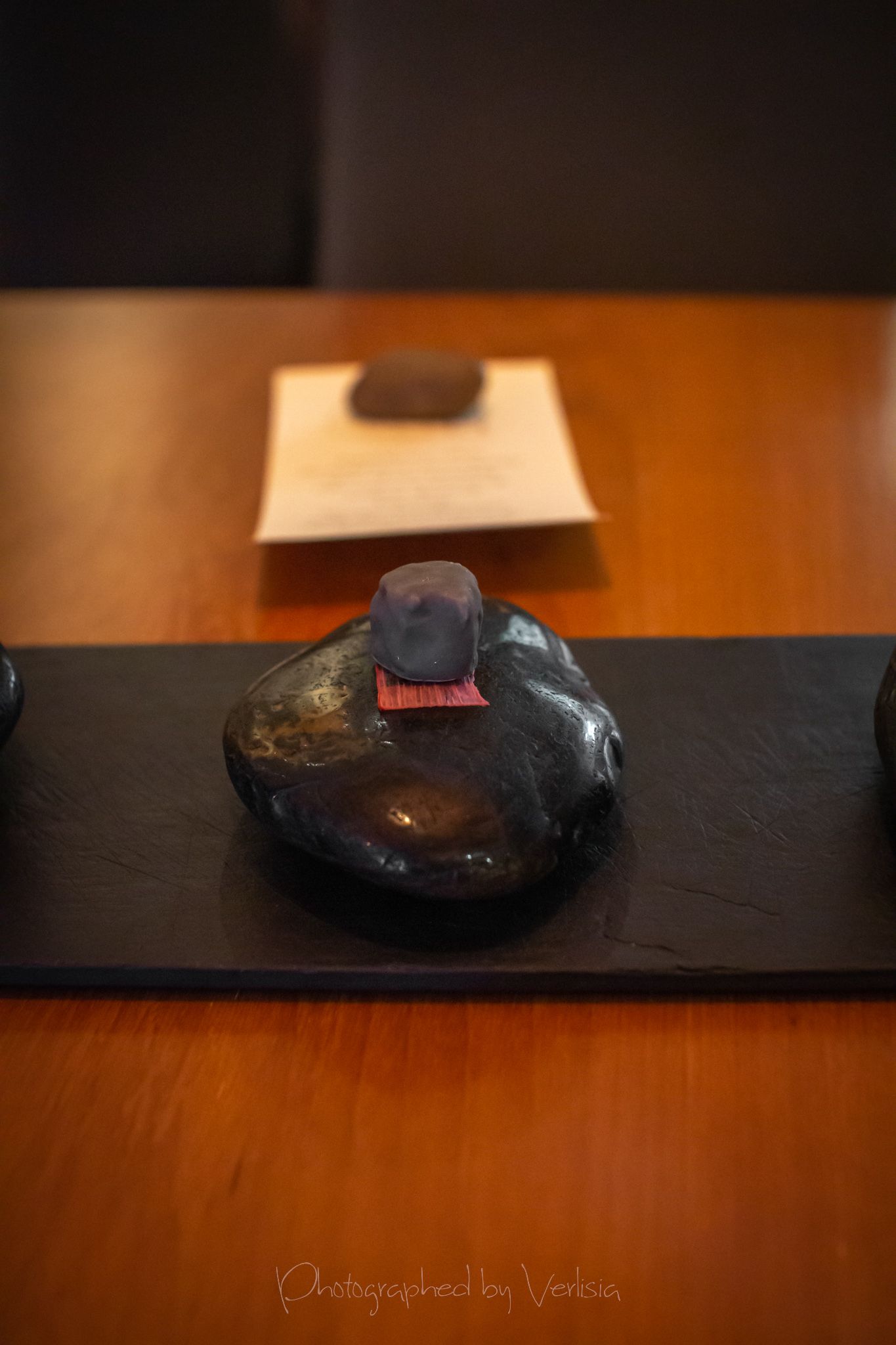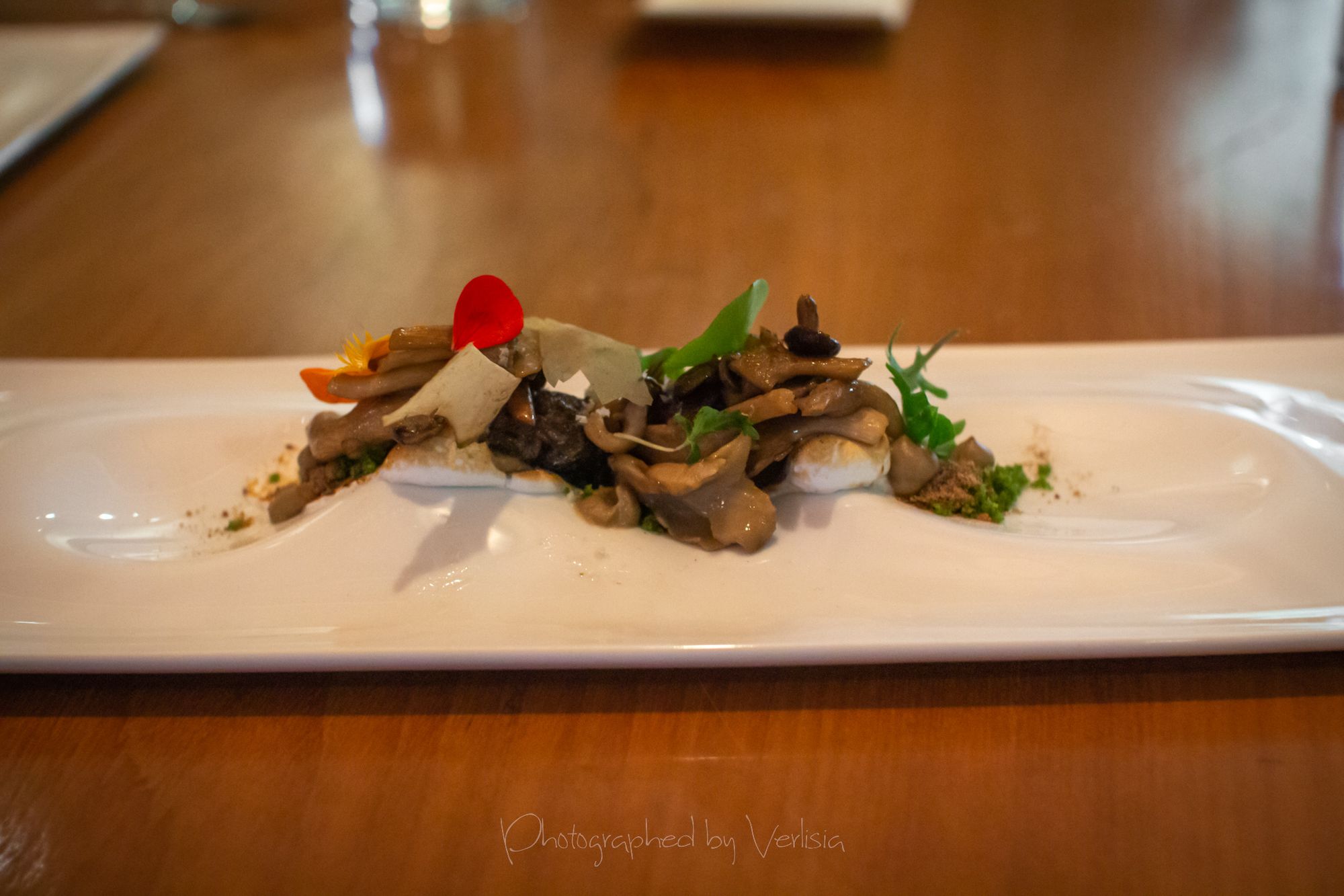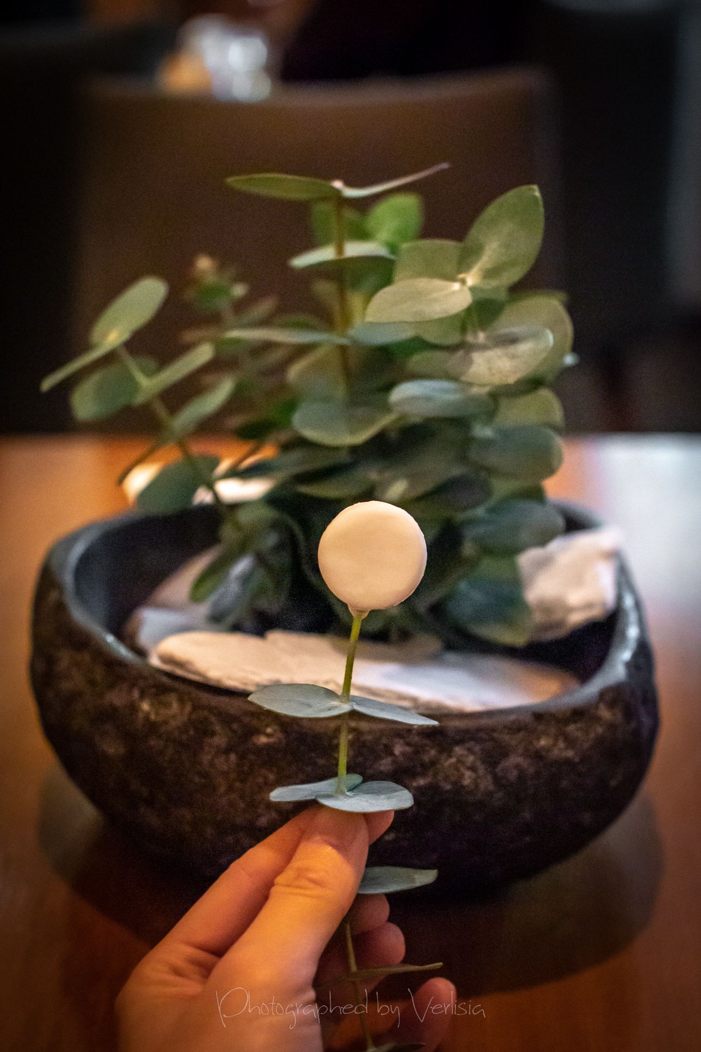 Menu, Champagne, 'Spring has come with his cool breeze - Liquor inside the crisp white chocolate shell"Where the broad ocean leans against the Spanish land.", "bread' course, "A gentle, smell, oceanic of yummy feeling""Mellow serenades of colors licorice and orange", "The half moon, silky and smoky""Woody and stone,", "Nature rejoice, chasing childhood memories", "A subtle smokiness has arrived, and a new start""walking deep in the woods, as the snow might have something to spare", Duck Consomme"Birth which gives its morning mystery", "Spring ... a cuddle with your Arctic flare"Cheese course1st palate cleanser, 2nd palate cleaner (mentos ice cream)"Spring has come with his cool breeze", confections