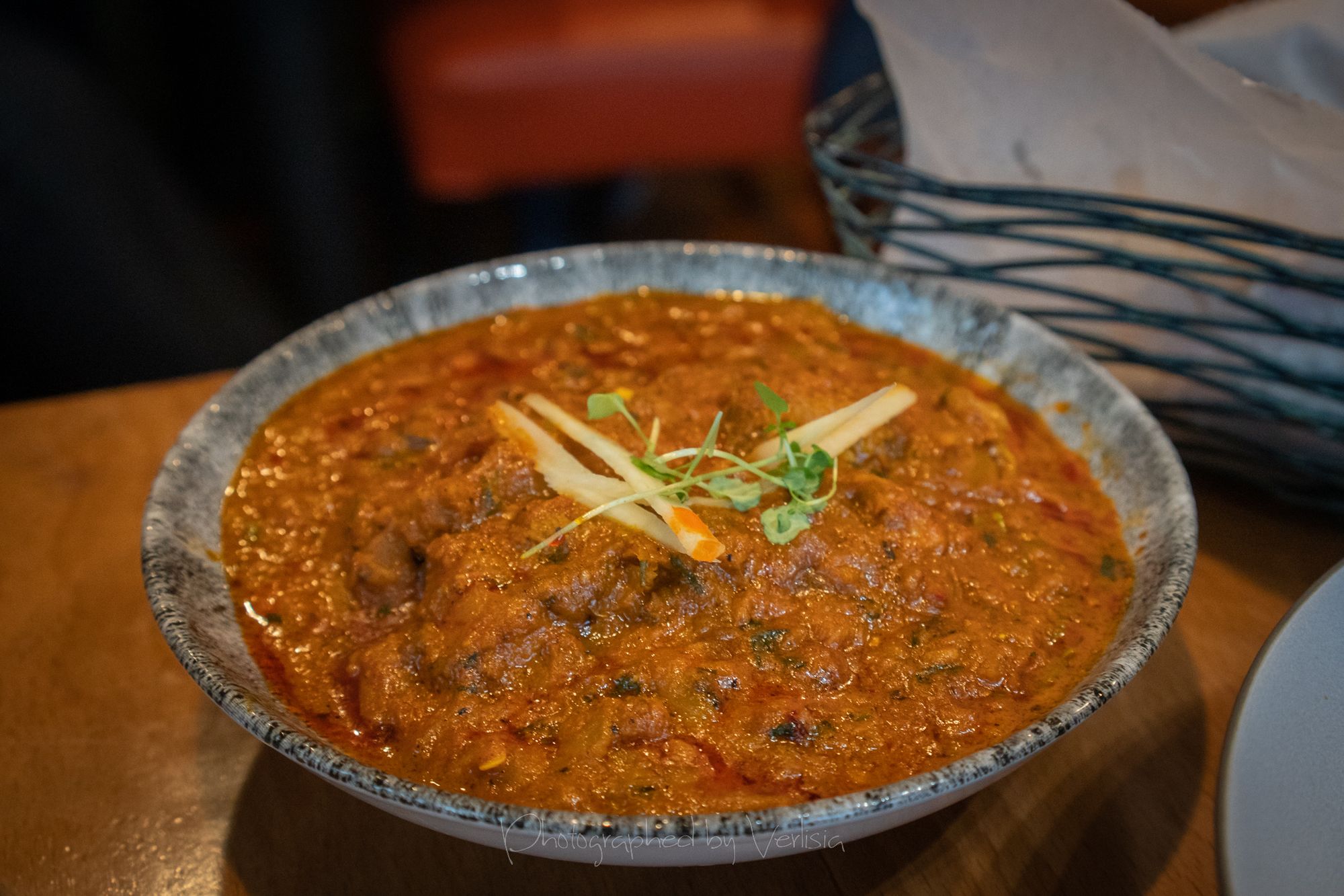 CURSED MOON (Rojo Vermouth, Blood orange vermouth, Spice mix), SPOILED - pulled pork dosai (black lentil, applewood bakon, broiled spices)