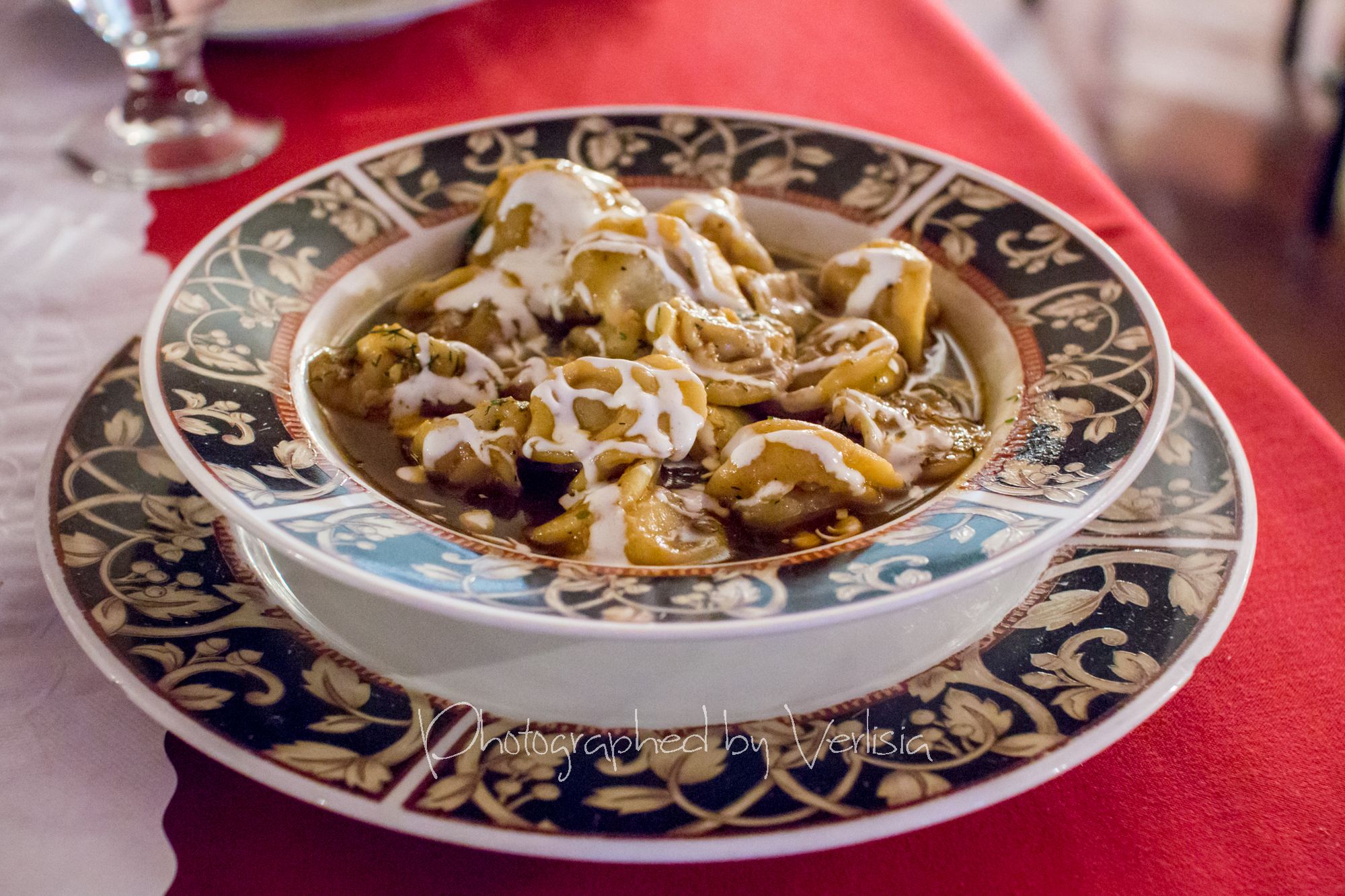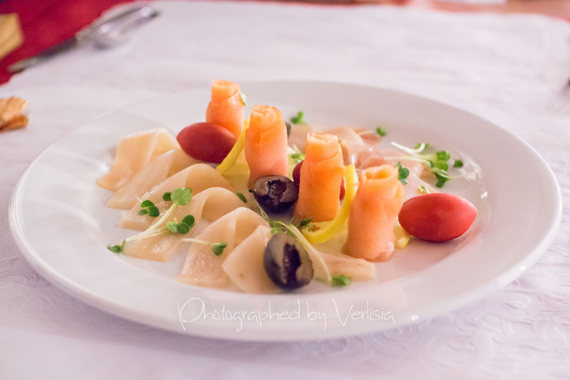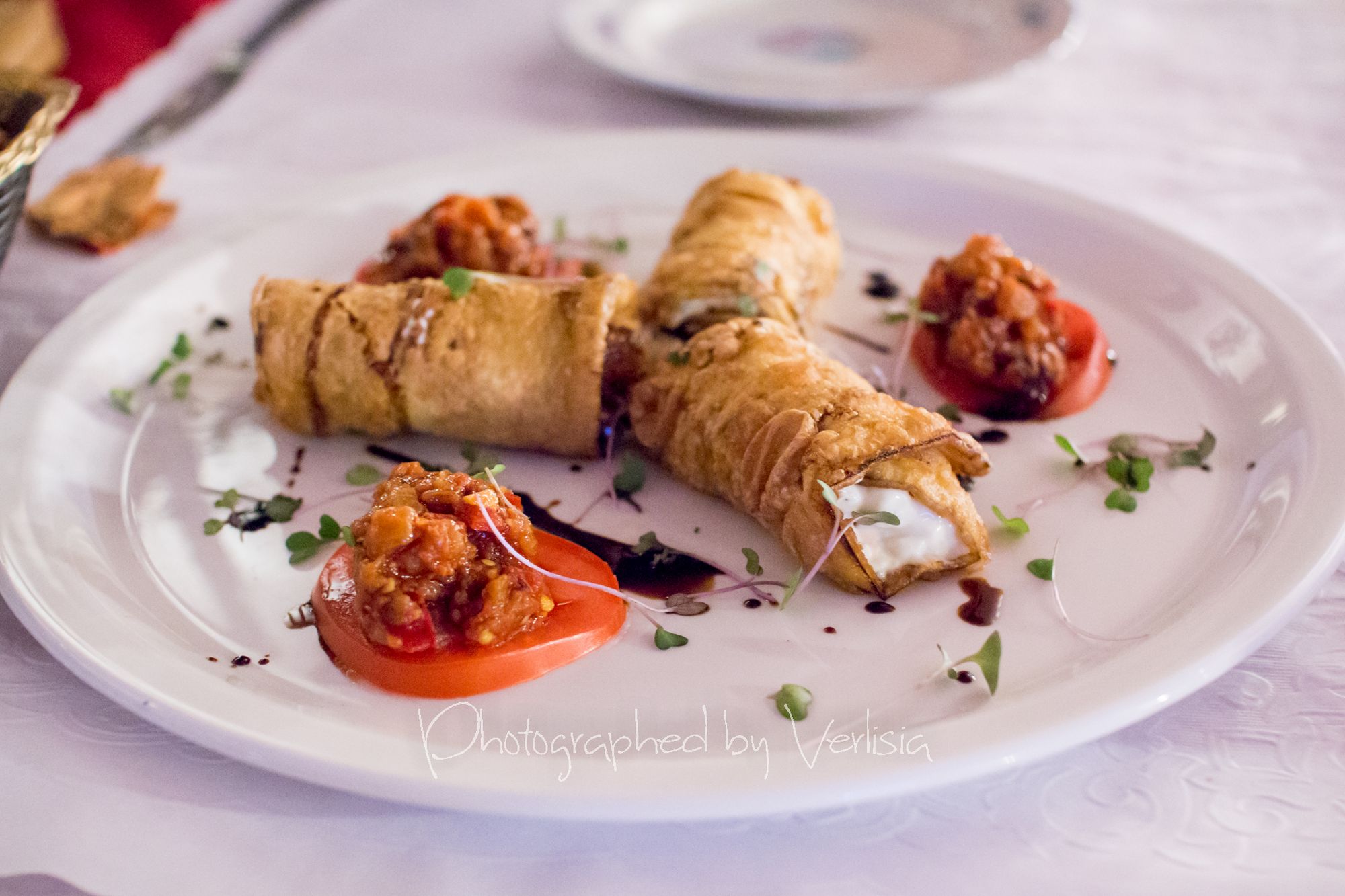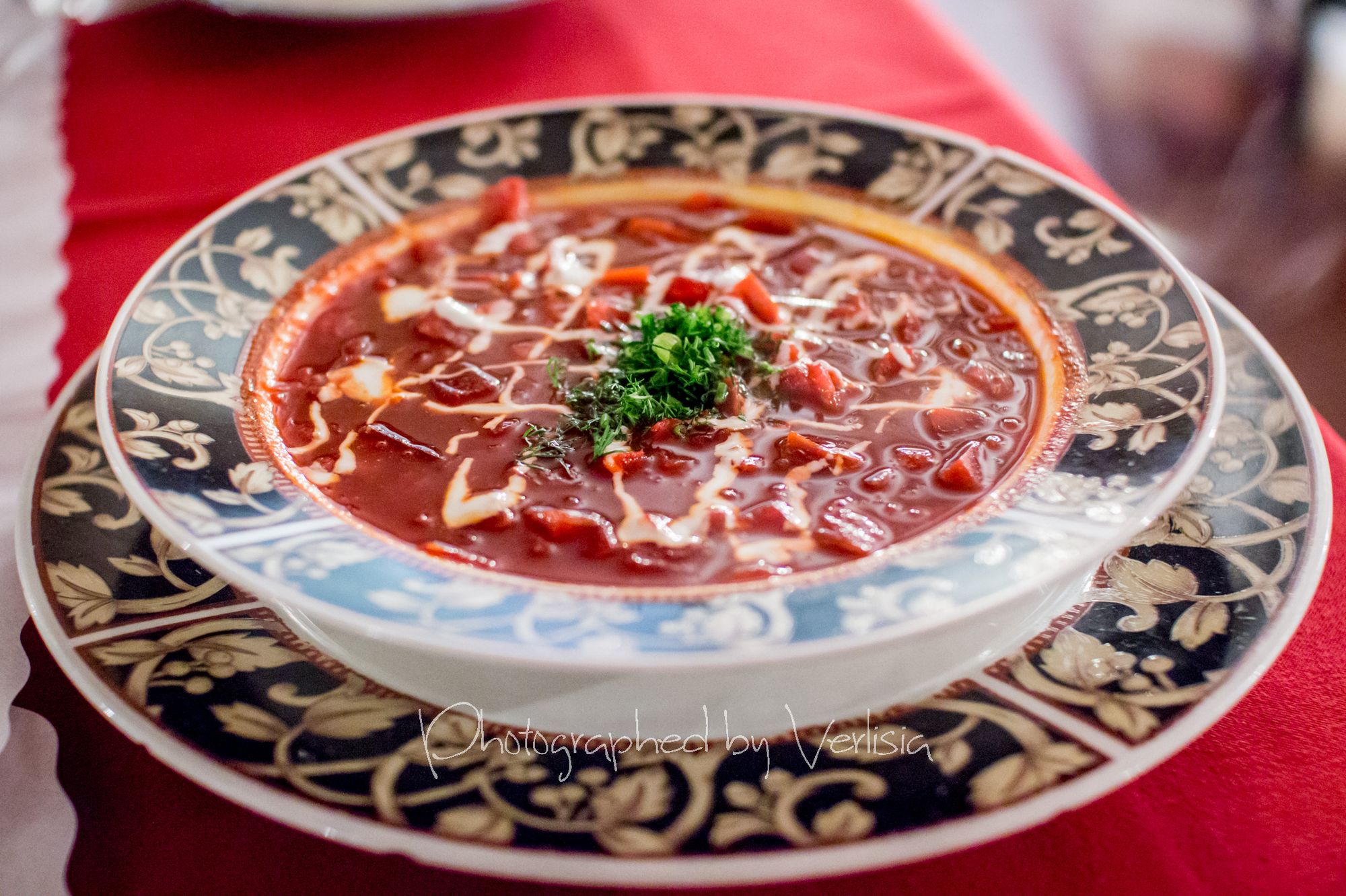 Bread, Iced TeaSmoked Fish Platter (cold smoked Nova salmon, hot smoked sturgeon, natural smoked escolar, grekelita olive, lemon, sprouts), Borscht (Beets, cabbage, carrots, potato, creme fraiche)Pelmeni (House-made tortellini style dumplings. Herb broth, creme fraiche), Eggplant Crepes (Lightly pan-fried, rolled and stuffed, house herb aioli, tomato baklajani), Sour Cherry Cake (Pastry cream on chocolate chiffon cake, sour cherry reduction), Matryoshka Chocolates