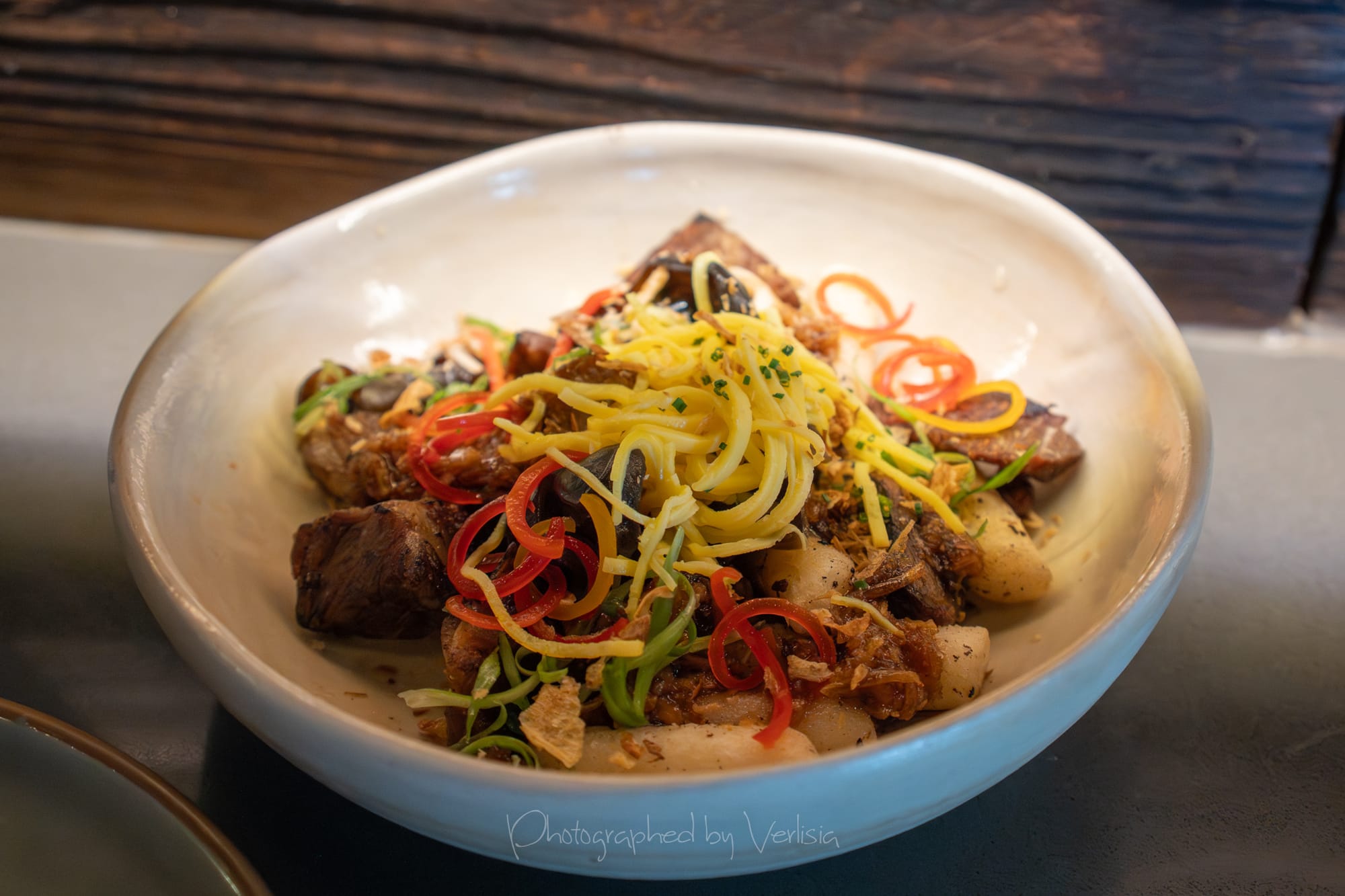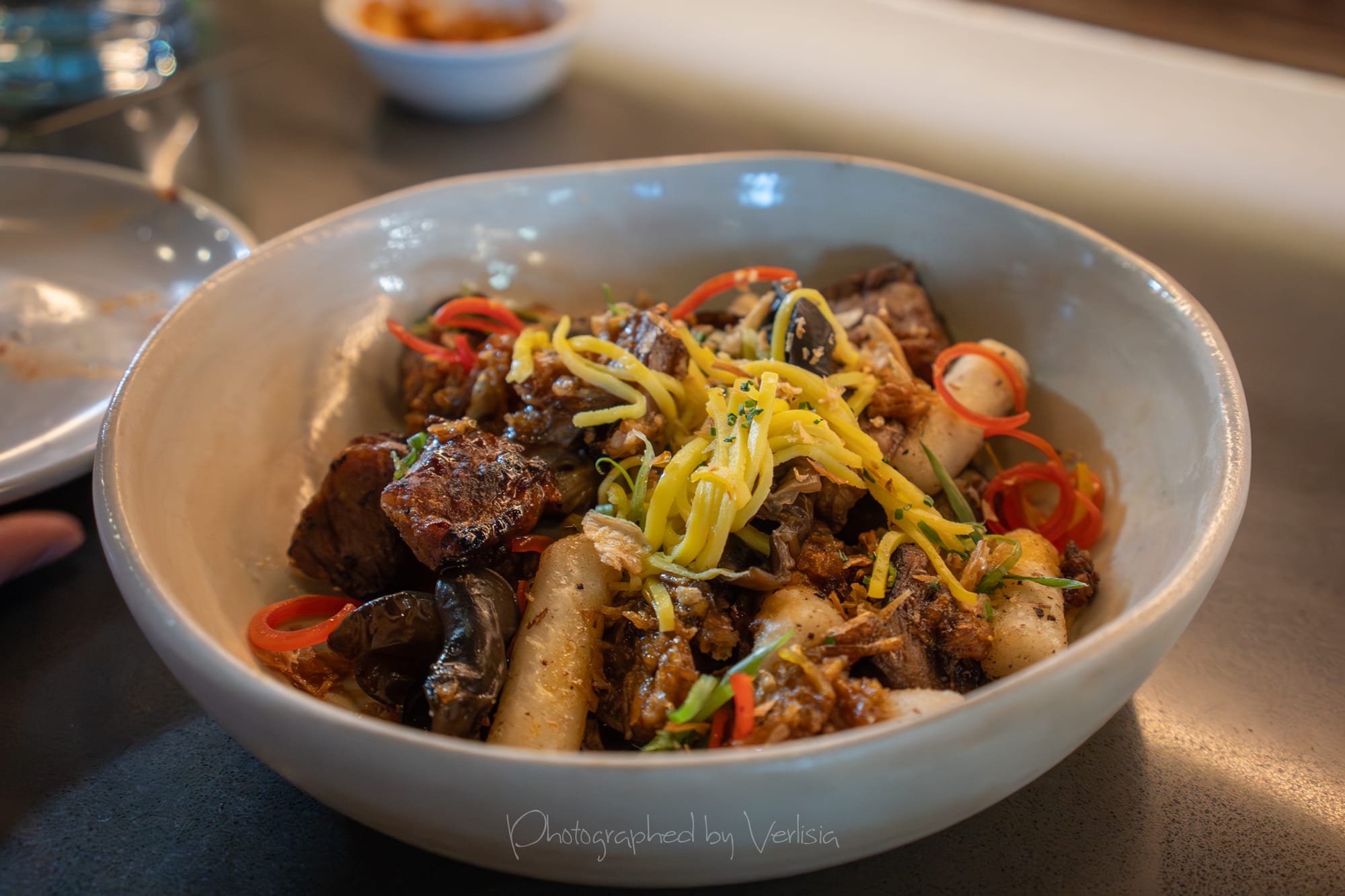 Prime Finger Ribs & Rice Cake (beef finger ribs, rice cake, wood ear mushroom, chili oil, shallot)