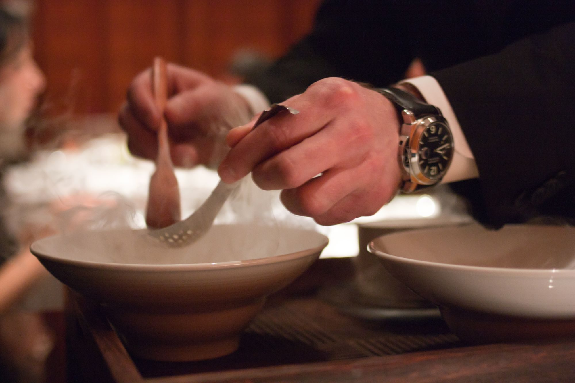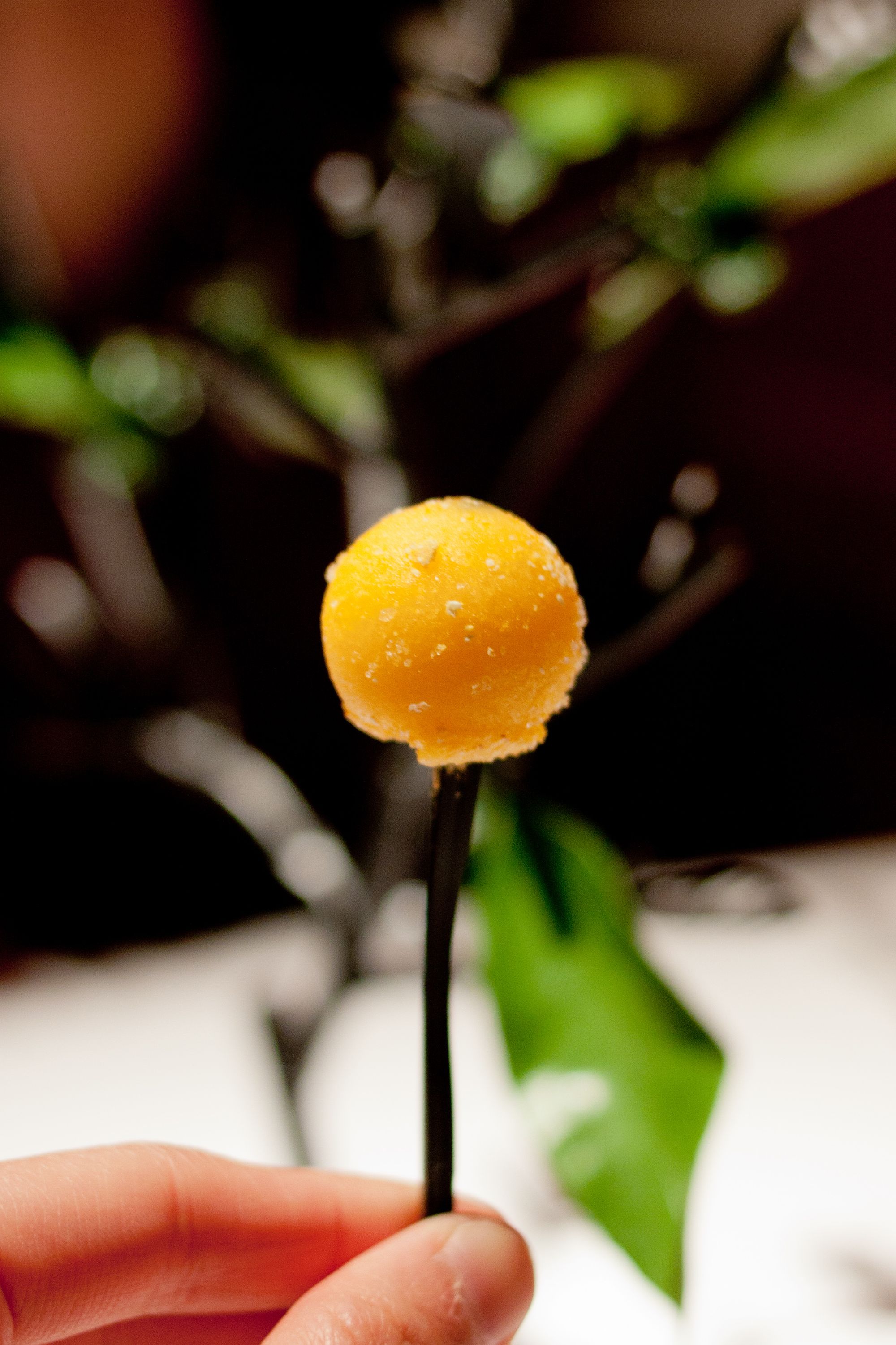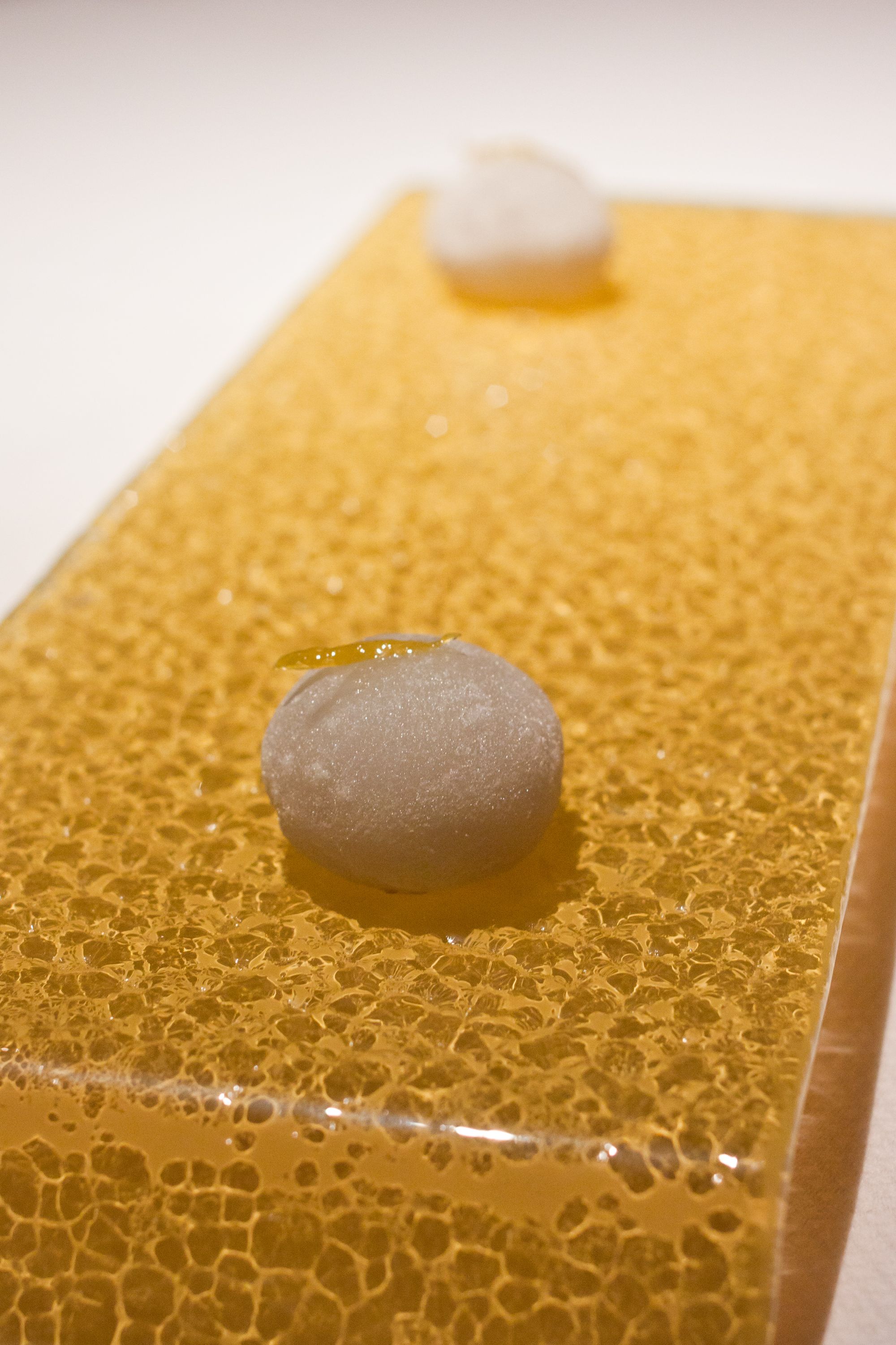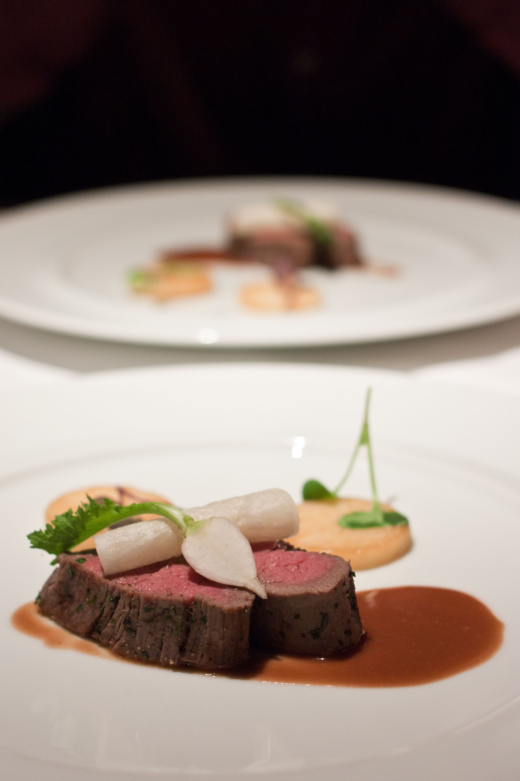 Champagne, Compressed Towel, Pumpkin Spiced Sponge BreadAmuse, Winter SaladBeet Juice, Walnut Bread, ButterCaviar Parfait62.5 C Poached Egg with Black Truffle, Champignons Sauvages SaladRoasted Kabocha Squash Soup with Sunflower Seeds "Ice Cream"Heirloom Tomato Terrine (Noirmoutier Turbot with Lemon), Maine Lobster with Split Pea Puree (Anise and Hibiscus Gelee)Mandarin With Tarragon Sponge, Mandarin Tree with Mandarin SorbetSuckling Pig Confit with Bok Choy, Grass Fed Petit Filet MignonCheese Course, Palate Cleaner, Chocolate Cookies and Strawberry with Warm Apple ButterscotchMadeleine with Coconut Panna Cotta and Passion Fruit Puree and Sorbet, Yuzu Mochi, Valentine's Day Special Bonbon