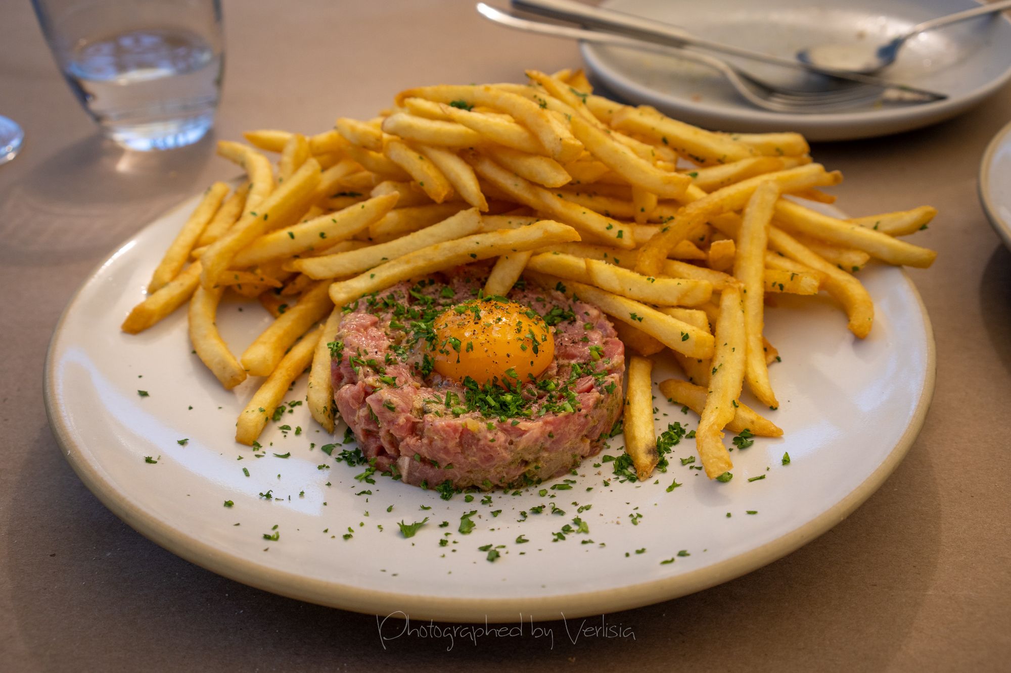 Santa Barbara Uni with Regis Ova 'Hybrid' Caviar & Creme Fraiche Panna Cotta, Steak Tartare (traditional accompaniment with fries)