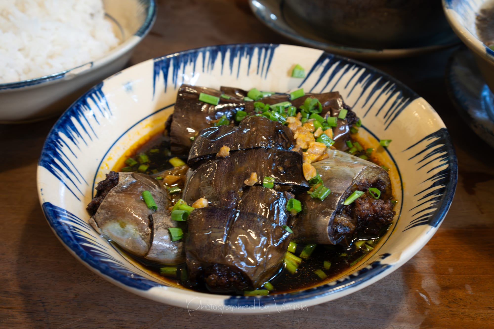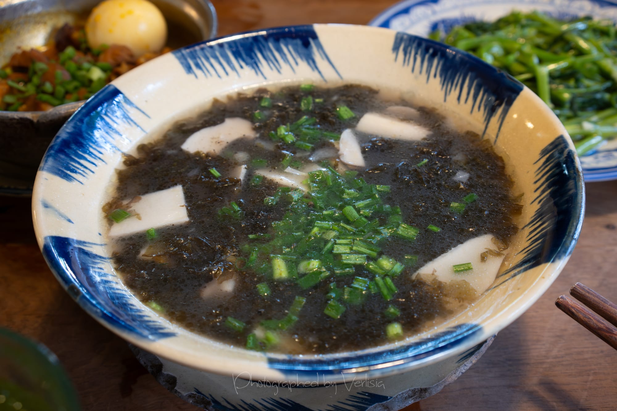 Seaweed Soup with Mushroom; Stuffed Eggplant with Minced Pork