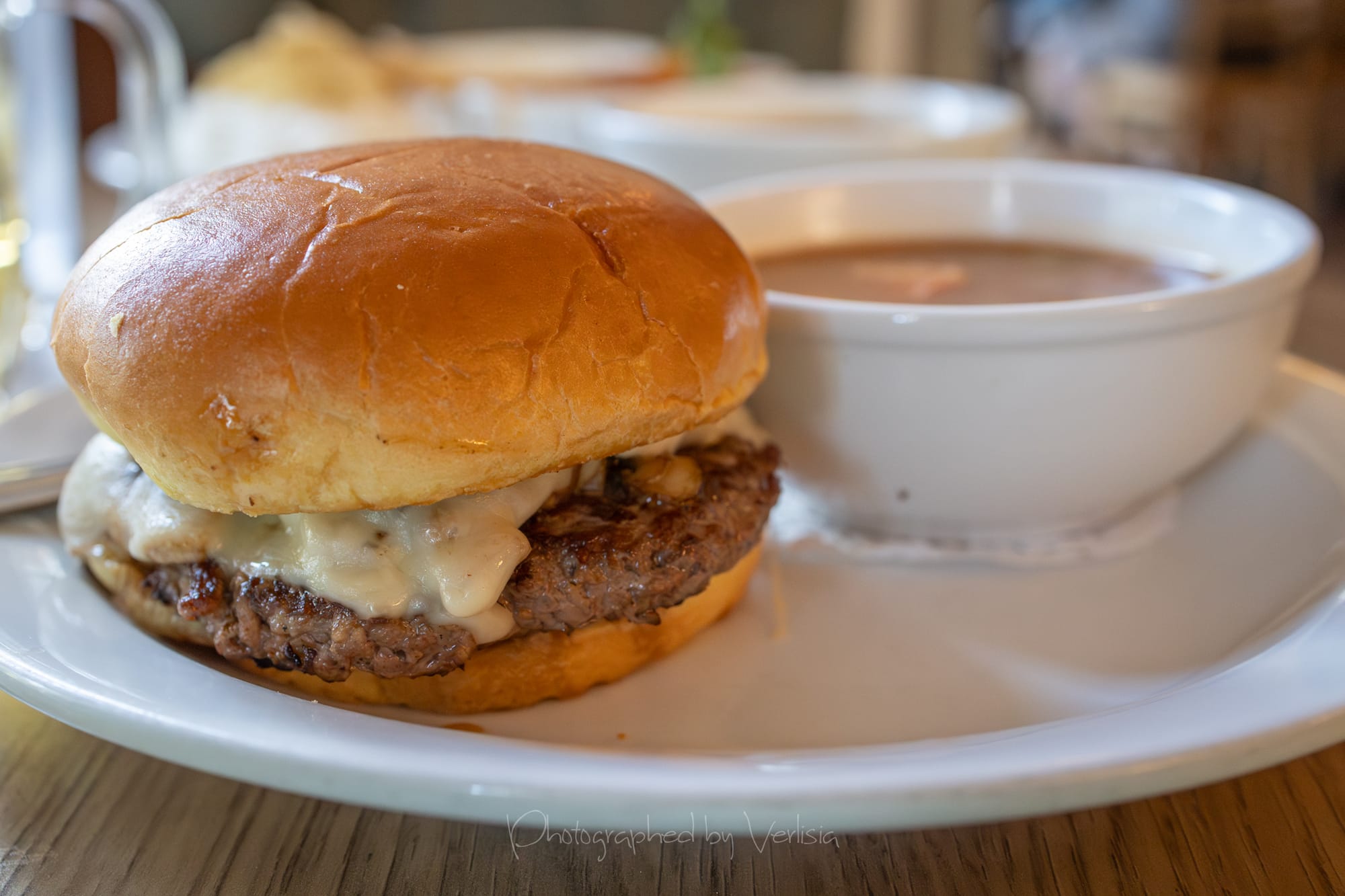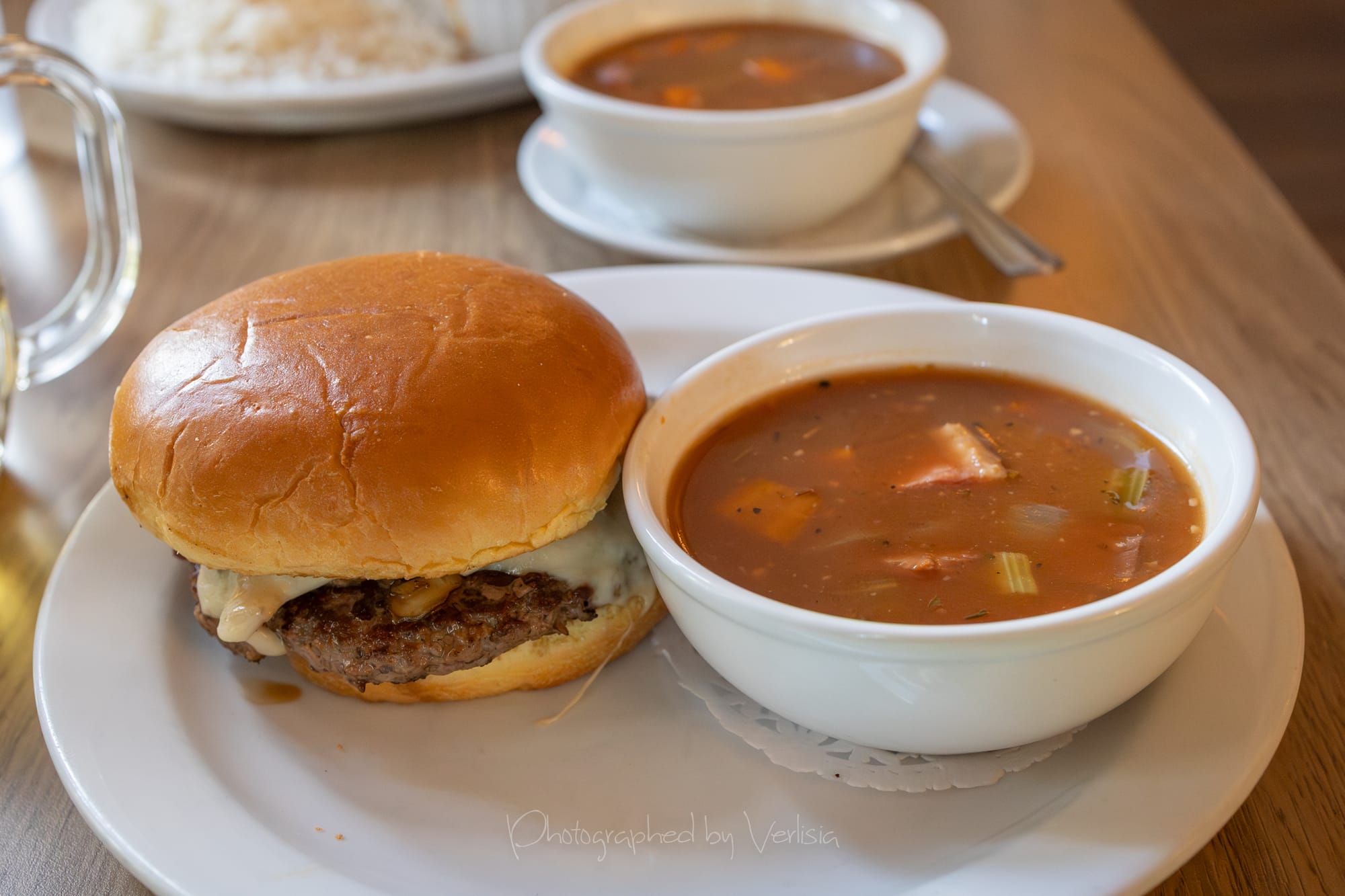 Mushroom Swiss Burger with Soup