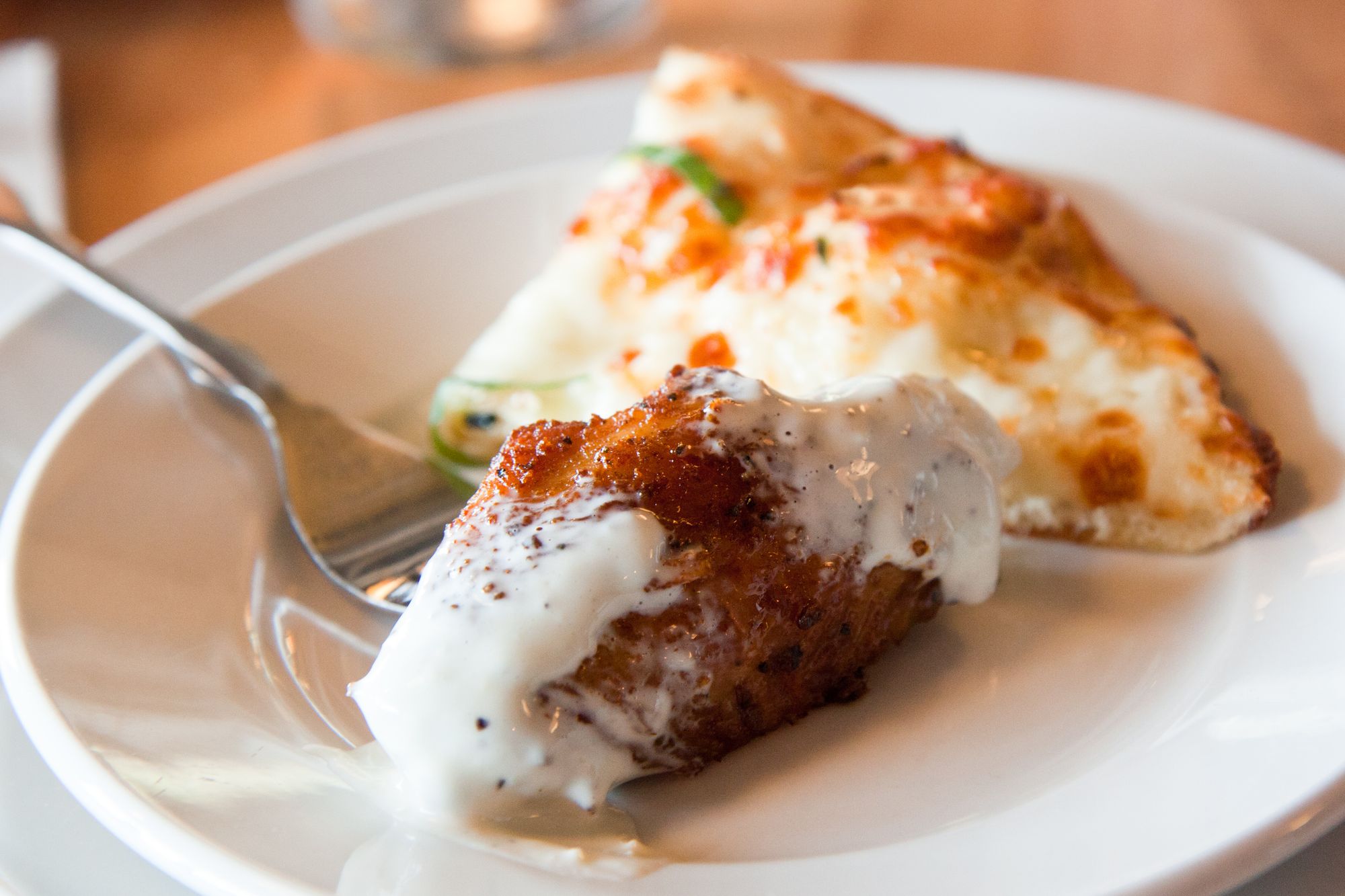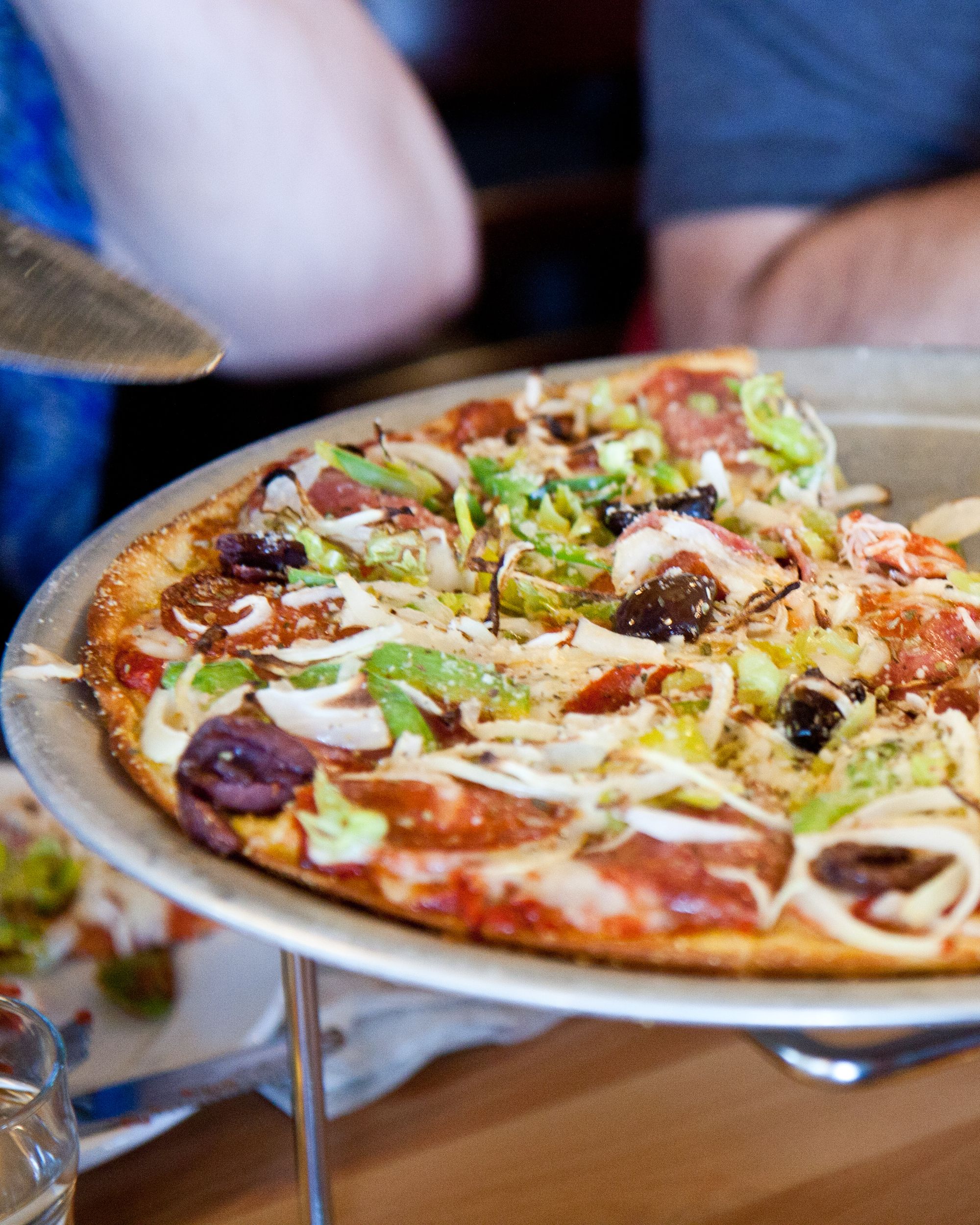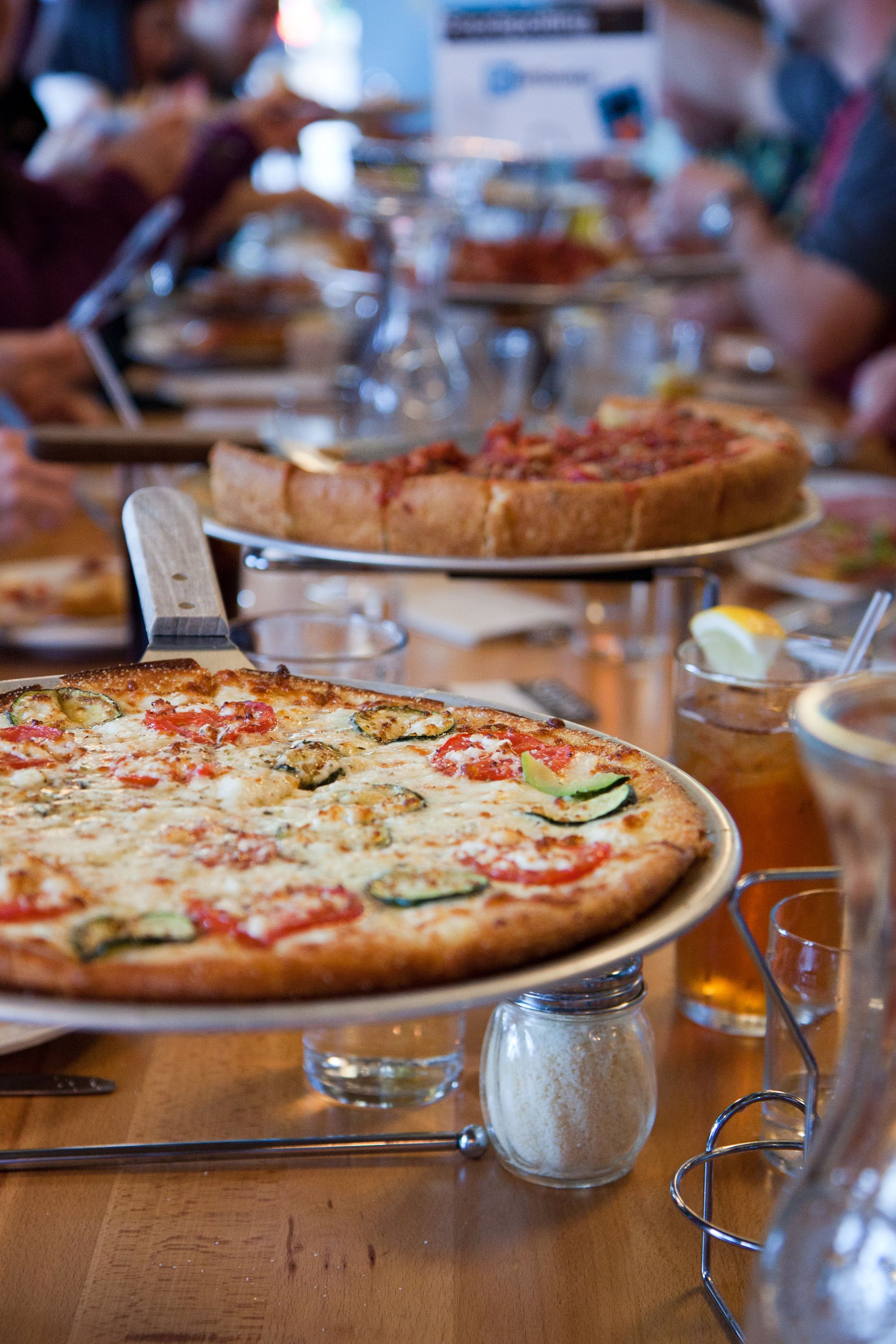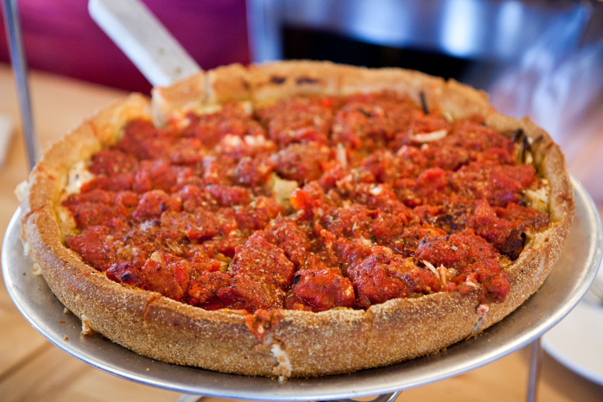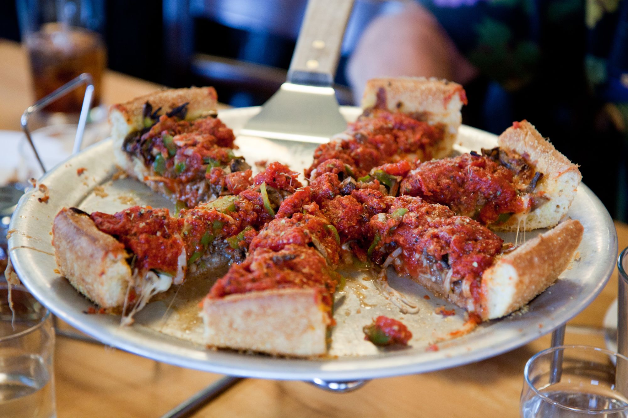 Spicy Chicken Wings, Garlic Cheese BreadClassic Deep Dish - Sausage, mushrooms, onions, green bellsBlue Line Deep Dish - Spinach blended with ricotta & feta, mushrooms, onions, garlic.Italian Combo Thin Crust, White Pie Thin CrustMediterranean Chicken Deep Dish - Roasted chicken, marinated artichoke hearts, red bells, green olives, onions, feta.