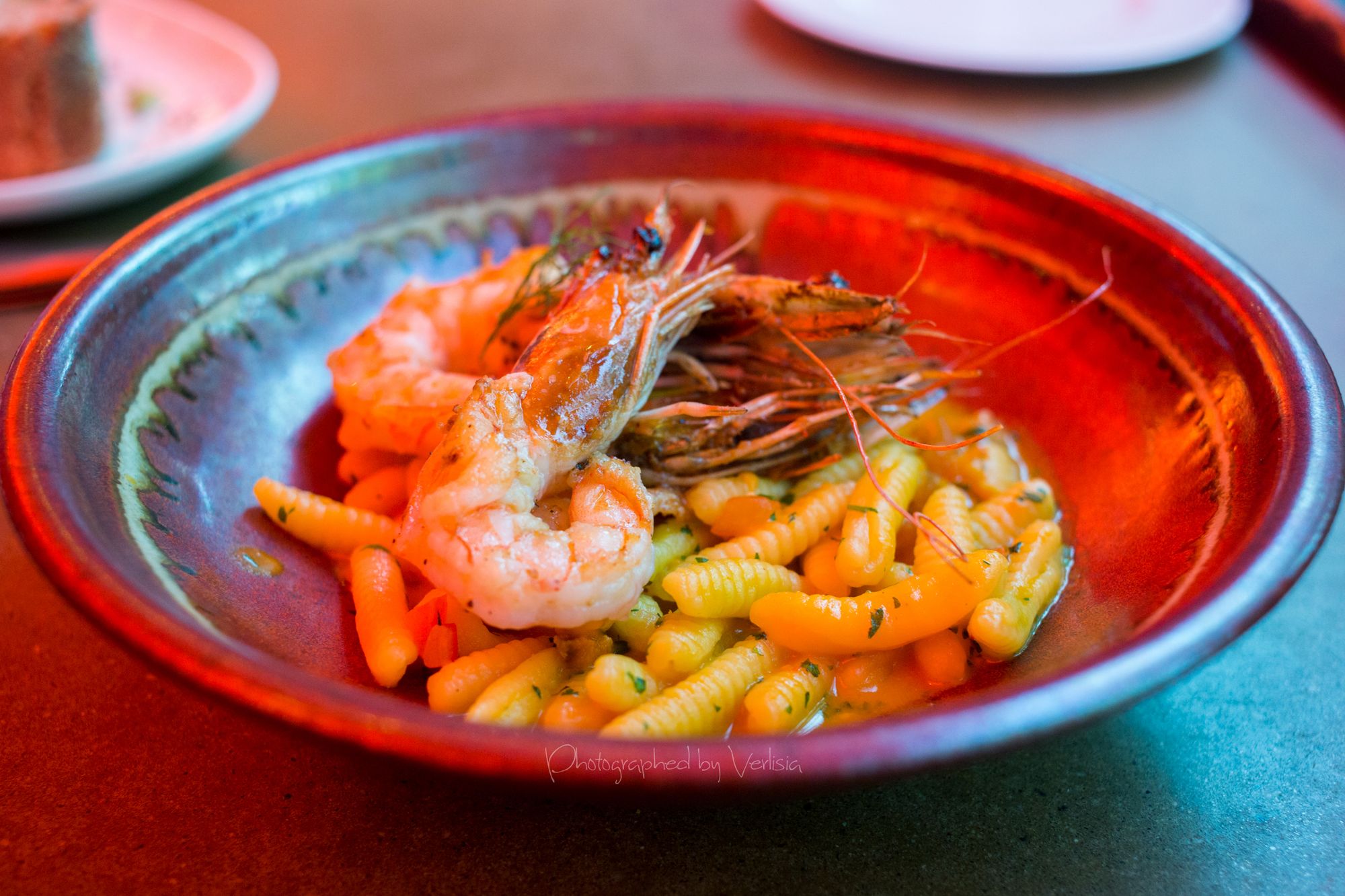 Cavatelli e Gamberoni (Santa Barbara sea urchin pasta, Gult prawns alla plancha), Risotto del Giorno