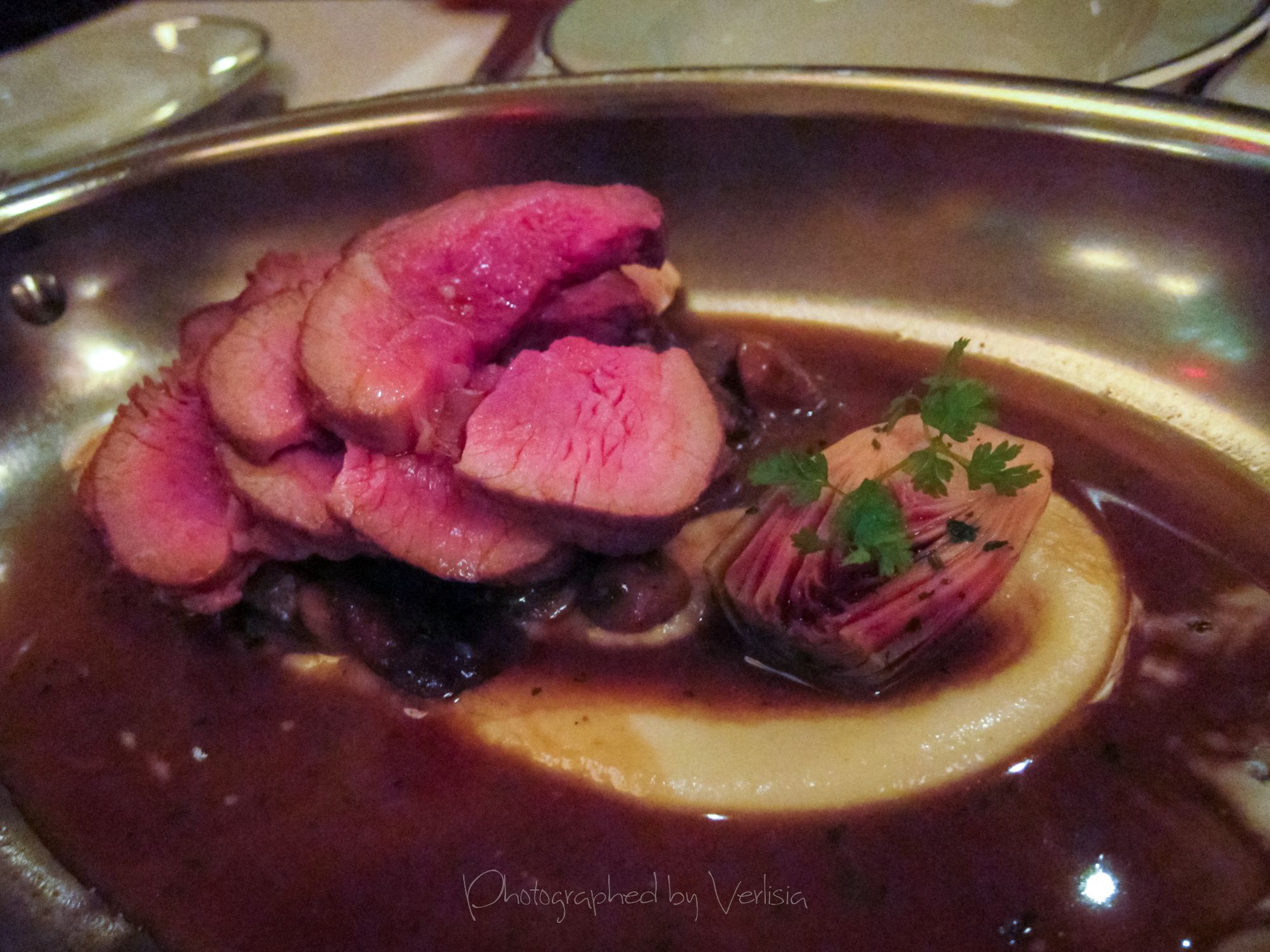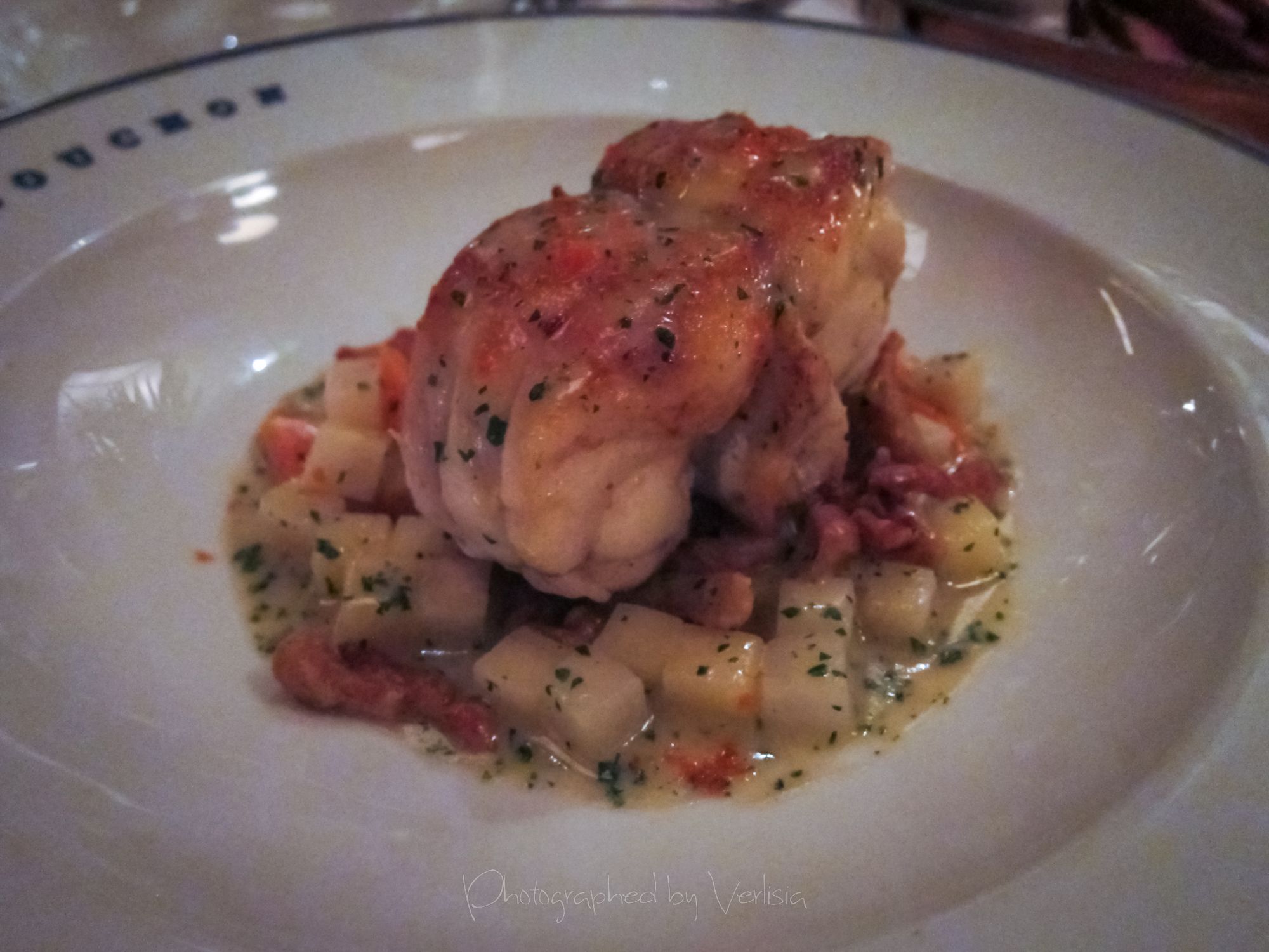 Blanquette de Lotte (roasted monkfish with a fricassée of glazed root vegetables & lobster spaetzle), Gigot d'Agneau (roasted leg of lamb with wild mushrooms, purple baby artichokes, crispy lamb belly & sauce soubise)