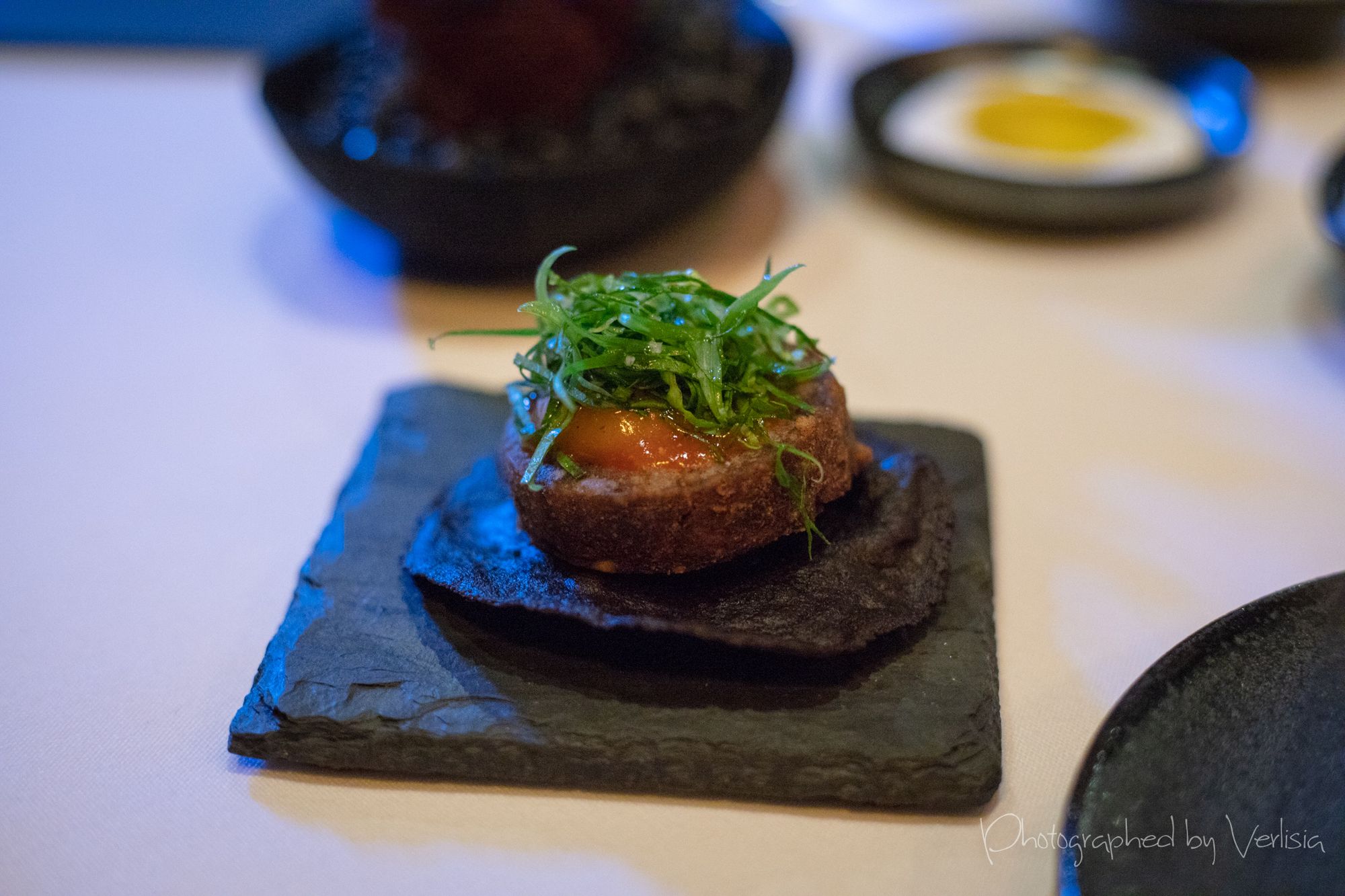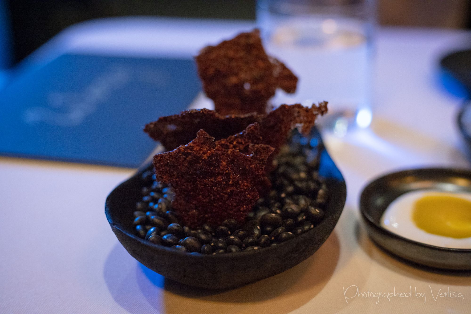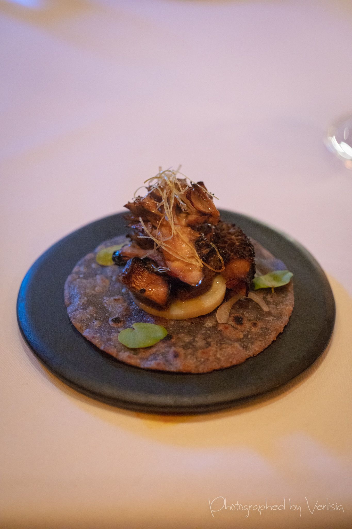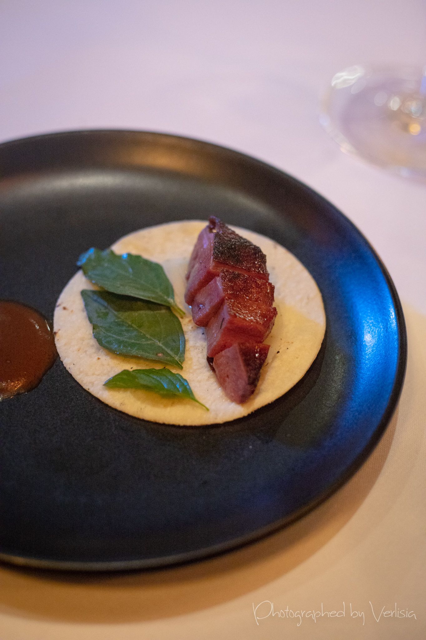 agua fresca, ostiones divorciados (kumamoto oysters, cucumber, tomata)tostada (black bean, salsa roja, quail egg), chicharron (black barkey, smoked goat cheese, chihuacle amarillo), Forstmeister Geltz Zilliken 2003 Riesling Spatleseyuca (Fort Bragg sea urchin, avocado, pine nuts), carne asada (a5 wagyu, red leaf lettuce, fermented green tomato jus), hongos (michoacan blue masa, smoked mushrooms, crispy leeks)piachon (sour tortilla, chamoy, house mole), hielo (yellow peach, lemon balm), esquites (lobster, corn, micro onions, marigold)Matthiasson 2014 Chardonnay Michael Mara Vineyard, sope (heirloom masa, spring peas, paddlefish caviar), aguacate (gem avocado, tsar nicoulai smoked trout roe, local seaweed)caldo (tomato water, cherry tomato, nasturtium leaf), tres frijoles (rancho gordo royal corona, moro, cranberry golden ossetra caviar), pescado (halibut, cilantro, nopales, anaheim peppers)cordero, salsa macham, chanterellebunuelo (summer berries, olallieberry jarabe, kaffir lime honey), Patrick Bottex La Cuille Gamay, fresa (Swanton strawberries, chocolate mint, salad burnett)nuez (pecans, brookes cherry, valrhona chocolate), digestivo (watermelon,lime, vermut lustau rojo, mezcal)