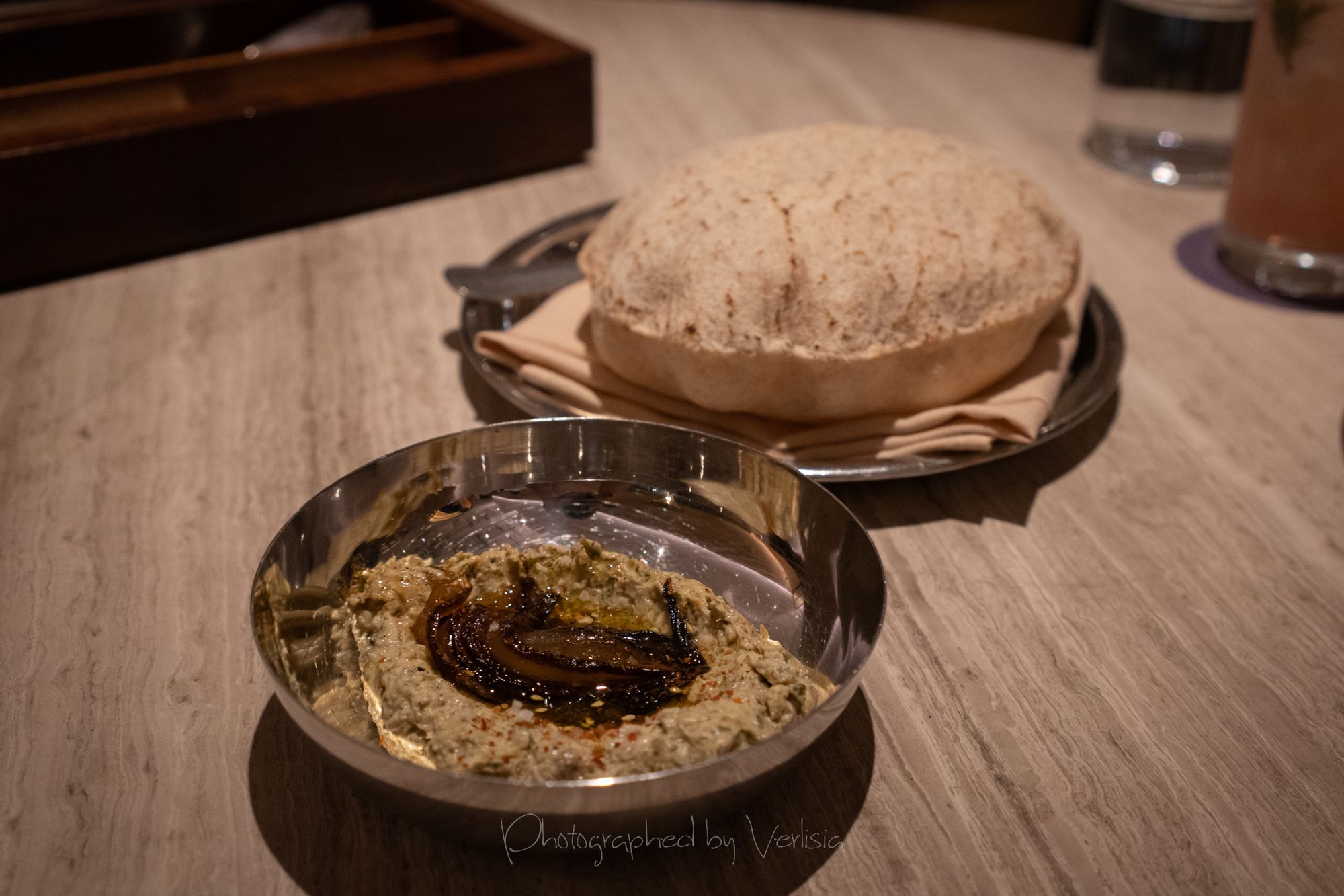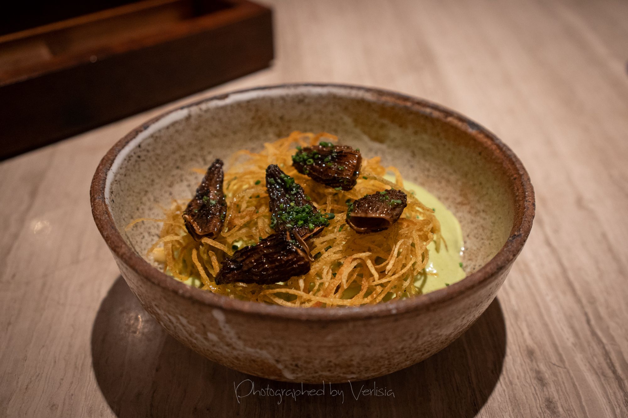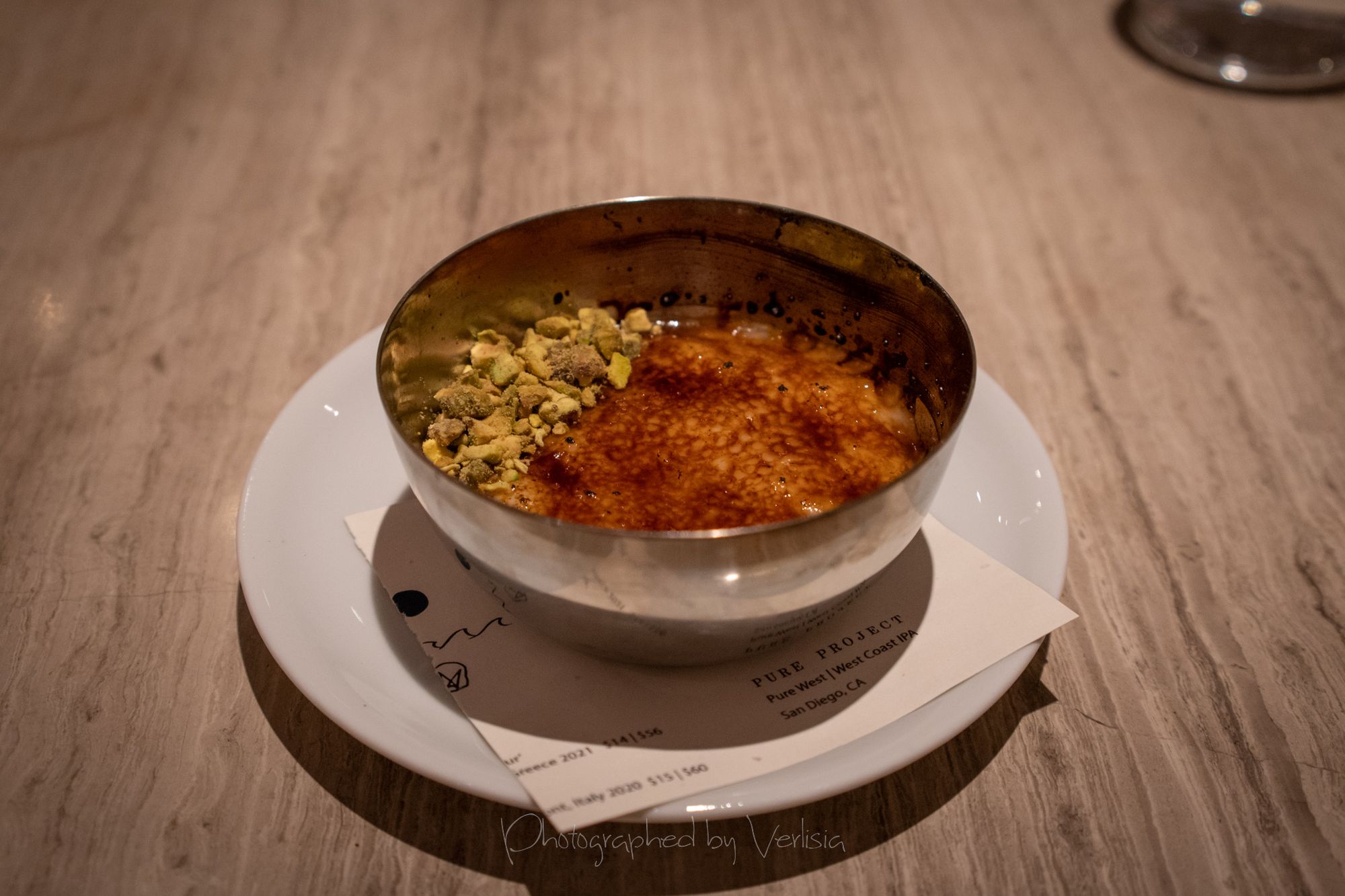 Soda, Uni Toast (jamón ibérico de bellota, tomato bread, garlic aioli), ChampagneBabaghanoush (smokey eggplant, roasted onion, za’atar, pit)Chargrilled Morel Mushrooms (melted savory cabbage & spring onion, smoked potato cream), Mediterranean Octopus (lemon, taggiasca olives, roasted garlic skordalia)Spicy Squid Ink Fettuccine (california dungeness crab, bottarga breadcrumbs, confit toma), Turkish Rice Pudding (coffee-date jam, pistachios)