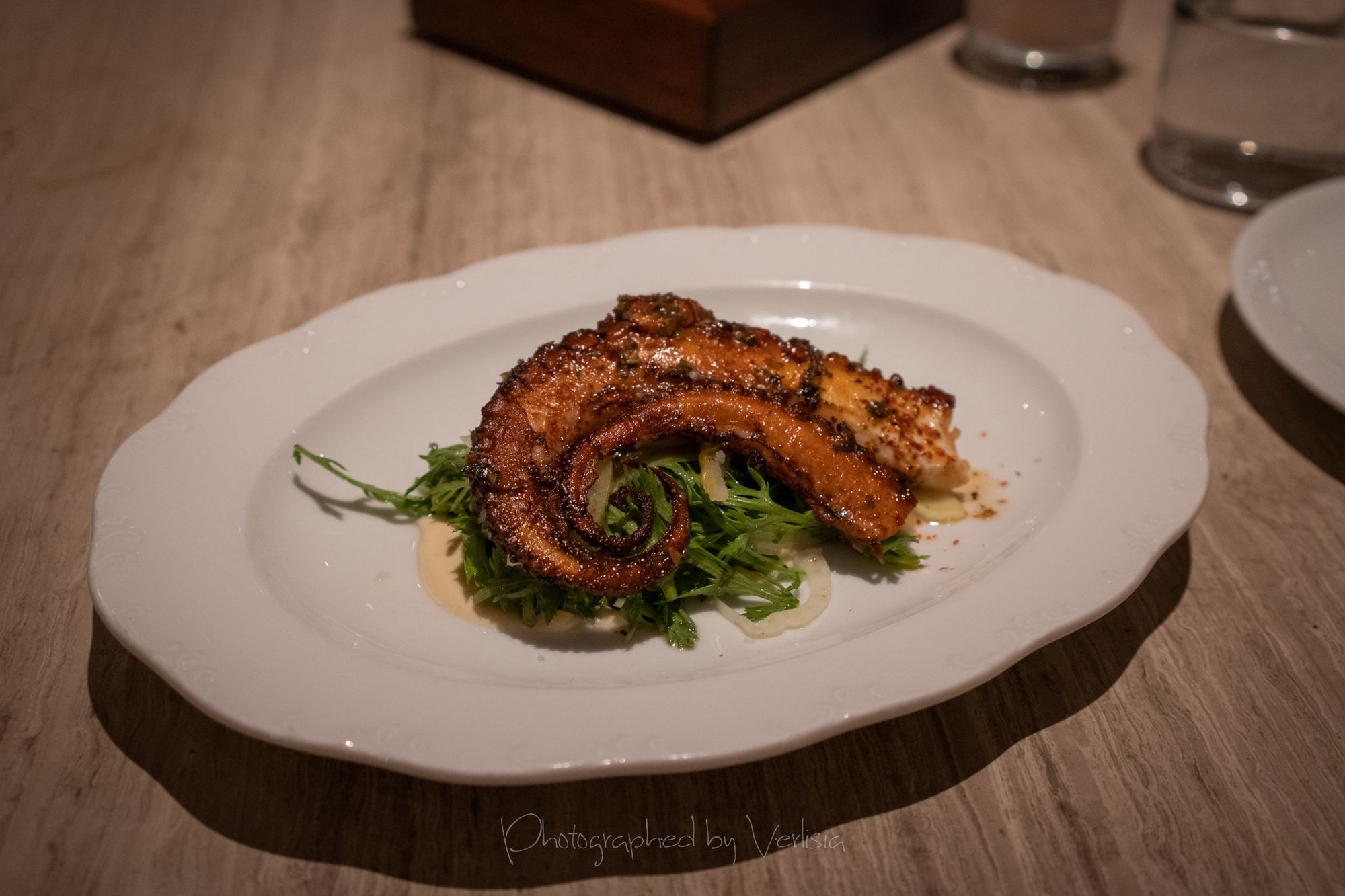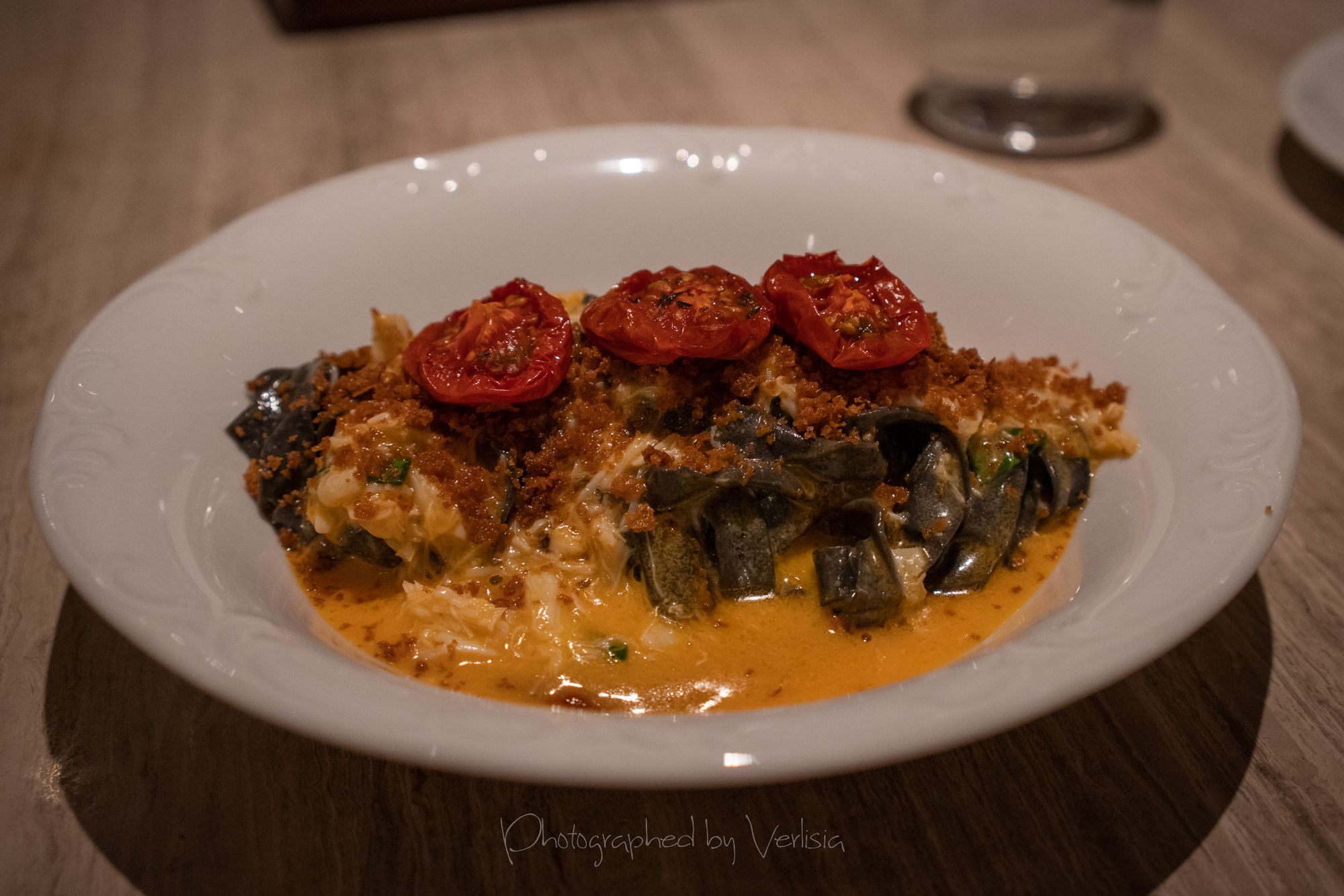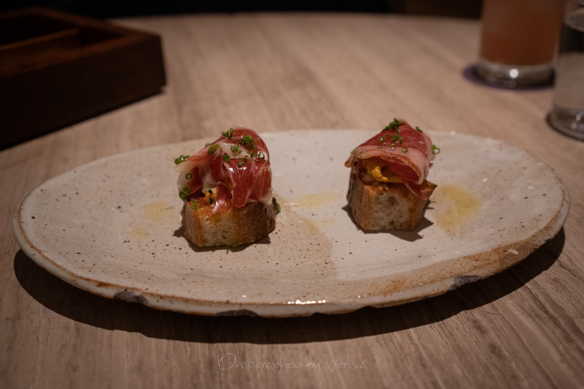 Soda, Uni Toast (jamón ibérico de bellota, tomato bread, garlic aioli), ChampagneBabaghanoush (smokey eggplant, roasted onion, za’atar, pit)Chargrilled Morel Mushrooms (melted savory cabbage & spring onion, smoked potato cream), Mediterranean Octopus (lemon, taggiasca olives, roasted garlic skordalia)Spicy Squid Ink Fettuccine (california dungeness crab, bottarga breadcrumbs, confit toma), Turkish Rice Pudding (coffee-date jam, pistachios)