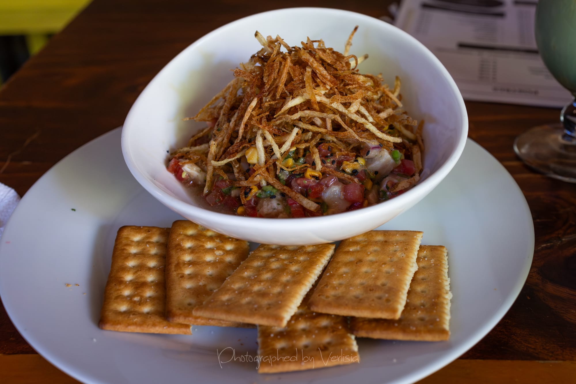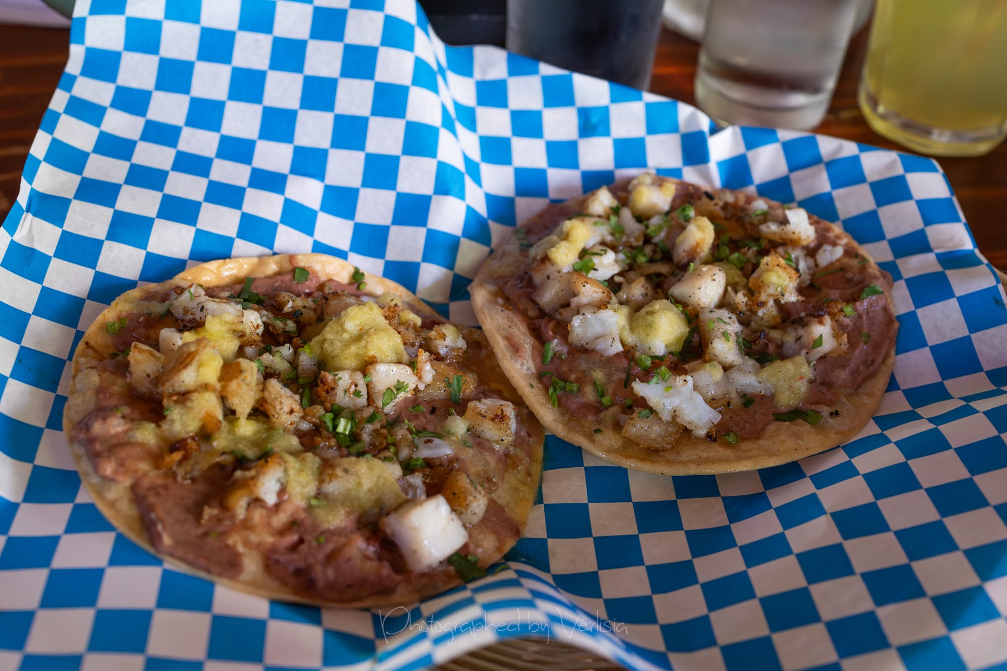 Enchiladas de Pescado (2 enchiladas con tilapia, mango, cebolla, salsa de frijol y limon), Limonadas