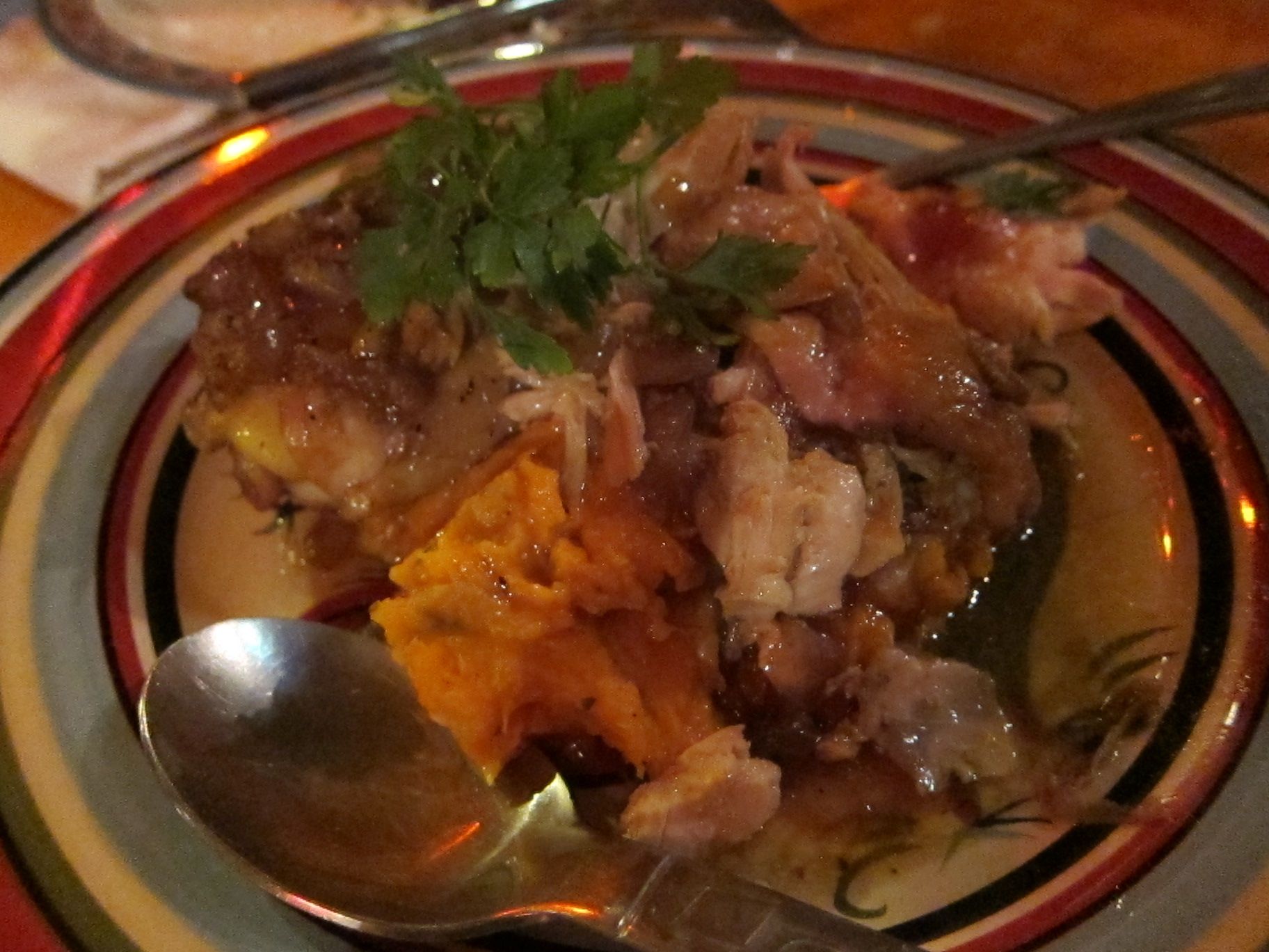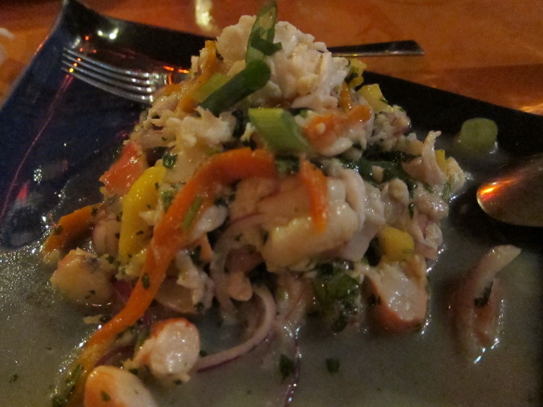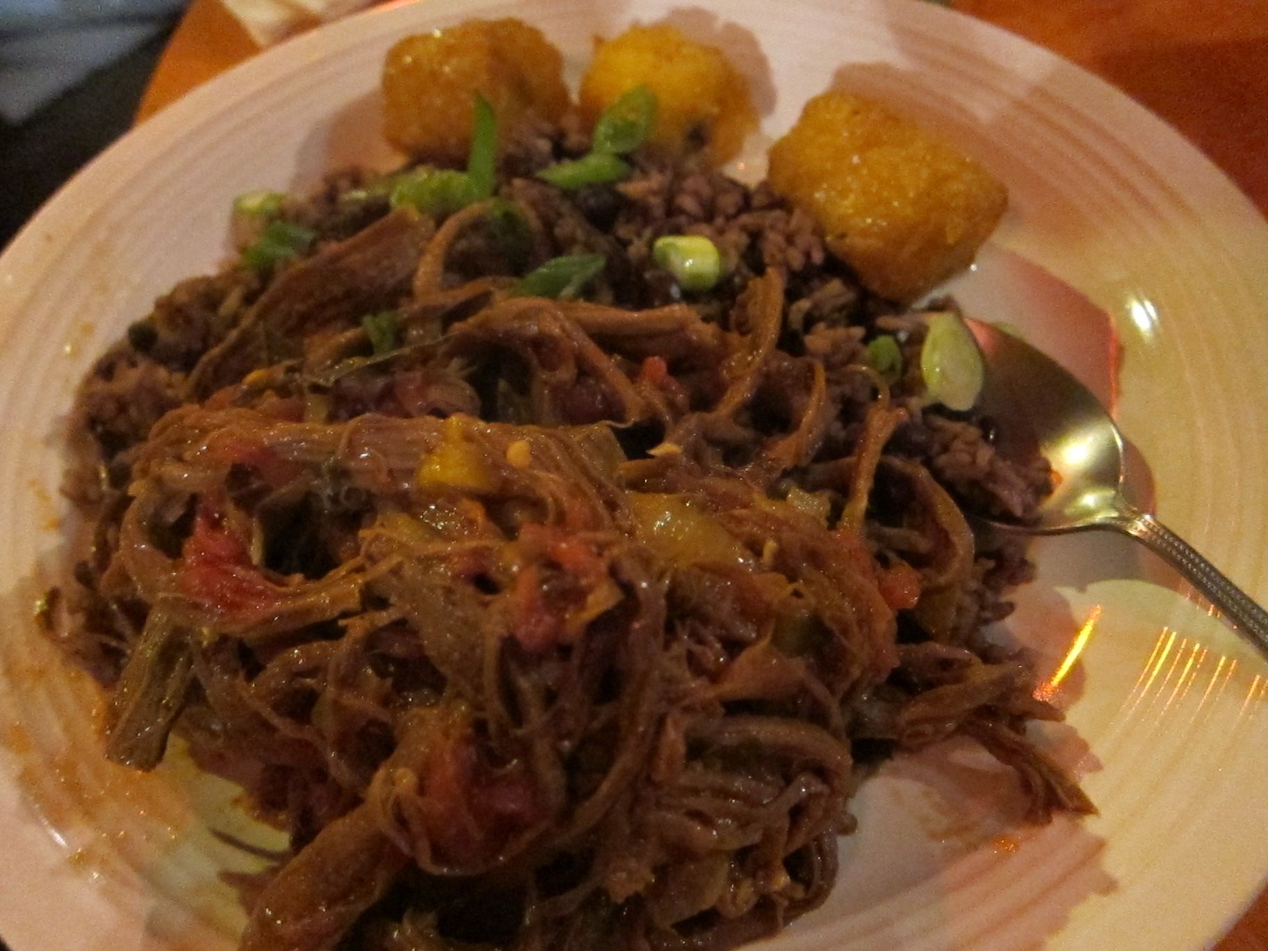Cuisine - Cuban Chan Chan Cafe Cubano, San Francisco [Closed] Chan Chan Cafe Cubano, San Francisco (Jan 2010) 4690 18th St San Francisco, CA 94114Jan 2010[Closed]A La Carte Dinner MenuCeviche Mixto (seabass, tiger prawns marinated in citrus, aji amarillo, herbs), Antogo (ripe plantains over garlic corn puree, crema fresca), Croquetas (ground beef croquettes, shriracha aioli)Hongos (balsamic deglazed mushroom caps, olive oil), Ensaladita (spinach salad, sliced apples, red onion julienne, herbs, goat cheese, honey mustard dressing)Pollo en Hoya (cuban style chicken, encebollado, black beans, rice), Ropa Vieja (tender beef, tomato chunks, herbs, cilantro over rice and beans)Dessert - Chocolate Layered cake dipped in Brandy