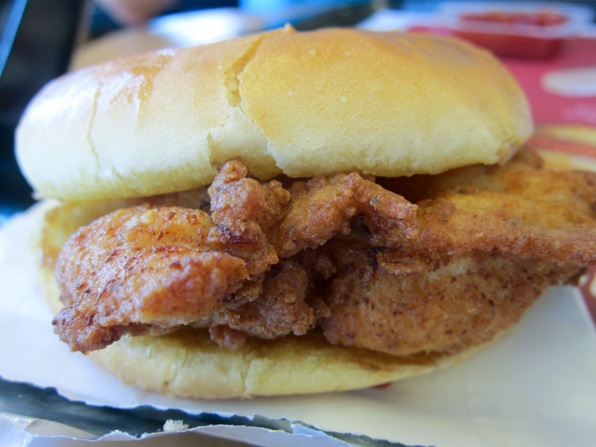 Sandwich Chick Fil-A, Sacramento, California Chick Fil-A, Sacramento, California (July 2011) 4644 Madison Ave, Sacramento, CA 95841July 2011A La Carte MenuIced Tea, Waffle FriesSpicy Chicken Sandwich, Original Chicken Sandwich Share