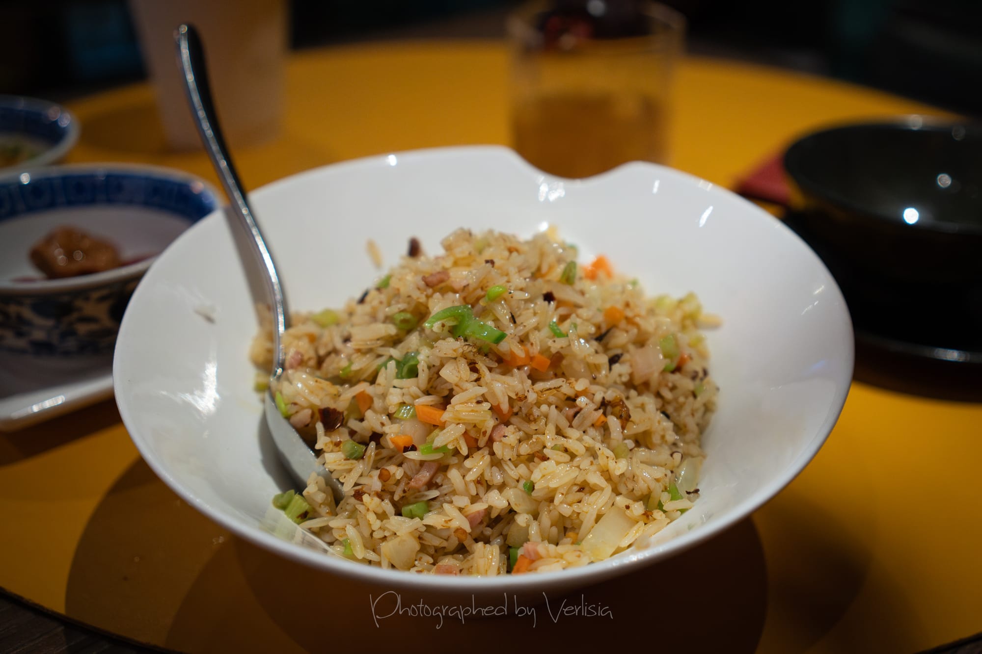 Gluten Free House Special Fried Rice Peppered with Fresh Birdeye Chilli and Duck (Add-on), Gluten Free Spice Infused Broth with Deboned Mandarin Fish (Add-on)