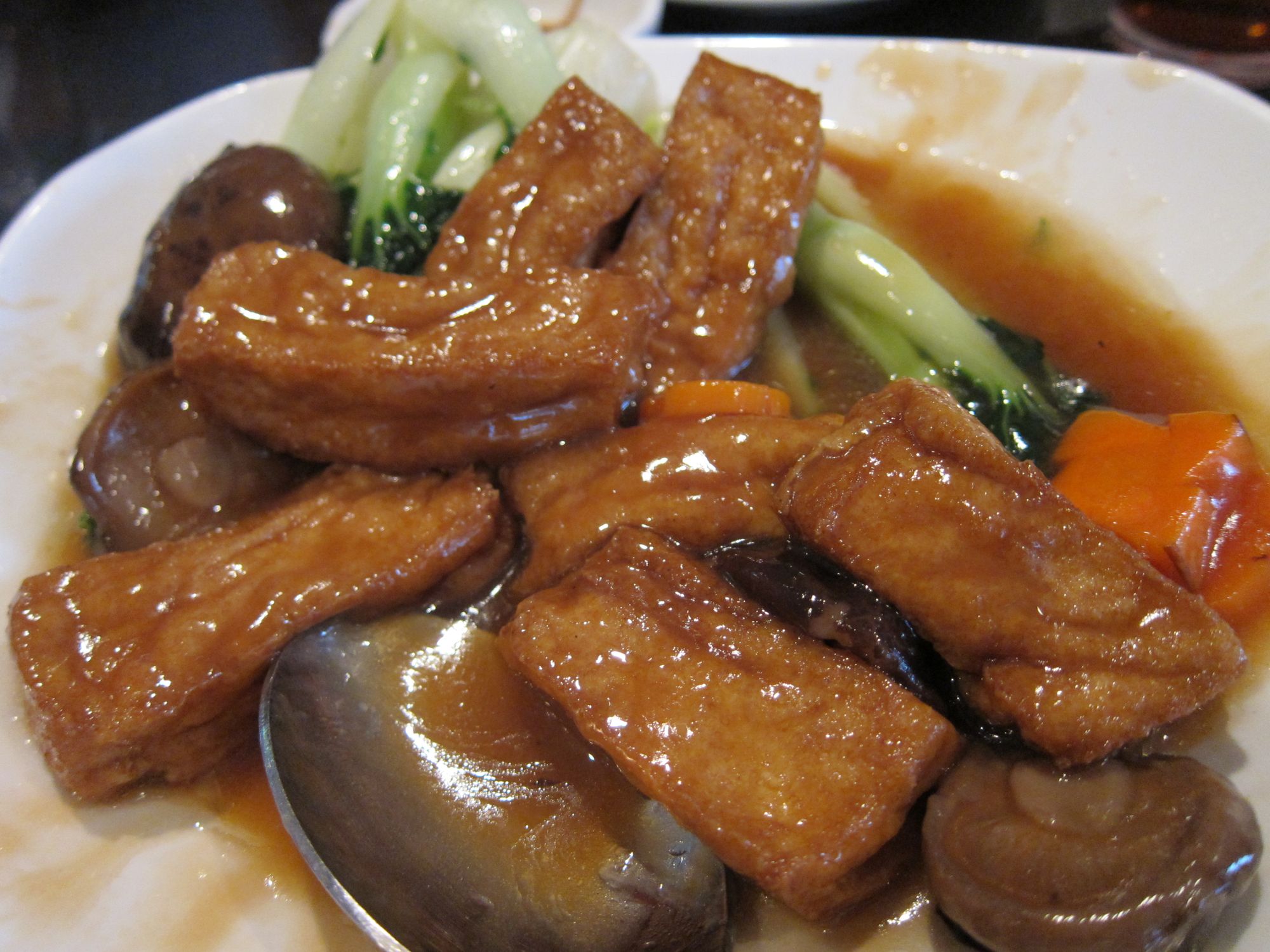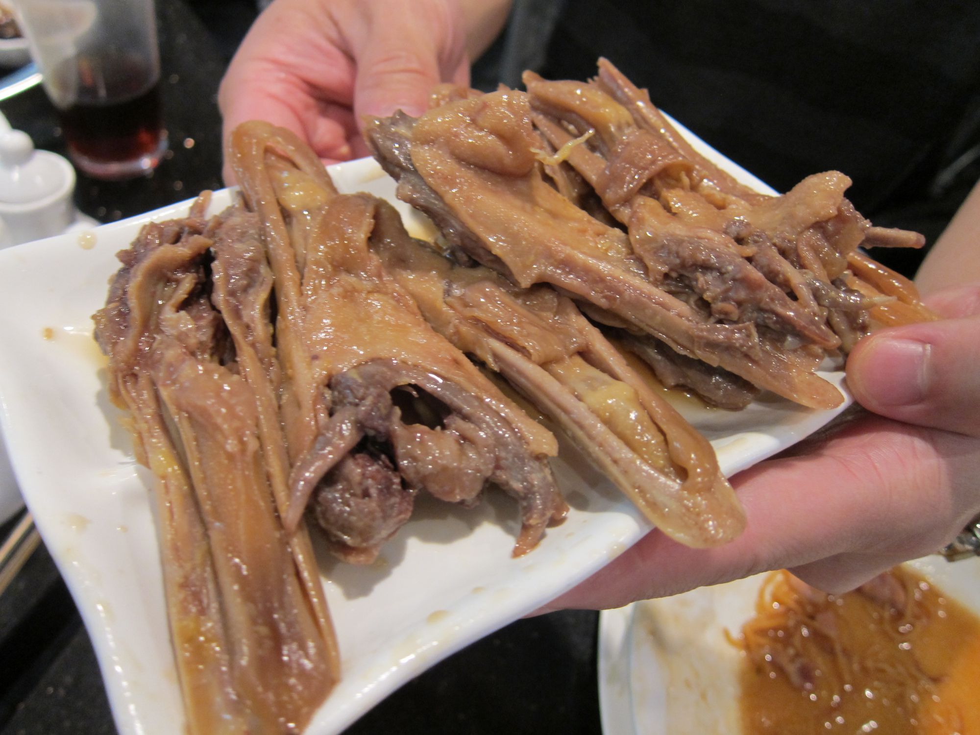 Roasted Duck (Whole), Preserved Duck Egg and Pork Porridge, Assorted Pork Organs PorridgeRice Rolls with BBQ Pork, Xiao Long BaoRoasted Pork Belly, House Special Pan Fried NoodlesBraised Chicken with Shallots, Sauteed Seafood with House Special Chili Sauce, Braised Eggplant and Minced PorkBraised Tofu, Black Mushrooms and Seasonal Vegetable, Sauteed Pea SproutsWalnut Prawns with Mayo Sauce, Deep Fried Spare Rib with Spicy Salt, Duck Jaw