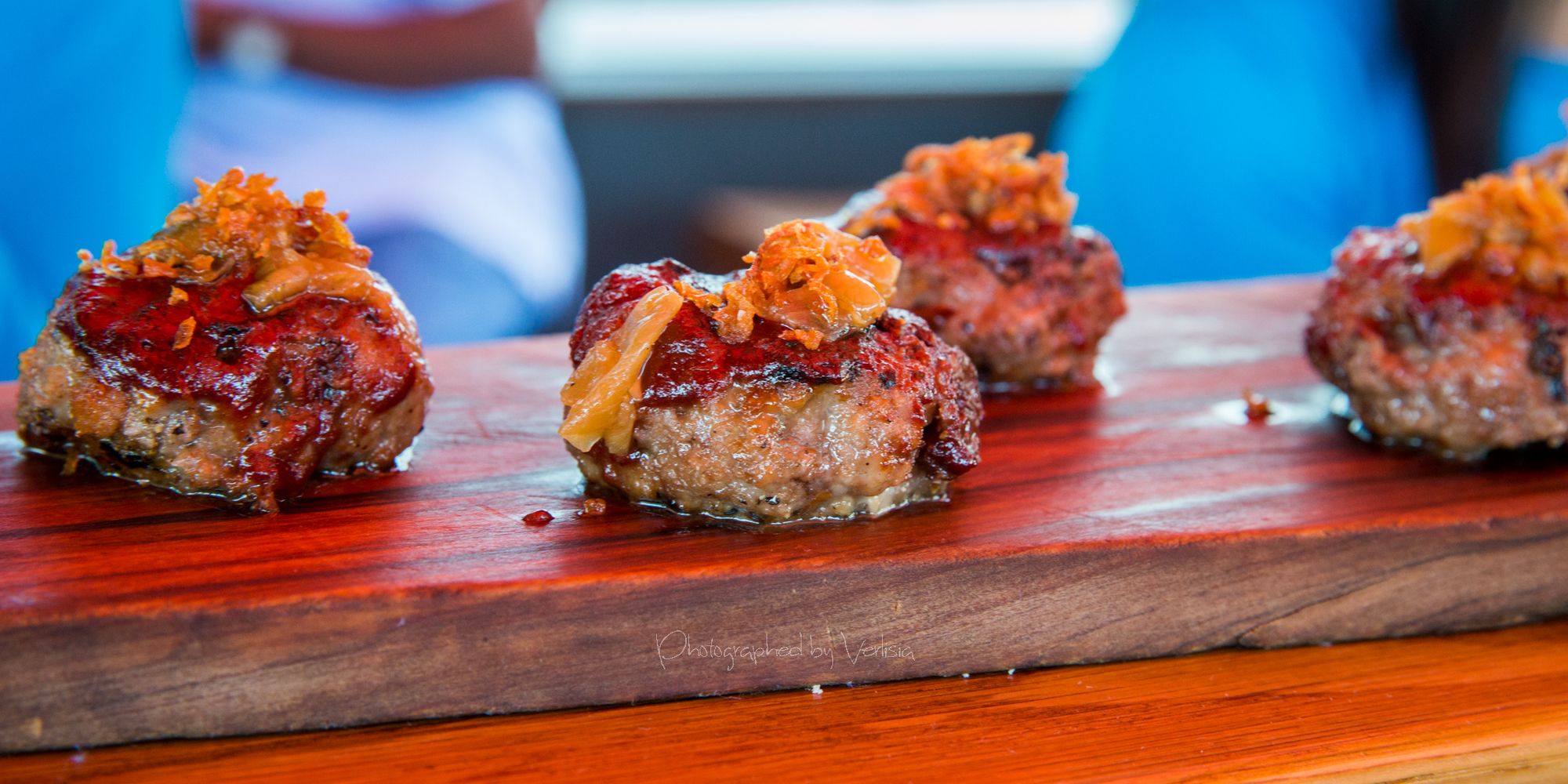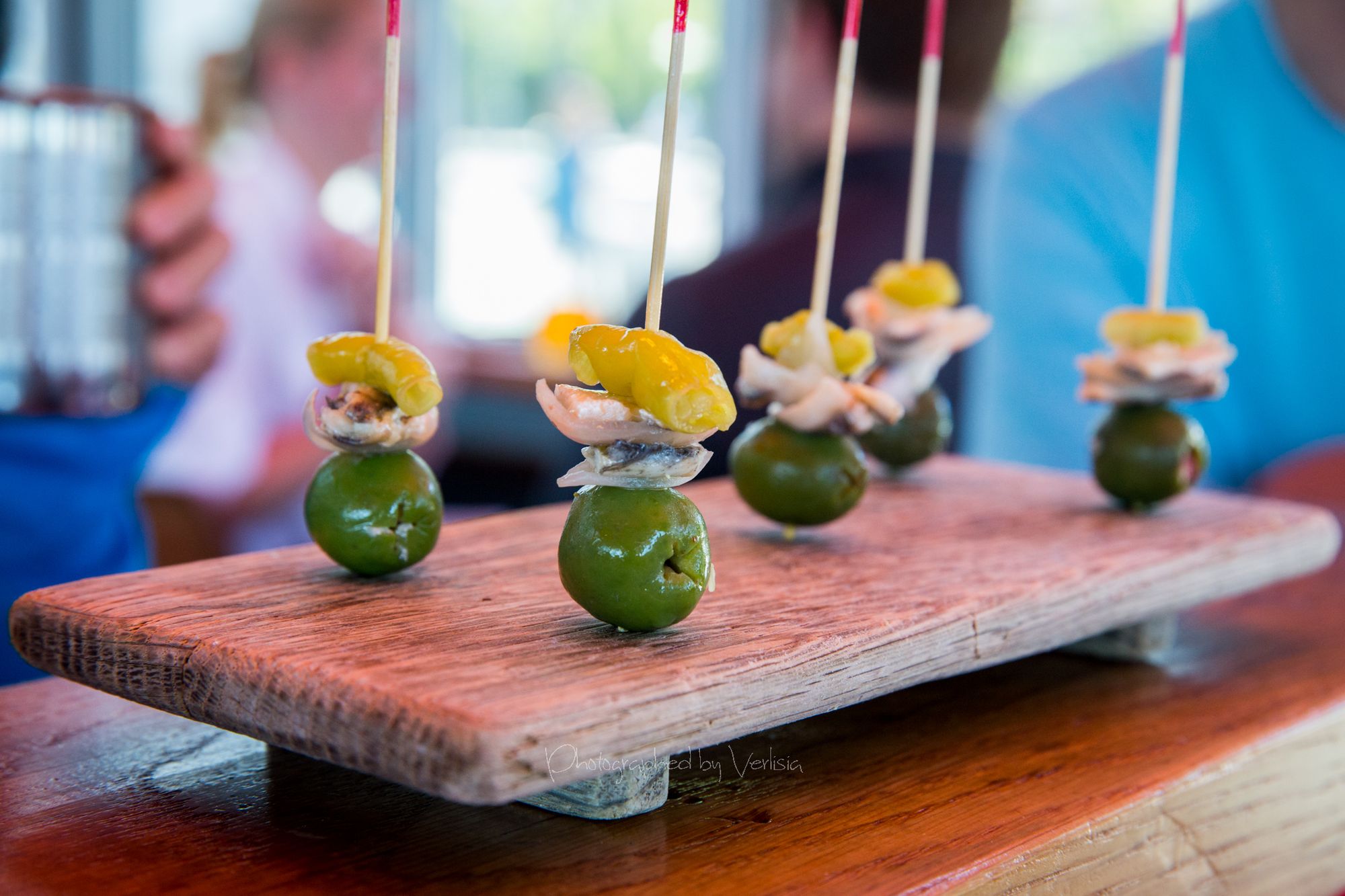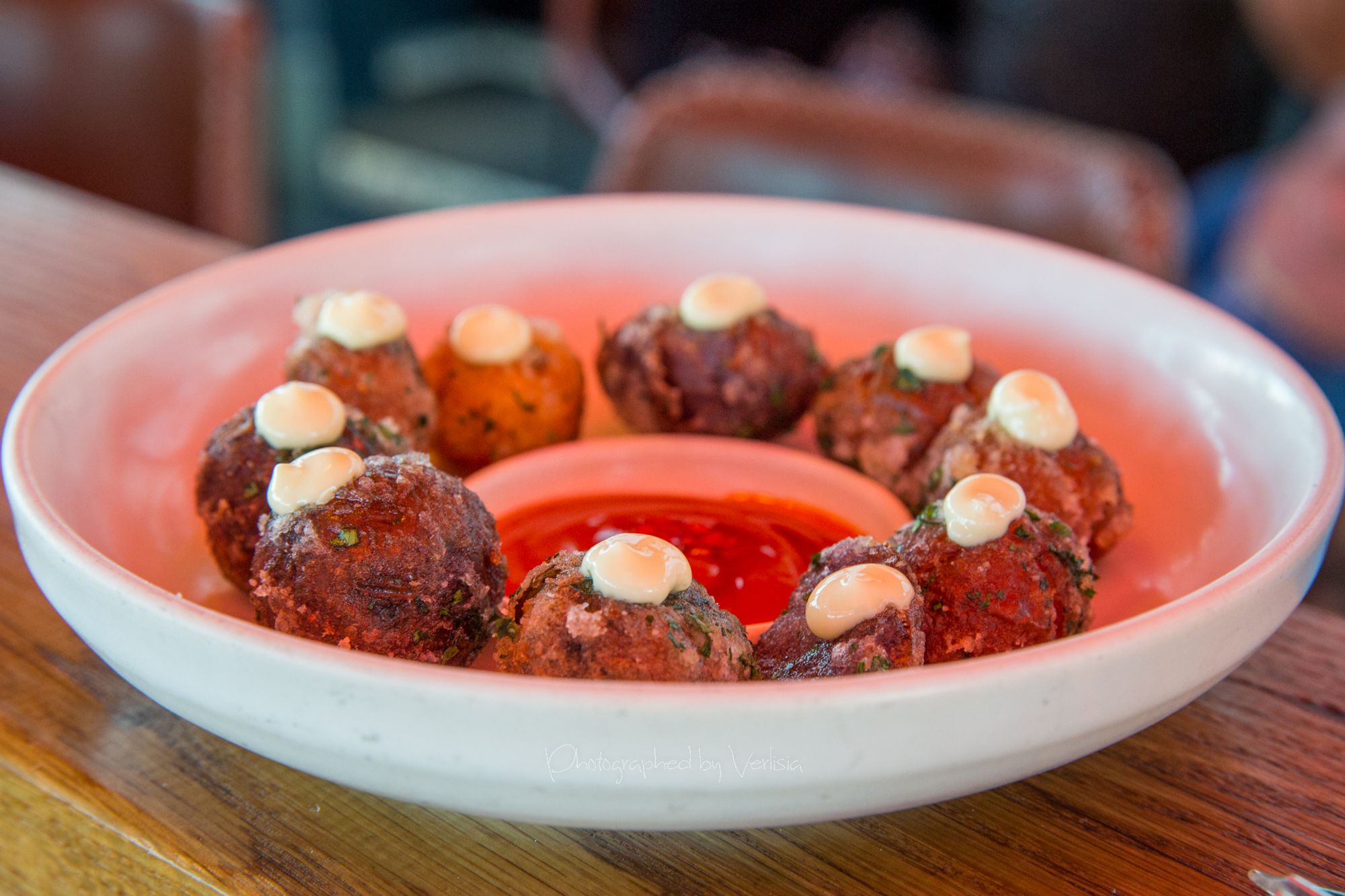 Albondigas a la Feria (Grilled duck and pork meatballs with tart cherry and tempranillo salsa and crispy shallots), House Cured Boquerones (White anchovies, olives, pearl onions, and Guindilla peppers)