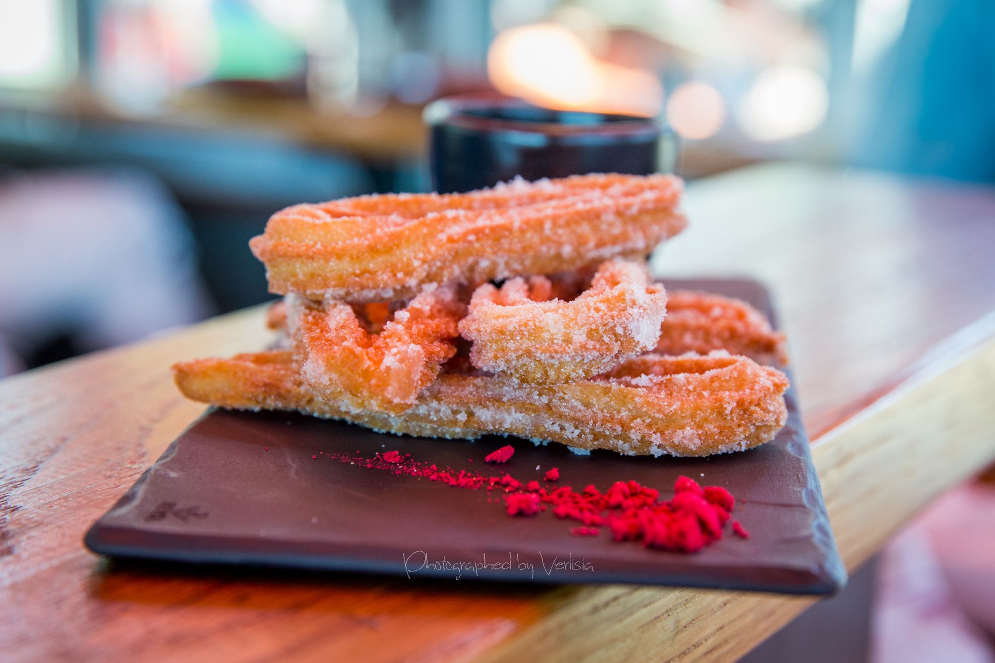 Espresso from Mr. Espresso, Churro 'Fantasia' (Crispy Spanish doughnuts with drinking chocolate and mixed berry powder)