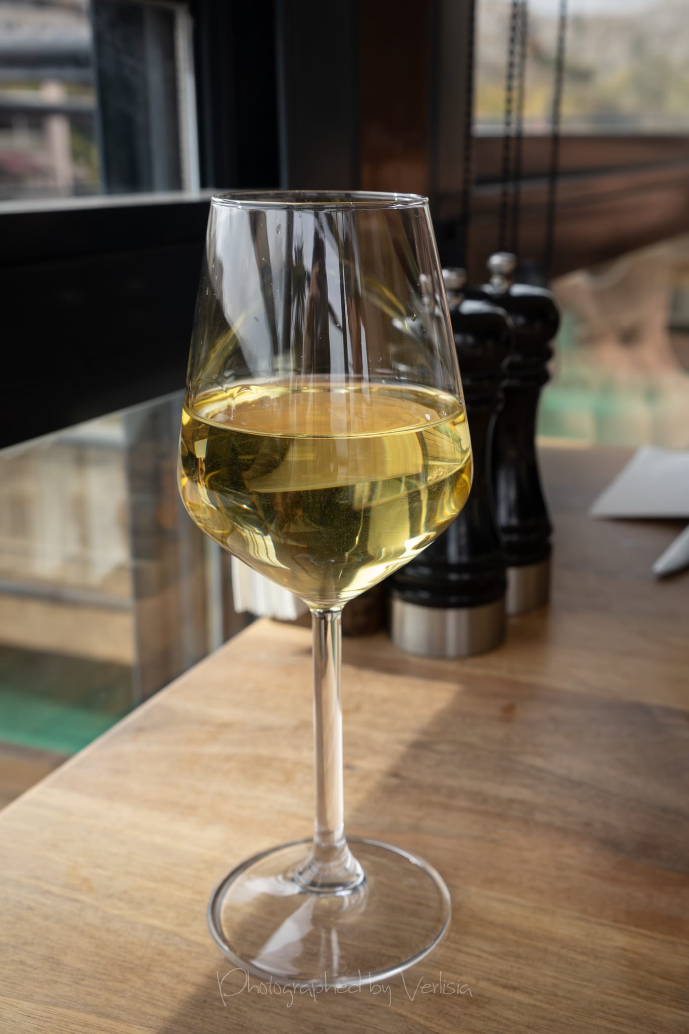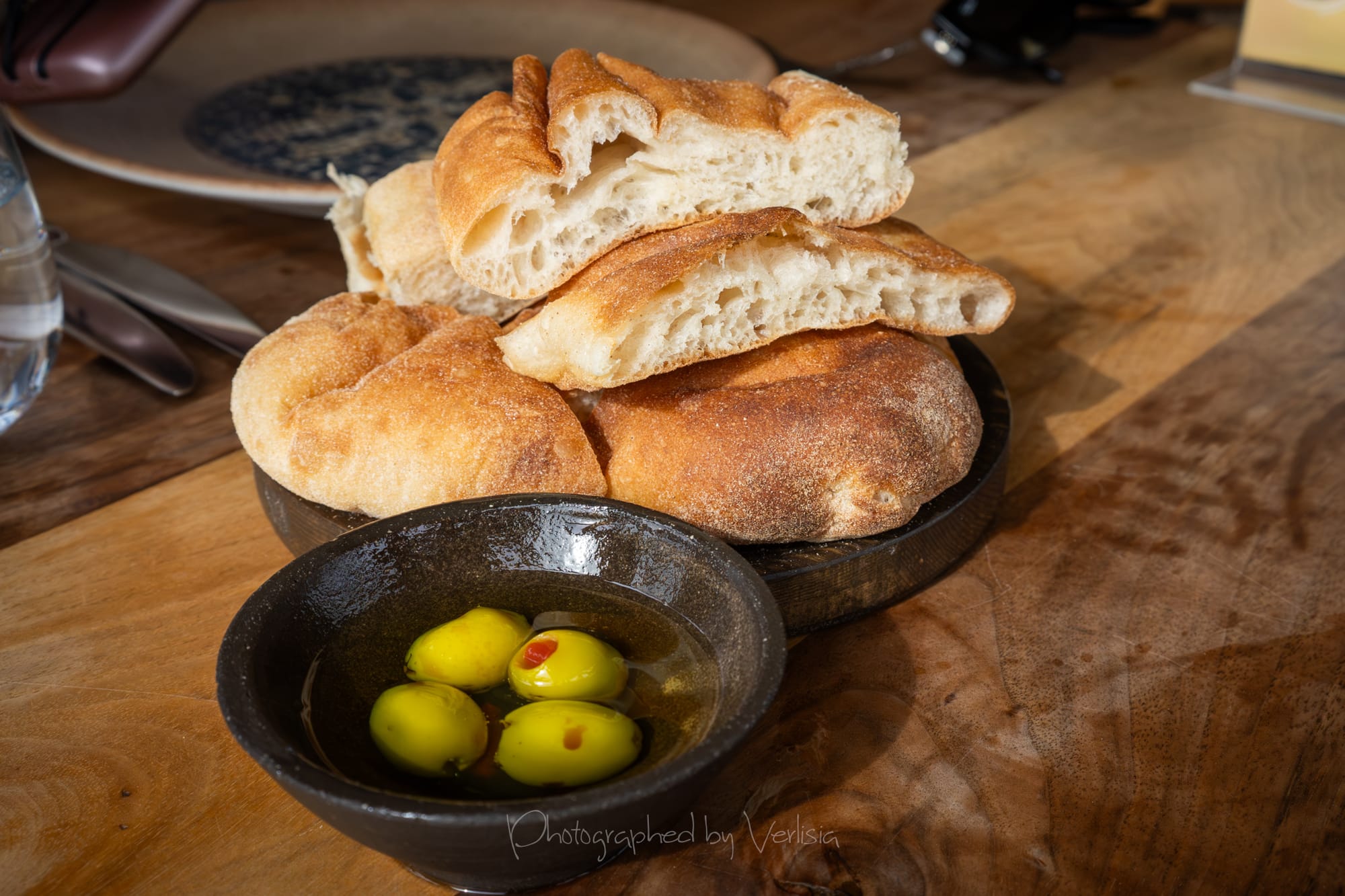 Bread and Olive Oil; Liver with Apple Sauce (with caramelized onions and apple slices); House White Wine