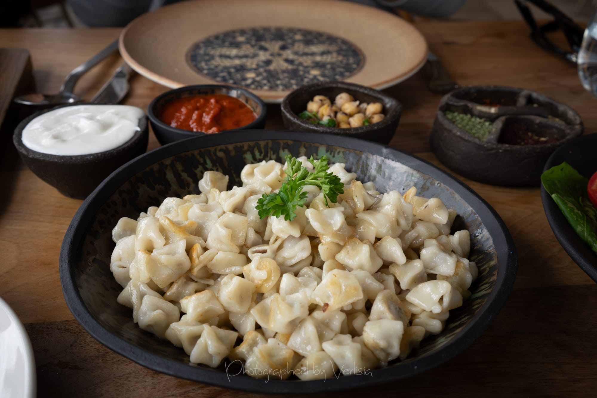 Cappadocia Ravioli (yogurt and tomato sauce with minced meat); Arencini (with risotto, rice, boiled chicken, porcini mushrooms, mushrooms, flour, milk, onion, salt, black pepper, parsley, white wine, mozzarella cheese and cheddar cheese)