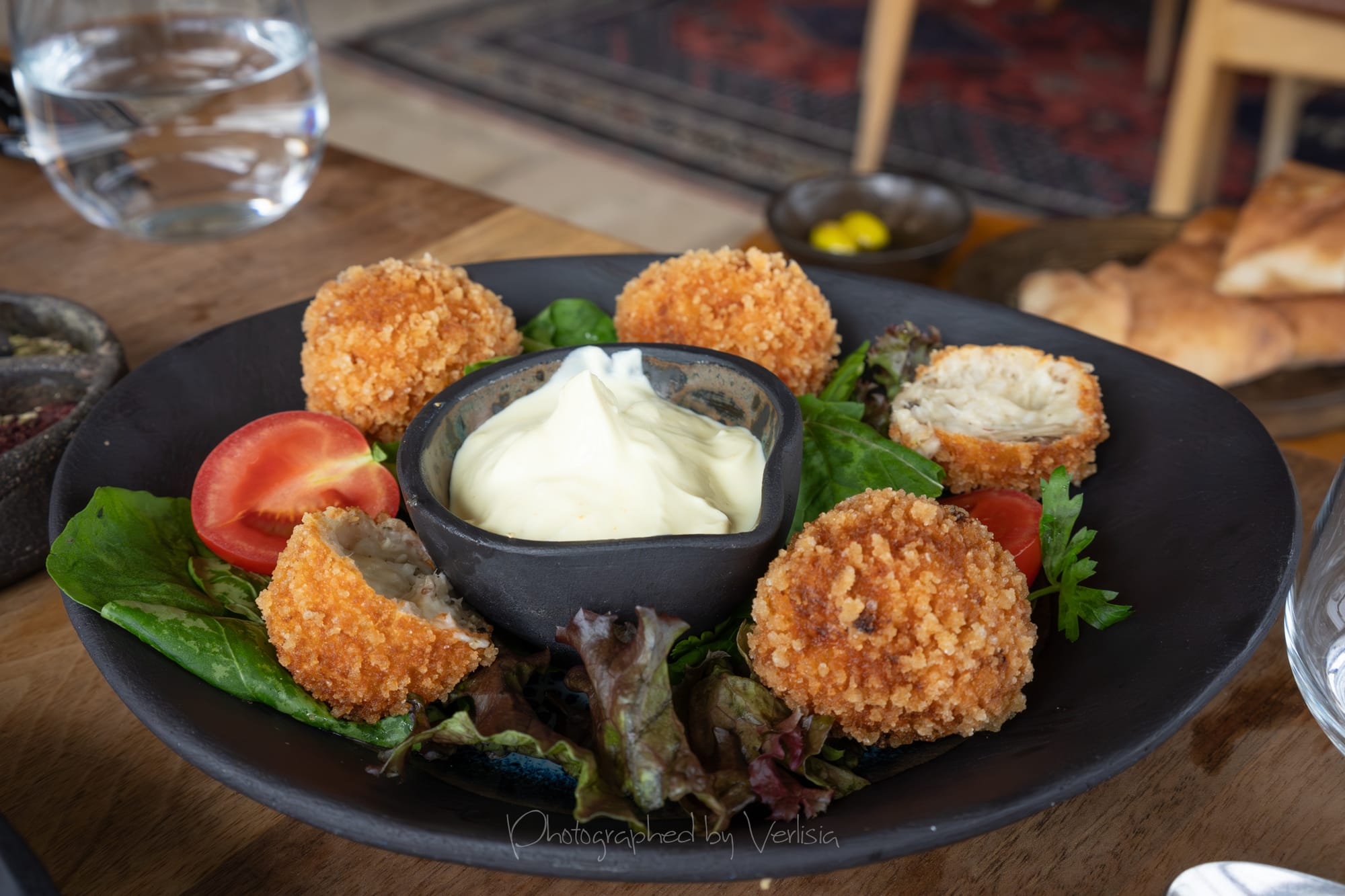 Mushroom Dream (with oyster mushrooms, cultured mushrooms, cheddar cheese, salt, black pepper and bone marrow); Grilled Meat Balls (minced beef, garlic, grilled tomatoes, peppers, onions, toasted bread and potato chips)
