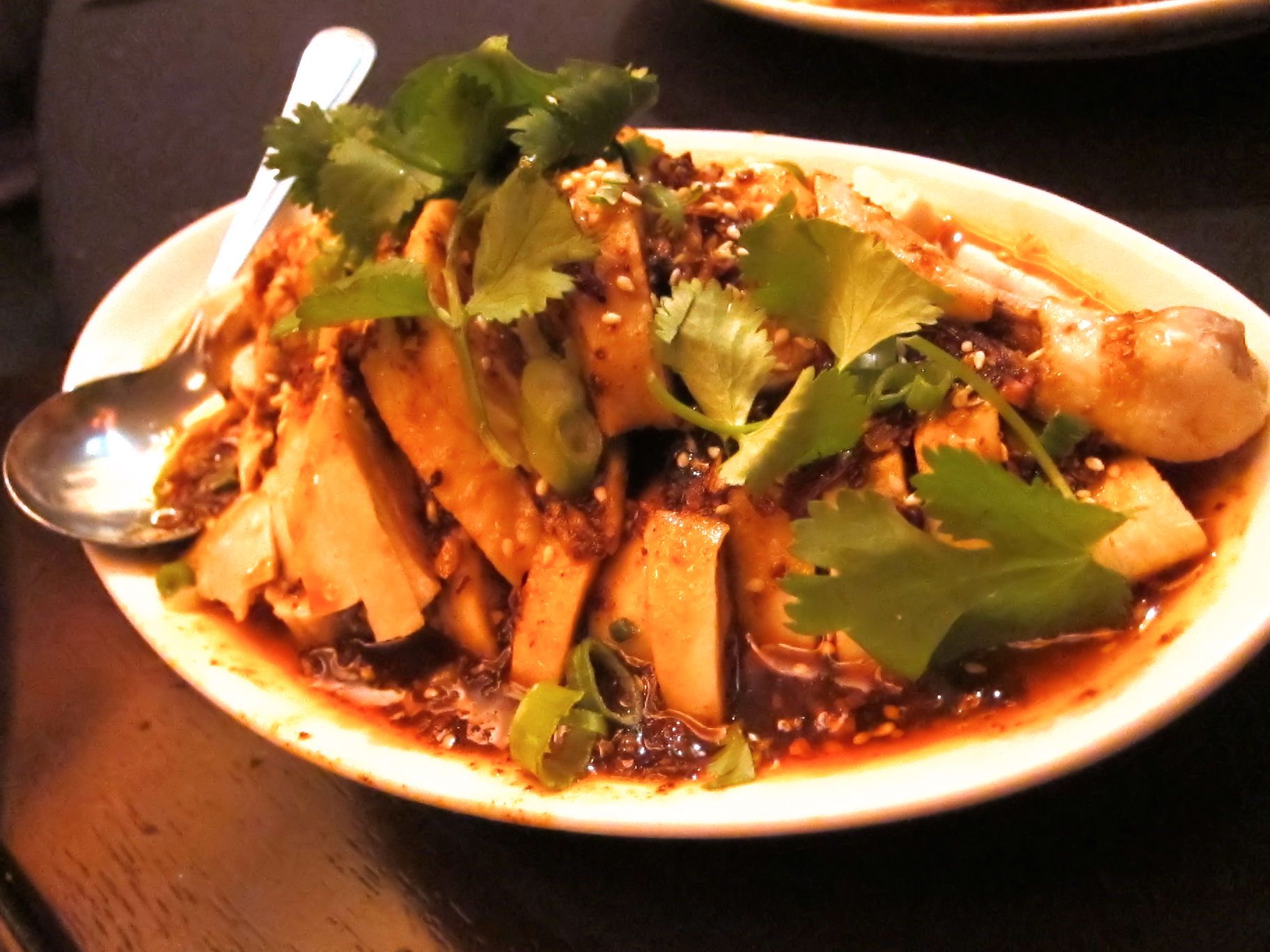 Scallion Pancake, Spicy Beef Combination, Five Spiced Roasted Beef – thin slicedSliced Chicken in red chili oil, Sichuan Spicy & Sour Cold Rice Jello, Spicy Pork DumplingsXingjiang Lamb, String Bean, MaPo TofuTea Smoked Duck, Cabbages Stir Fried with Chilies, Chinese Salty String Beans (chopped) with minced porkSautéed Vermicelli with Spicy Minced Pork, Spicy Boiled Fish Fillets, Spicy Boiled BeefHunan Preserved Pork – with cabbages, scallions and chilie, Braised Dongpo Pork knuckle in Special House Ginger Sauce, Desset Soup