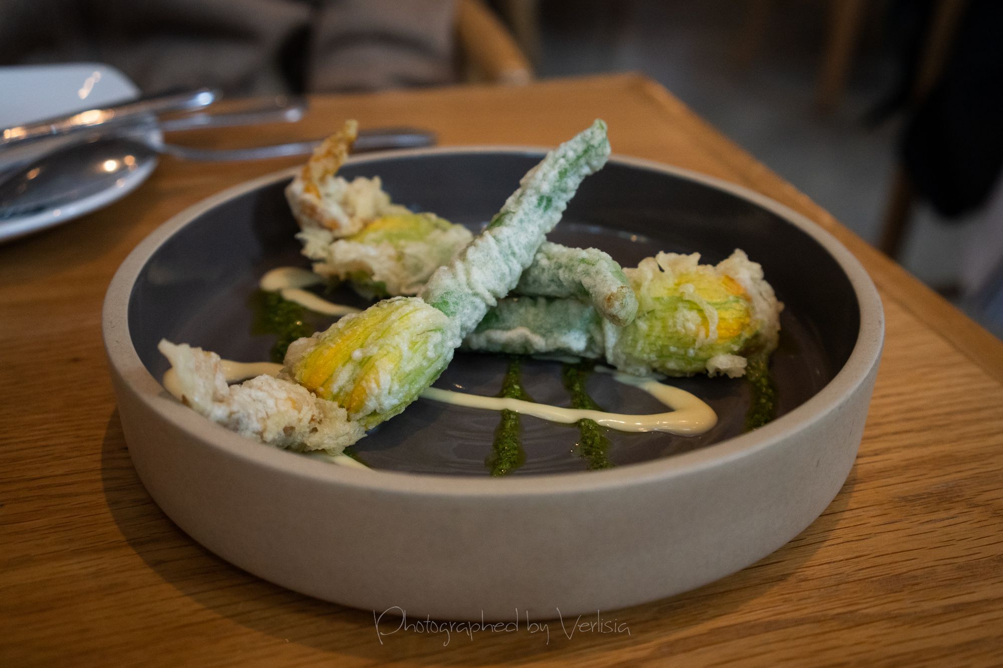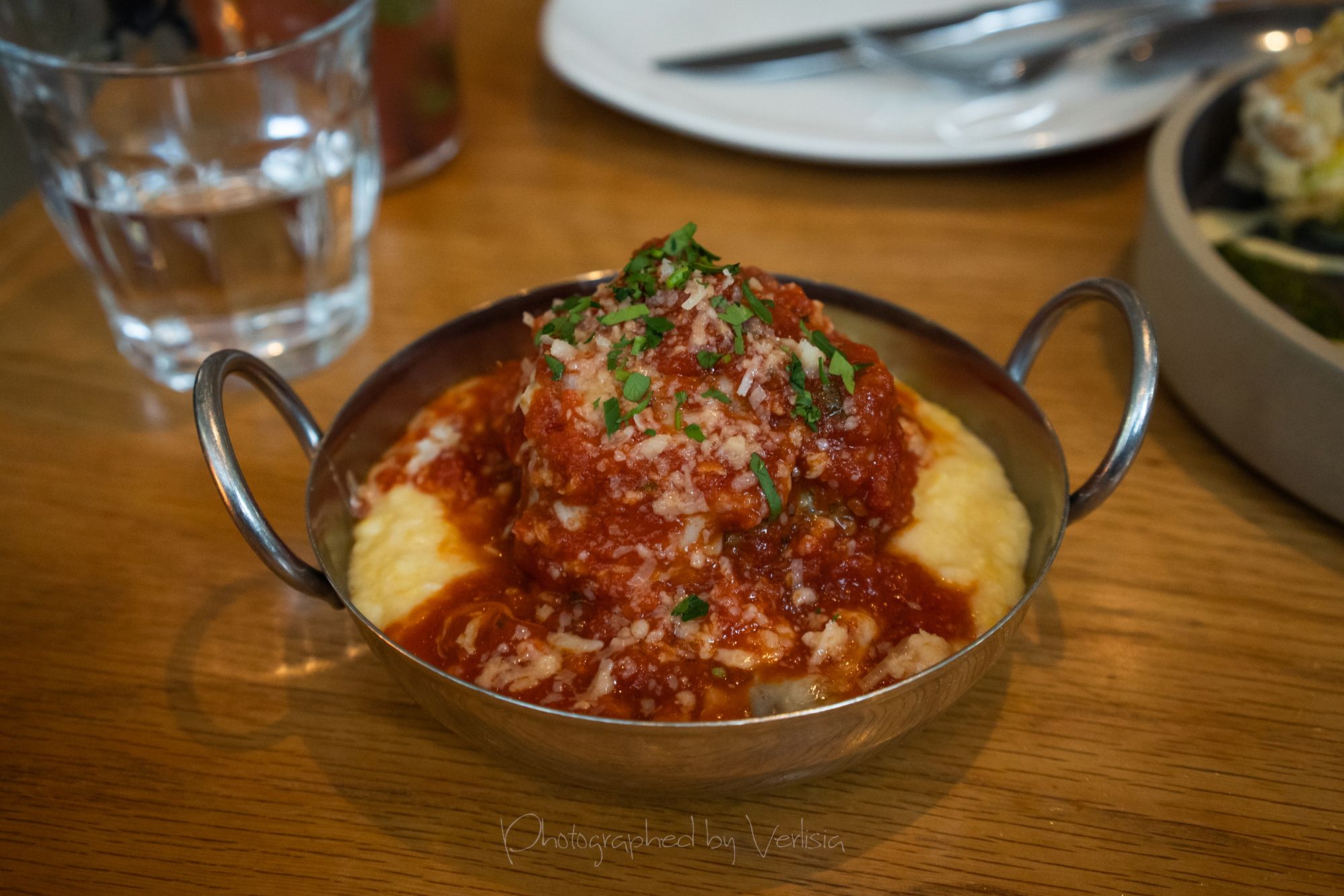 Albana (Orange Wine) (Tre Monti, Romagna, Italy), Aquazul (strawberry + mint + lime + ginger + soda)Giant Meatball (mascarpone polenta, mozzarella, marinara), Fried Squash Blossom (lemon ricotta, citrus aioli, herb vinaigrette)Potato Gnoochi + Lamb Sausage (snap pea, arugula cream, crouton, arugula sprout), Mushroom + Goat Cheese Pizza (mozzarella, caramelized onion, truffle oil)Chocolate Budino (salted caramel, vanilla whip, chocolate crumble coca nib tuile), Espresso Martini