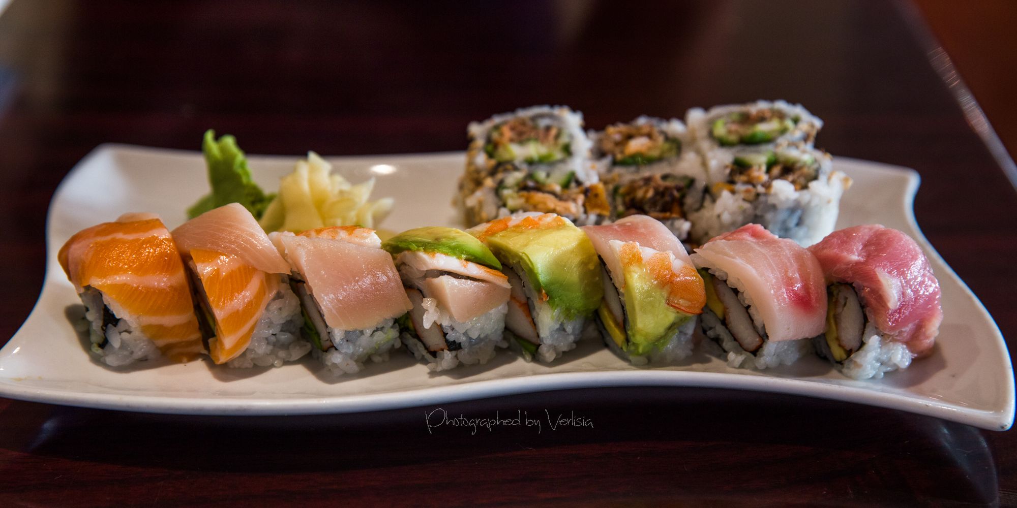 Rainbow Roll and Salmon Skin Roll, Ginger Pork Donburi, Udon