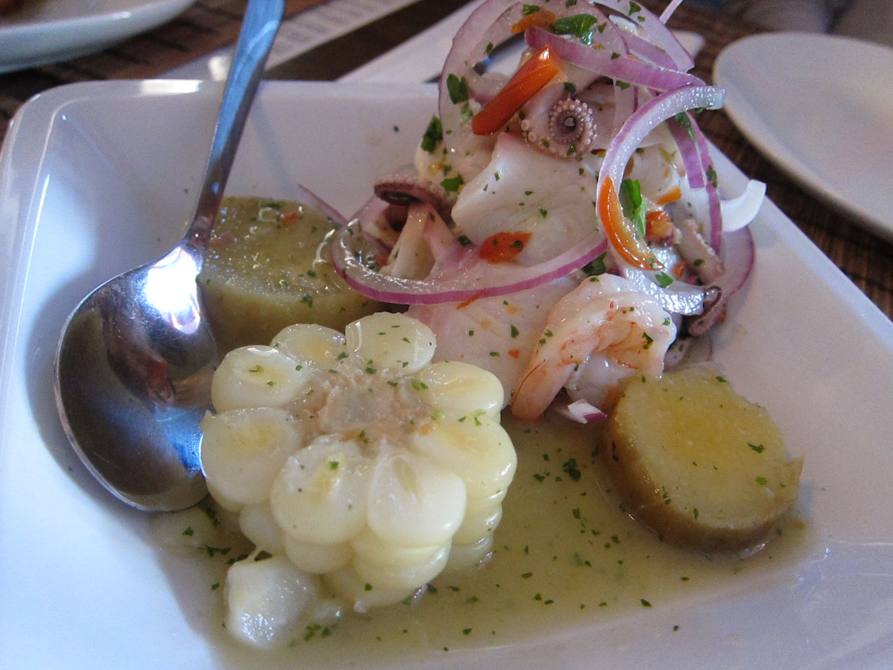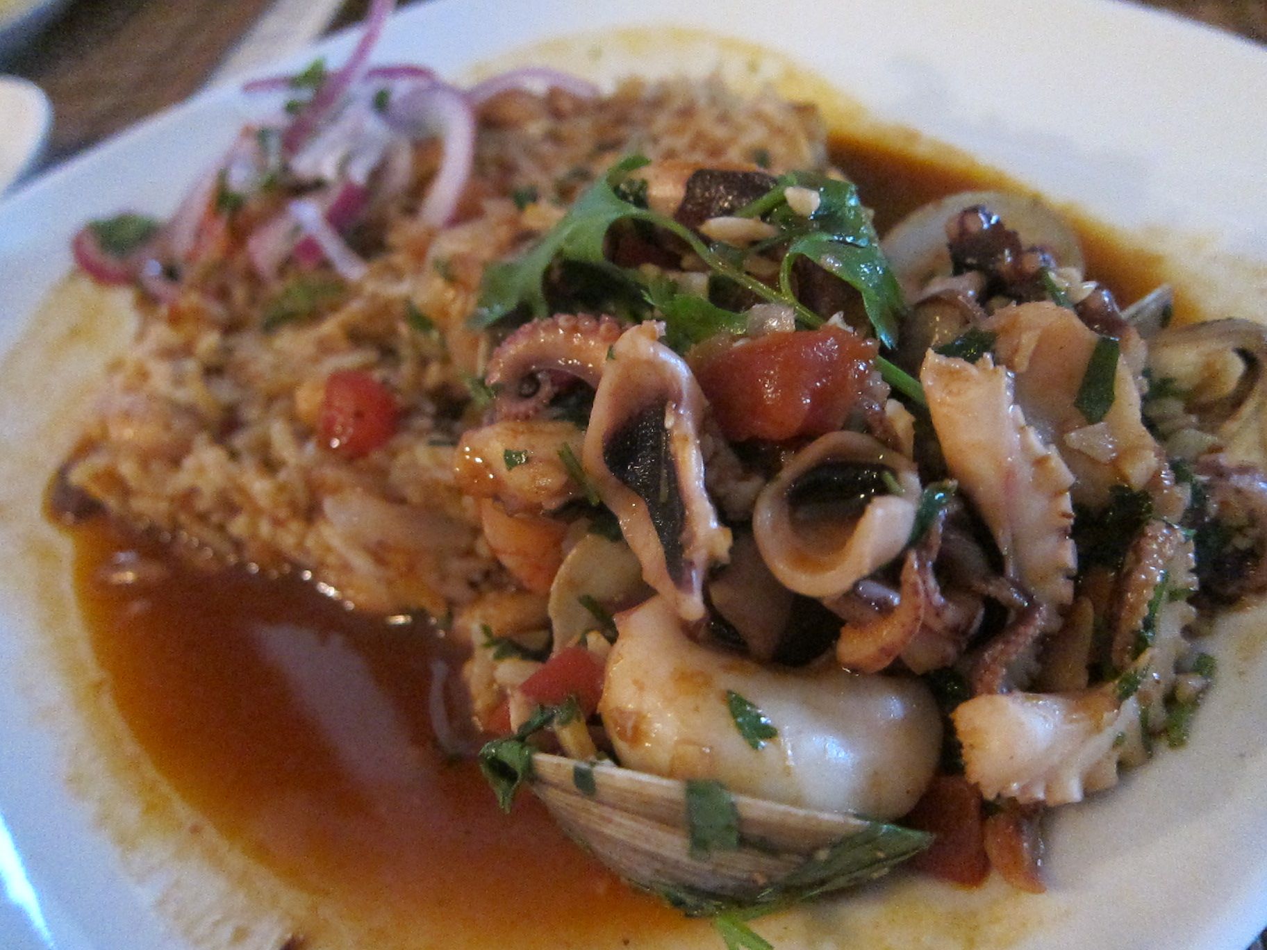 Cuisine - Peruvian El Hueco, Redwood City, California [Closed] El Hueco, Redwood City, California (July 2010) 593 Woodside Rd Ste E, Redwood City, CA 94061July 2010[Closed]A La Carte Dinner MenuRoasted Peanuts, Sangria, Ceviche de CamaronCausas, Aji de GallinaArroz Chaufa de Mariscos, Pescado a lo Macho, ParihuelaSeco de Carne, Lomo Saltado, Pisco con Pasas Ice Cream Share
