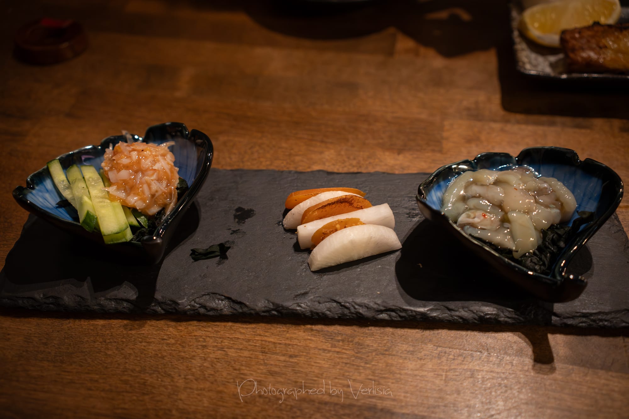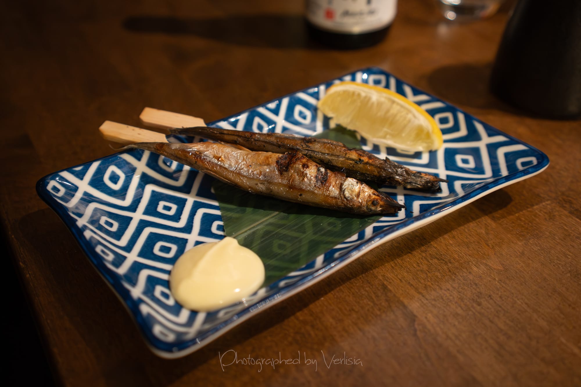 Salmon Skin; Yakitori Shishamo; Grilled Hokke (mackerel)