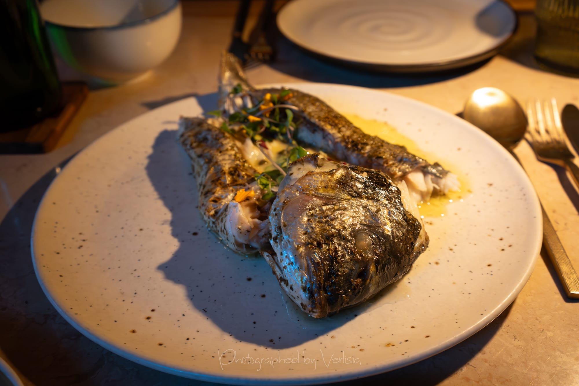 Sparkling Water; Cocktail - Paper Plane; Amuse Bouche - Creme Fraiche with Caviar