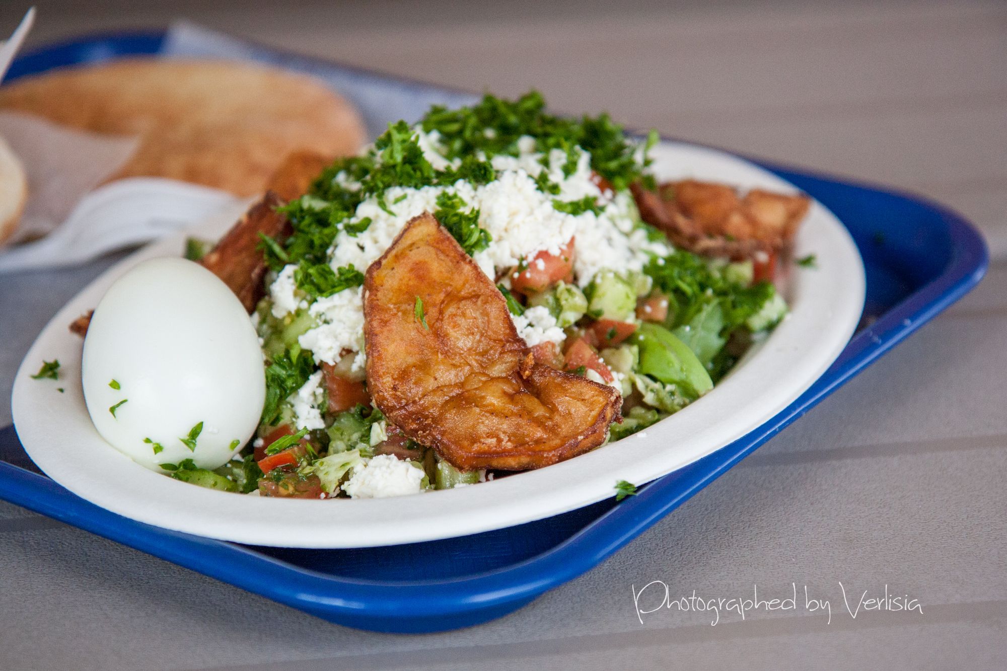 Cuisine - Mediterranean Falafel Stop, Sunnyvale, California Falafel Stop, Sunnyvale, California (Oct 2012) 1325 Sunnyvale Saratoga Rd, Sunnyvale, CA 94087Oct 2012A La Carte MenuGreek Salad (Chopped cucumber, tomato, onion, parsley, feta cheese, organic eggplants nuggets, extra virgin olive oil, lemon juice + Hard-boiled Egg & Falafel Ball), Sabich (Organic eggplant nuggets, hard-boiled egg, hummus, mixed vegetables, homemade pickles, sauerkraut & tahini sauce) Share