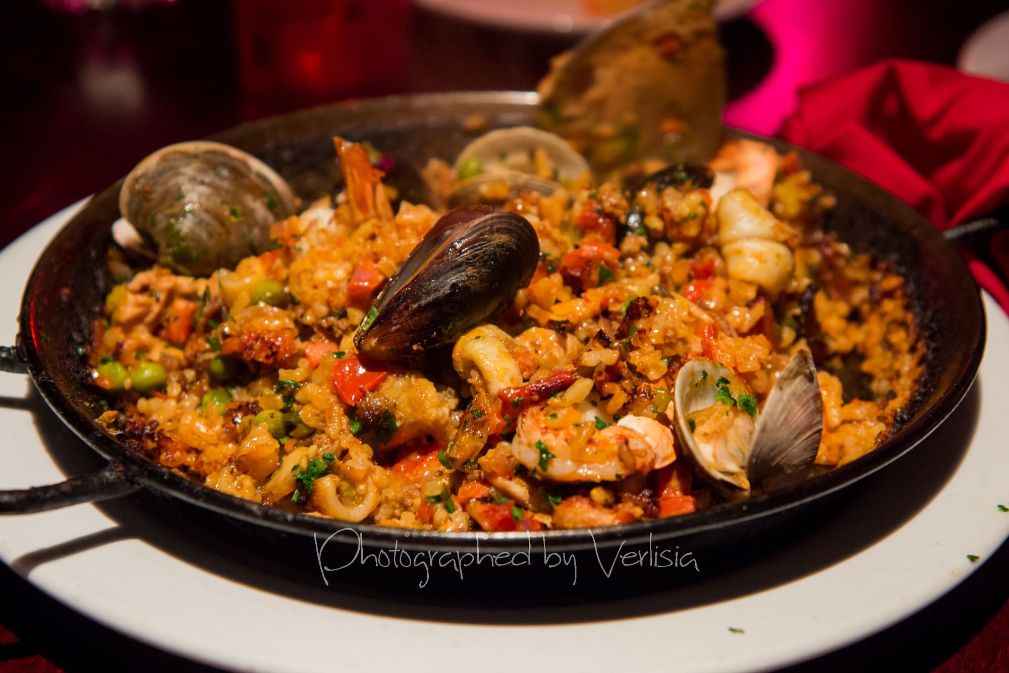 Bread with Almond Butter, Albondigas (Meatballs in sherry tomato sauce, parmesan), Stuffed Dates (bacon-wrapped, smoked almond, red wine reduction, blue cheese) Tuna Tartare (marinated ahi tuna, avocado, sesame dressing, taro chips), Firefly Fries (parmesan, herbs, aioli), Pulpo Asado (grilled octopus, potato, tomato, papriki-lemon vinaigrette) Steak and Mushroom Skewers (grilled filet, roast garlic cream, red wine reduction), Firefly Fish Sticks (filets of cod, Japanese breadcrumbs, spicy tartar sauce) Mixed Paella (shrimp, mussels, clams, calamari, chicken, chorizo, veggies), Sorbet (berry salad, grand marnier)