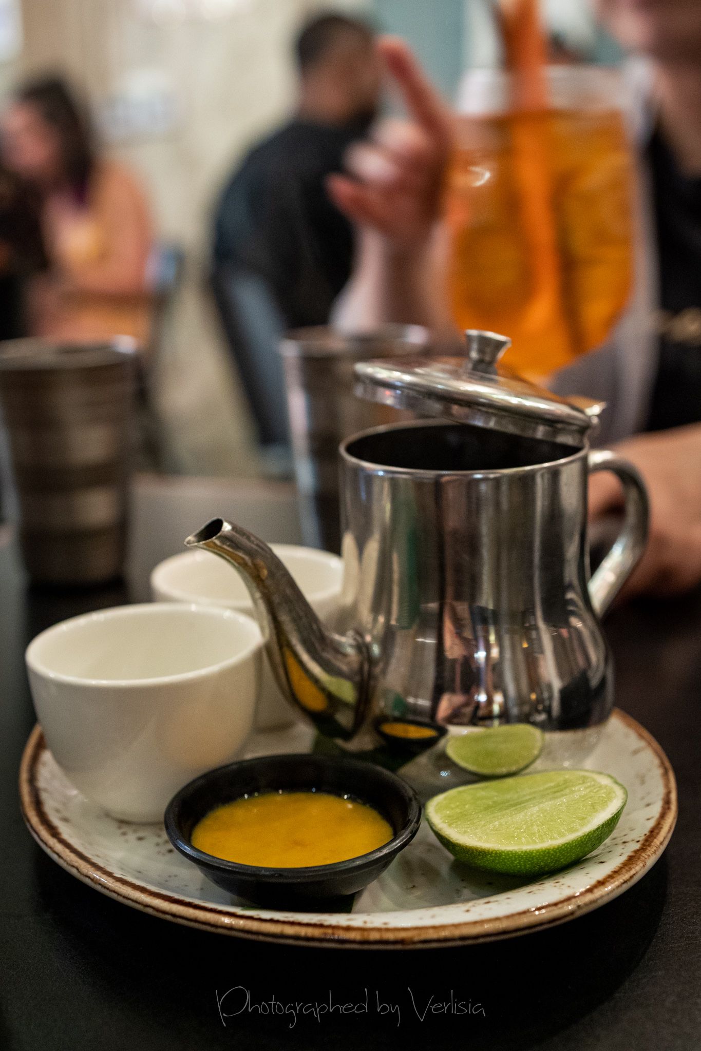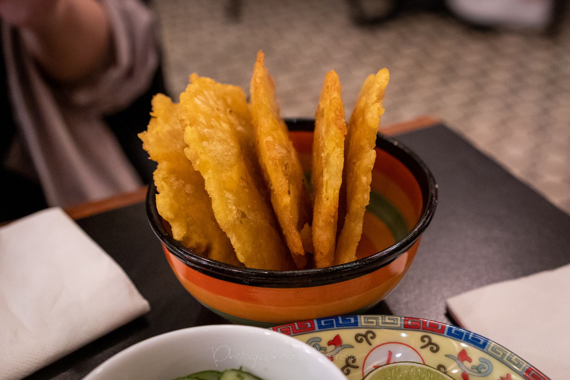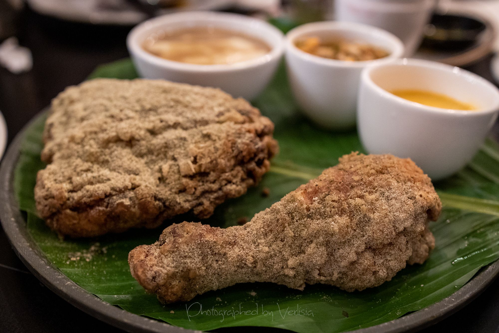 Roasted Cobia + Curry Sauce + Grilled VeggiesStew made of tripe and pork belly trotter and pork sausage served with Sexy Concolon (Crispy Rice Cake), Patacones