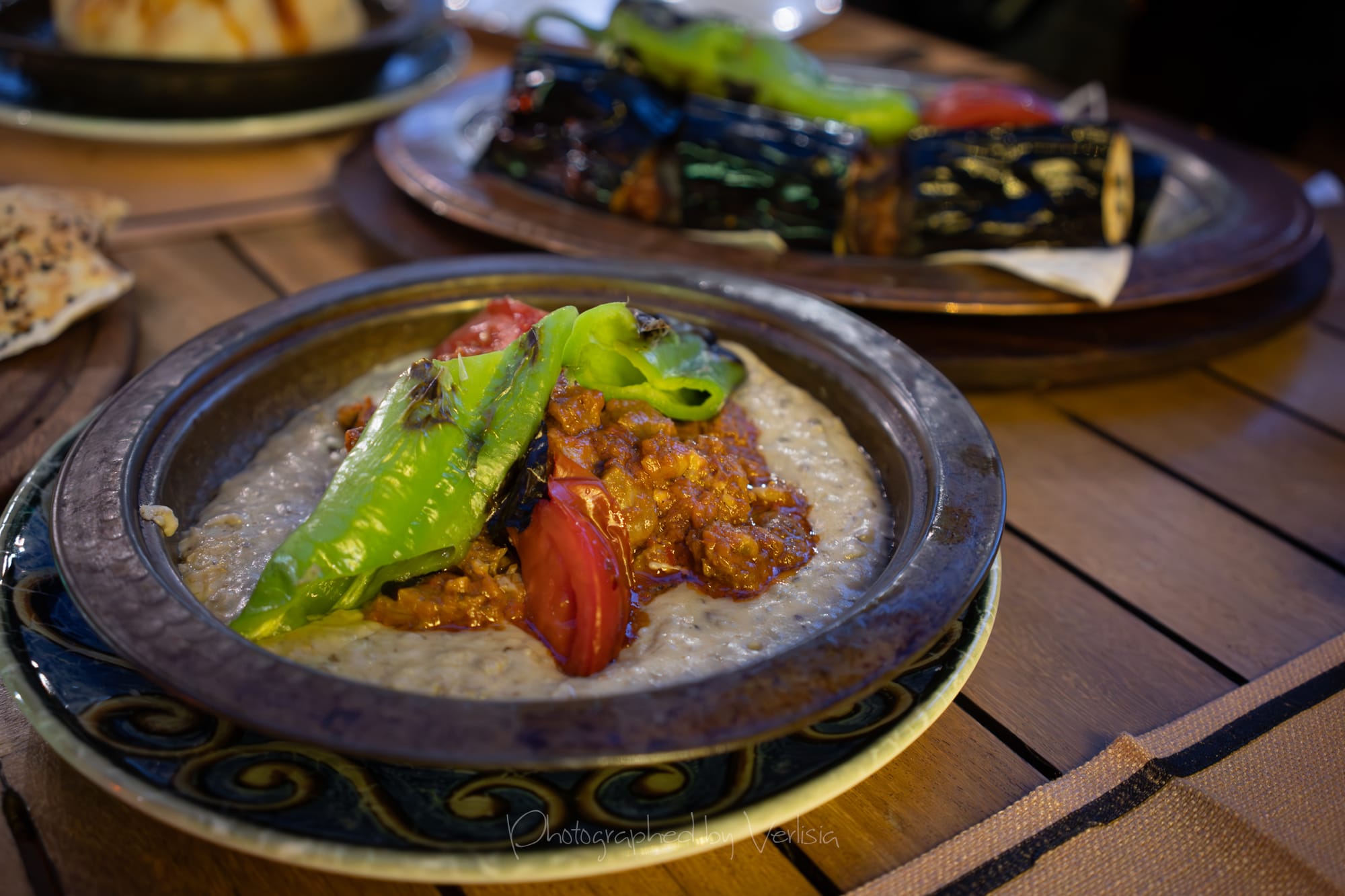 Mojito Classic; Hünkar Favorite (Grilled sliced fillet of beef on a roast puree eggplant bed topped with kasha cheese and special chefs tomato sauce); Eggplant Kebab (Hand-chopped beef and lamb marinated with olive oil and spices, grilled on a skewer with eggplant slices, served with bulgur rice grilled tomatoes, green pepper and onions)