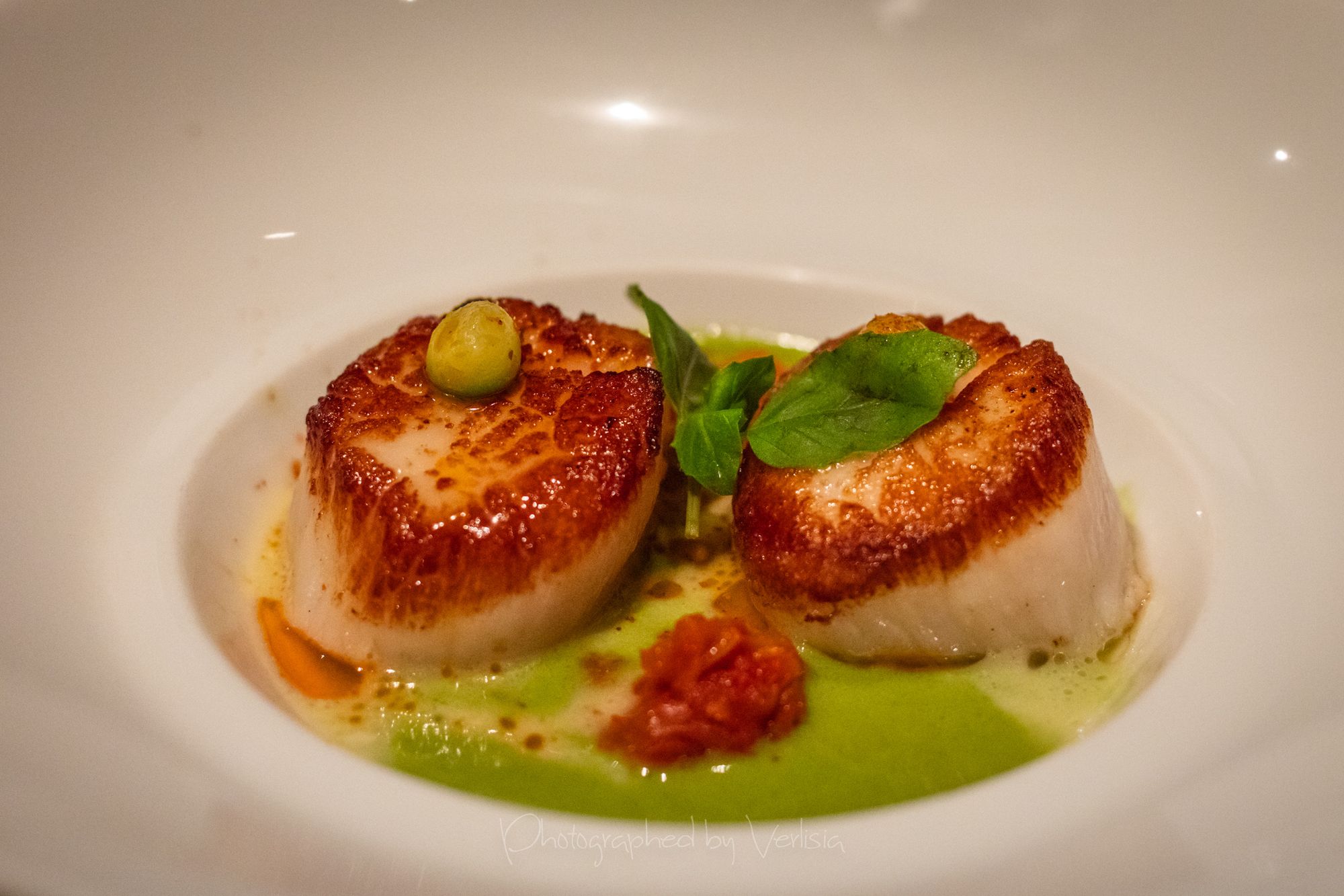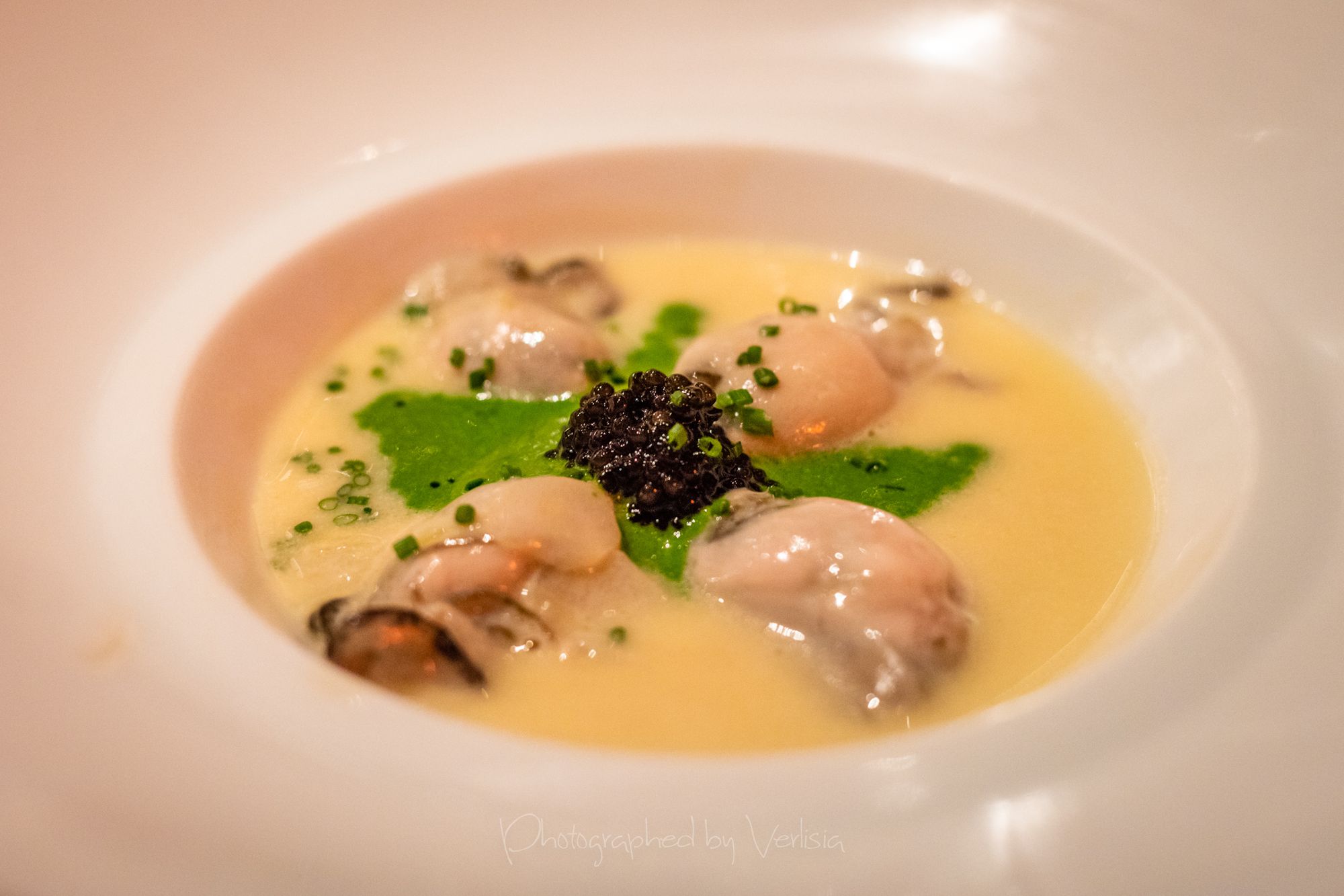 Glazed Oysters with Osetra Caviar, Roasted Sea Scallops with Tomato Fondue