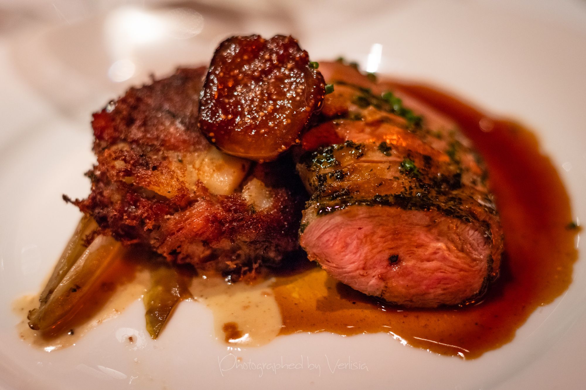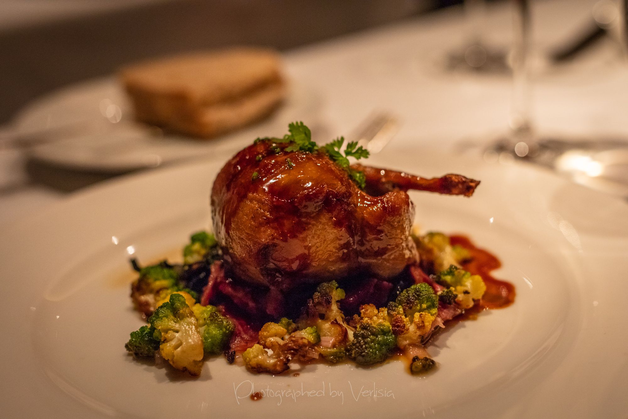 Roasted Quail Stuffed with Mushrooms, Lemon Pepper Duck Breast with Duck Hash