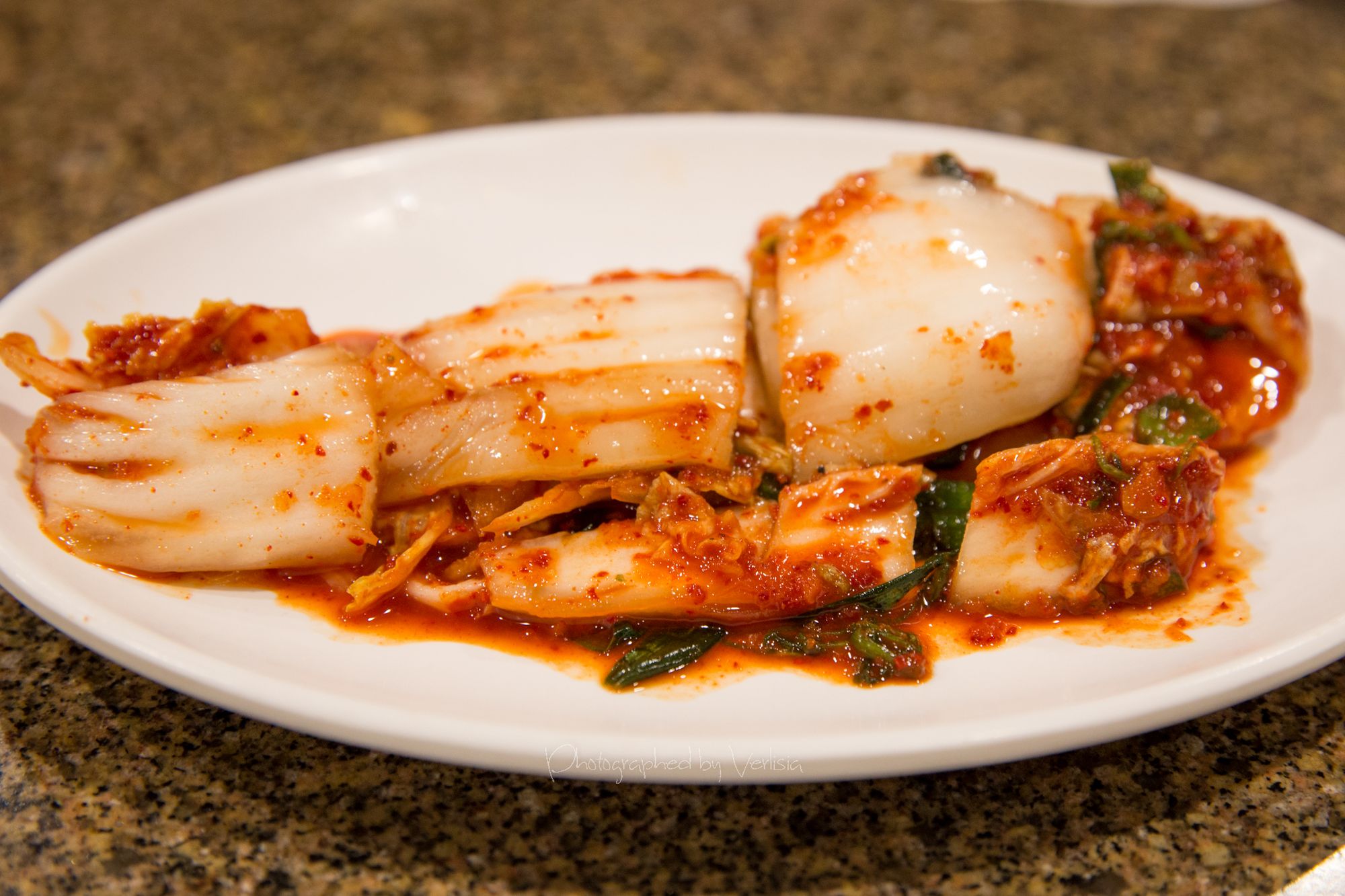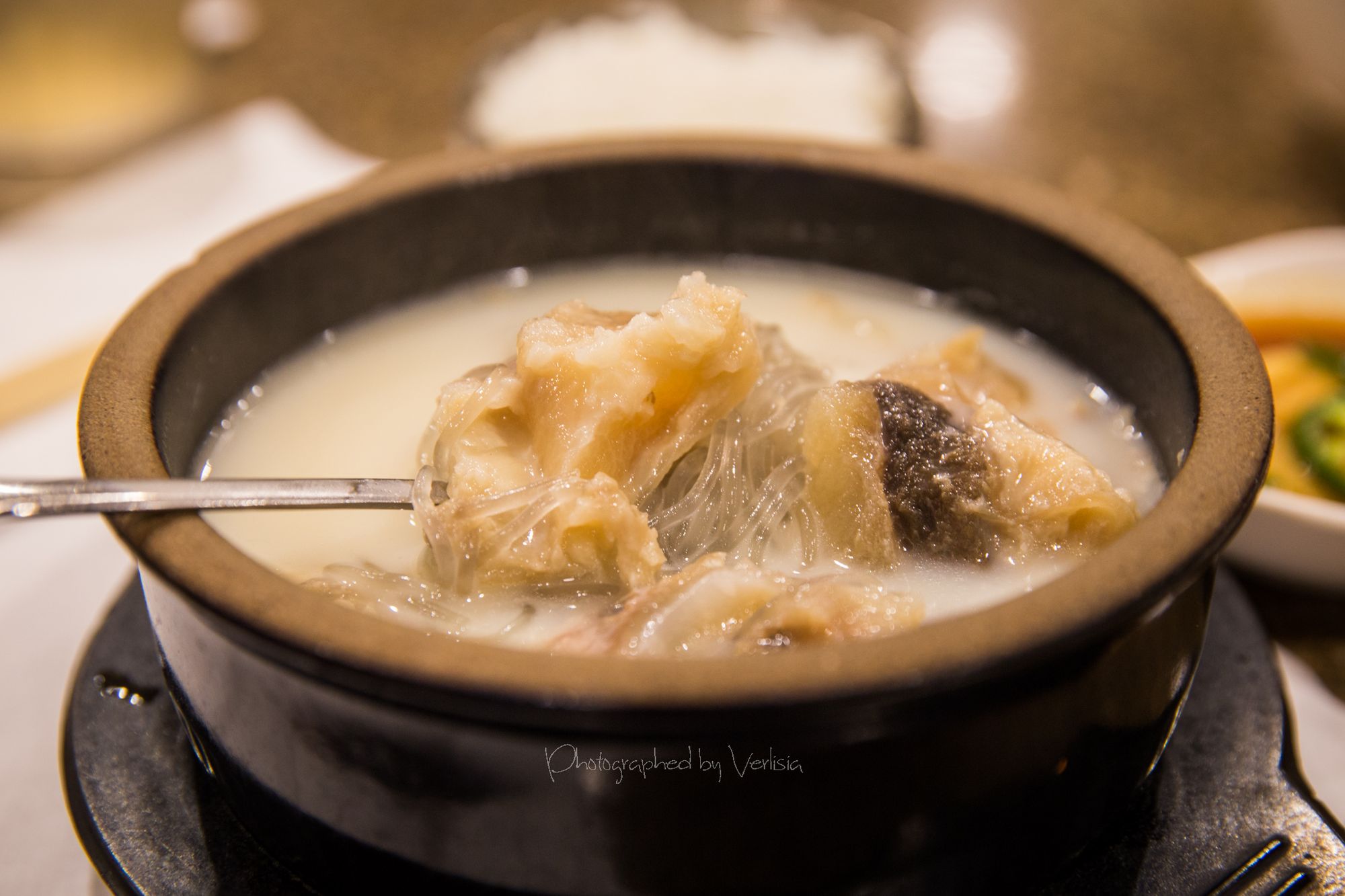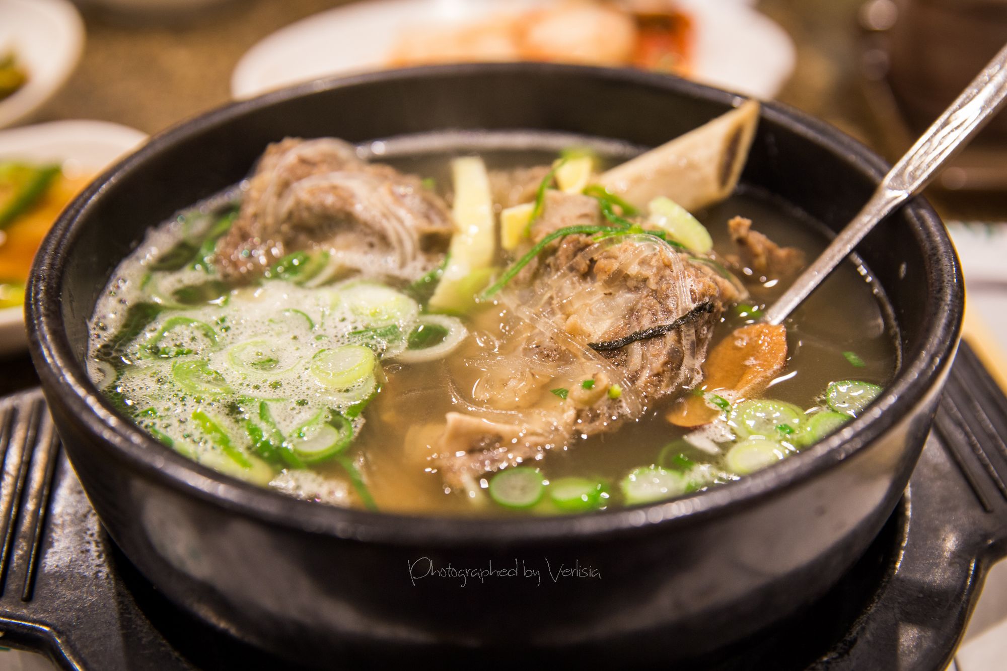 Kimchi, Beef Short Ribs Soup (Juicy tender half cut beef short ribs in hot beef broth with green onions & dry jujube toppings and a bowl of steamed rice)