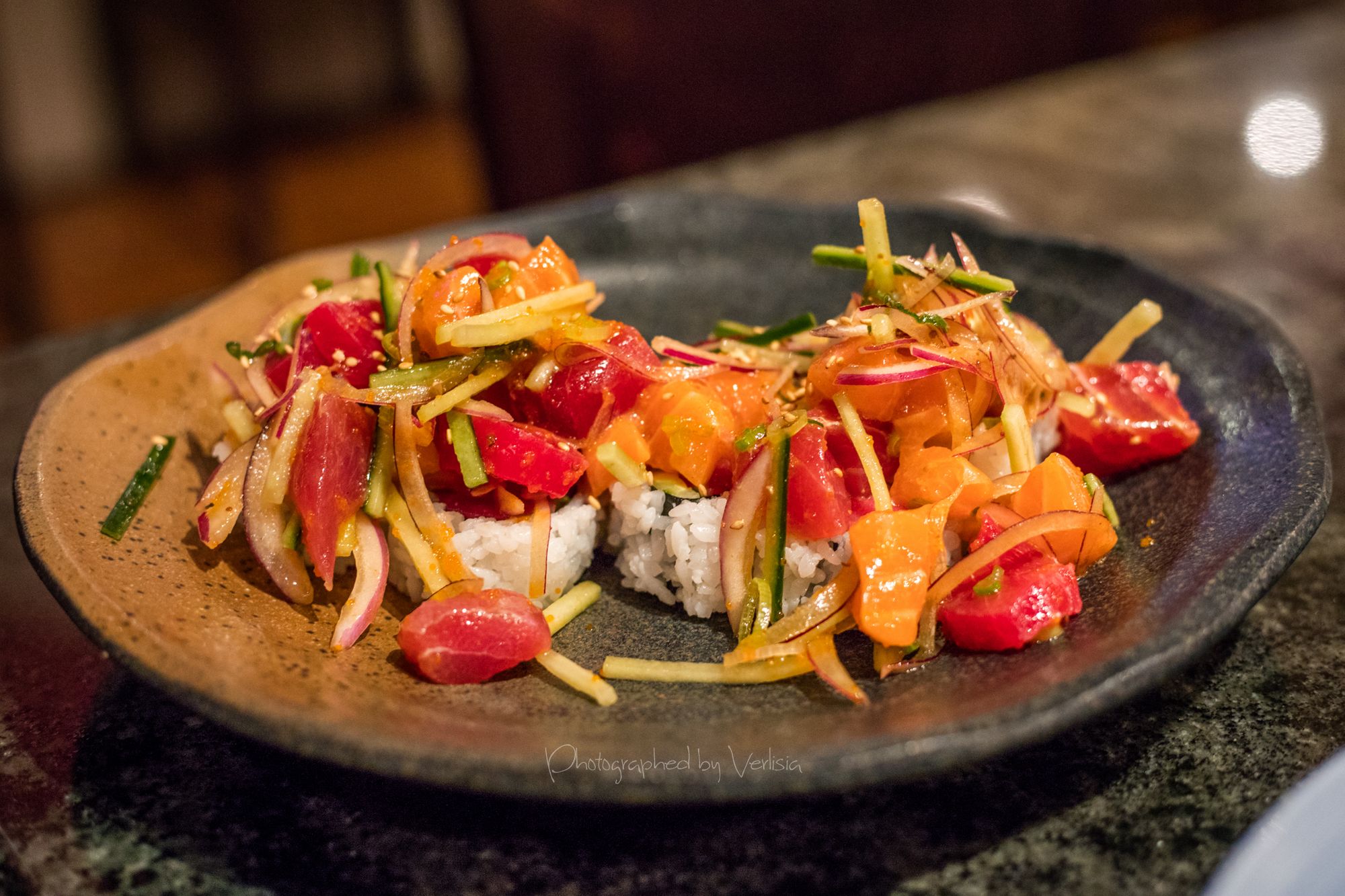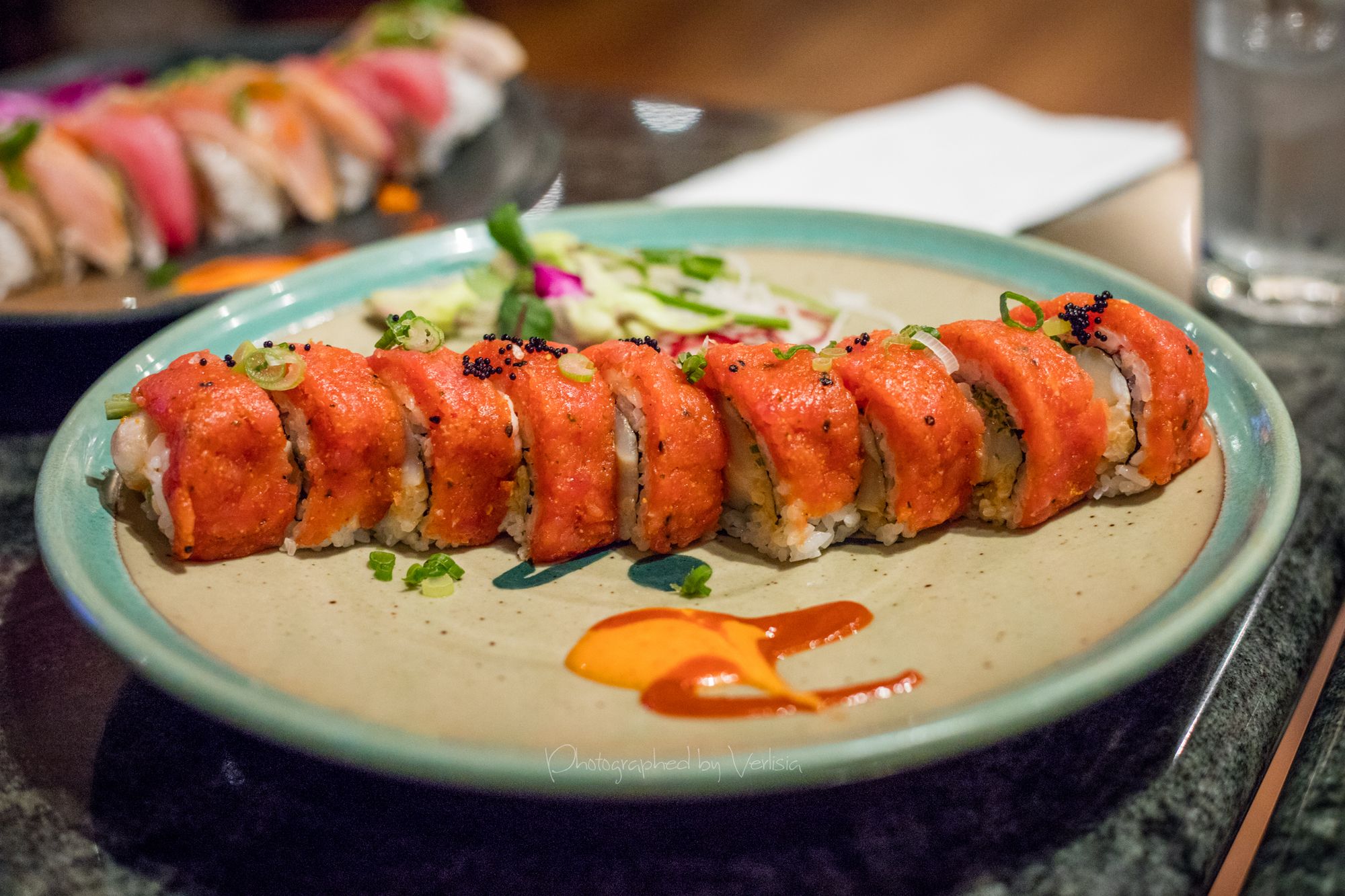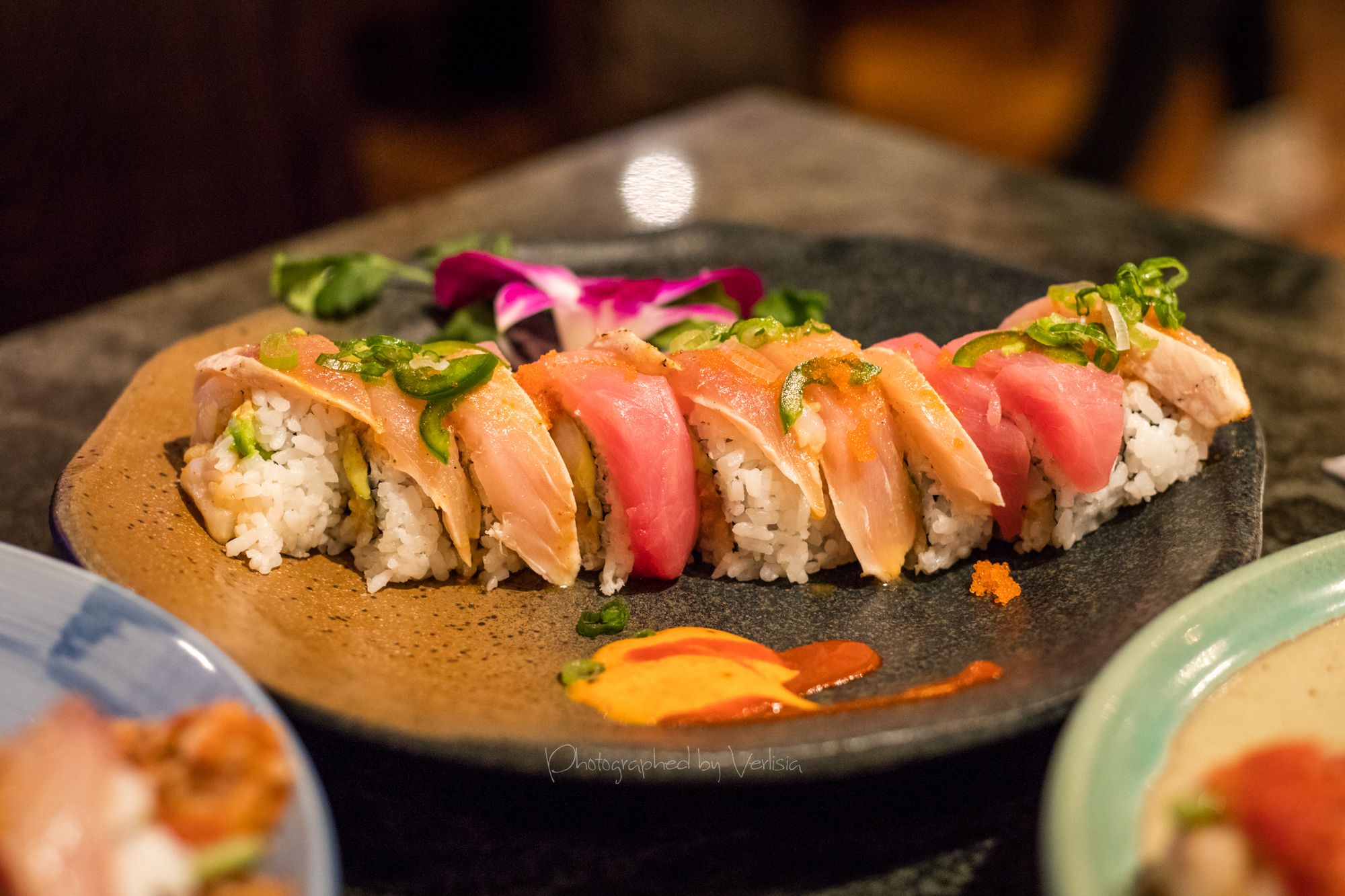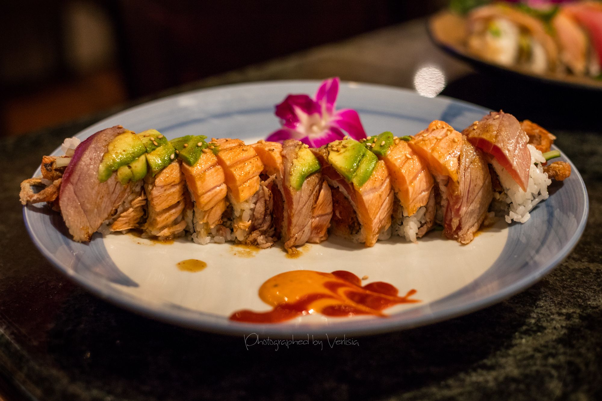Ichiban Roll (Soft Shell Crab, Spicy Tuna, Seared Salmon / Tuna, Avocado, Cucumber, Chef’s Special Sauce), I Love Salmon RollOishi Sashimi Roll (Tuna, Salmon, Avocado, Cucumber, Red Onion, Kaiware, Green Onion, Masago, Chef’s Special Sauce)