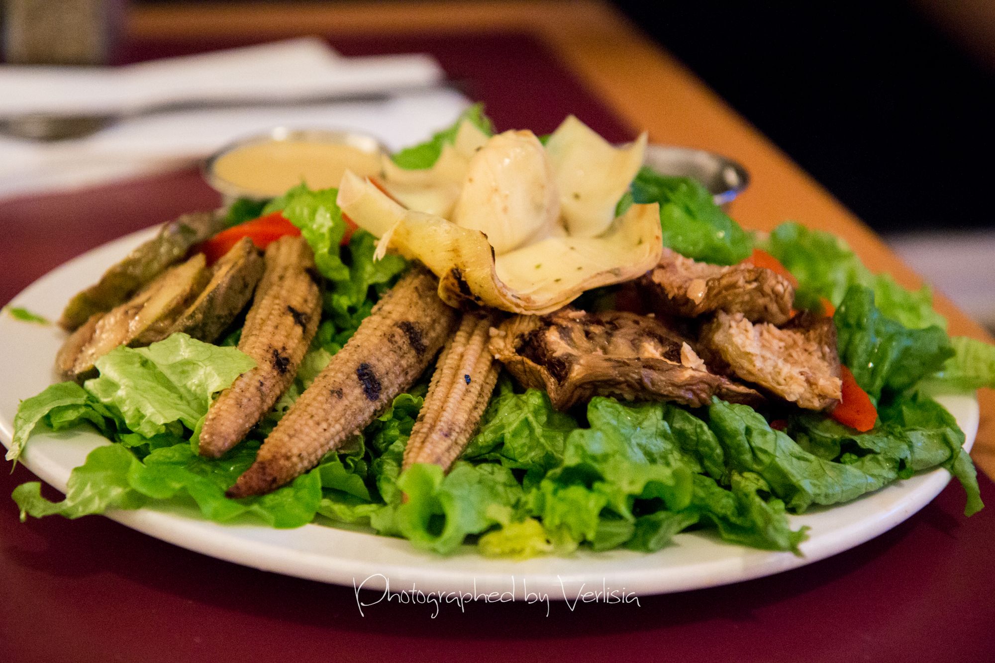 Margarita, Waioli Salad (Chilled, grilled vegetable salad with artichoke hearts, red bell peppers, eggplant, baby corn and zucchini on garden greens with sonoma goat cheese and mango vinaigrette)