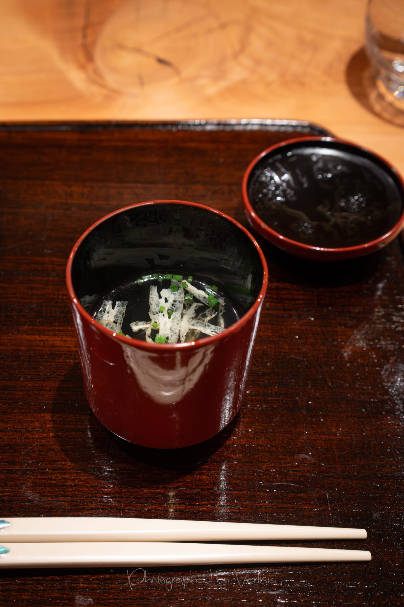 Owan - Hamo Eel, Winter Melon, Okura, Shiitake, Lime; Otsukuri - Chiba Wild KinmeDai, Shizuoka Wasabi, Shoyu