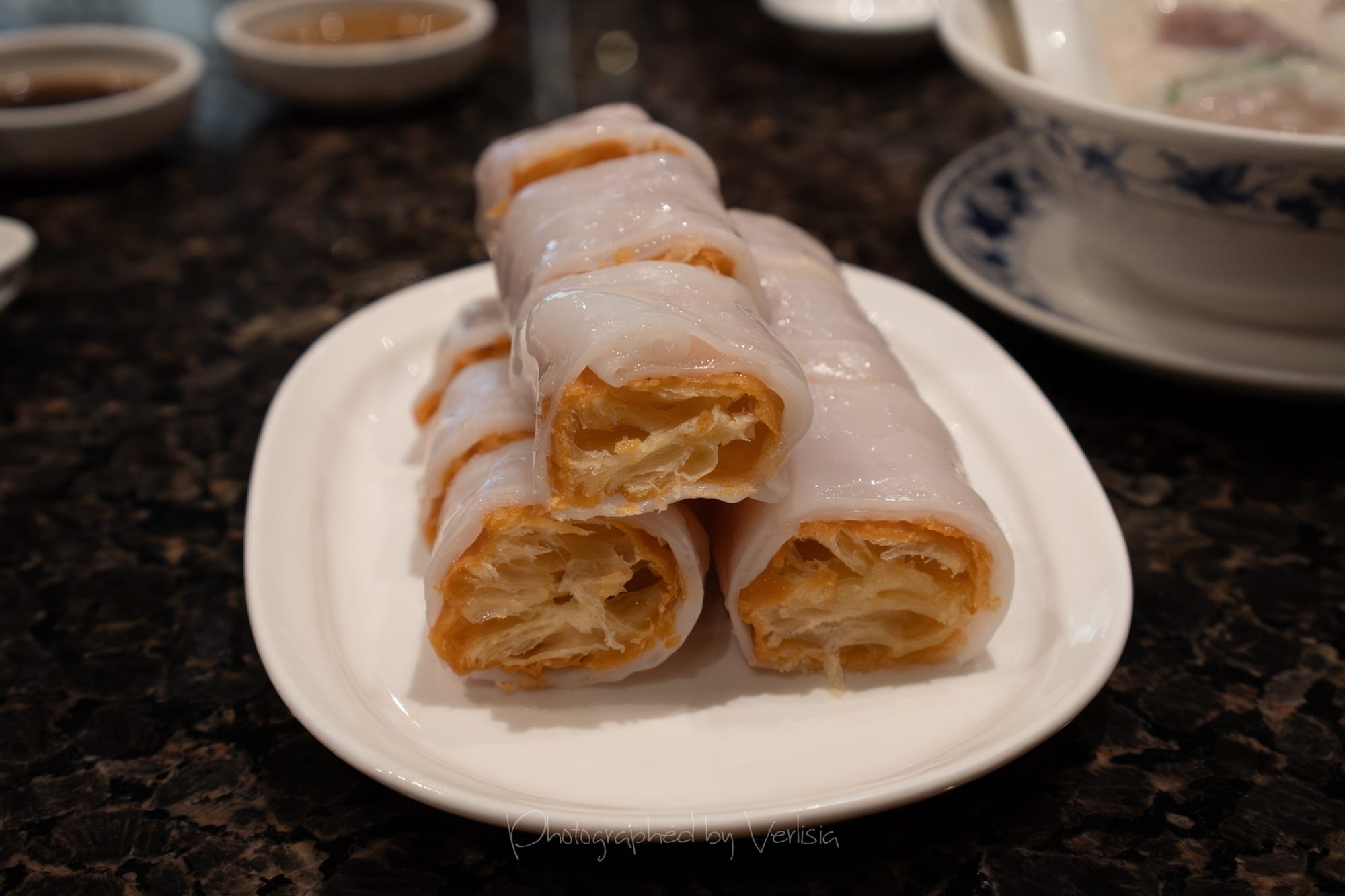 香脆油条肠粉(炸两) (Crispy Fried Dough Sticks Rice Rolls), 蚝皇鲜竹卷 (Oyster King Fresh Bamboo Rolls), 家乡咸水角 (Glutinous Rice Dumplings)